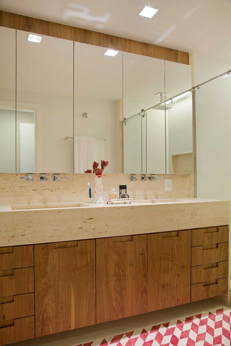 O imóvel de 140 m² assinado pelo escritório Bianca da Hora Arquitetura passou por alterações na planta, como a transformação de um banheiro social grande em dois menores, novos closets e armários.