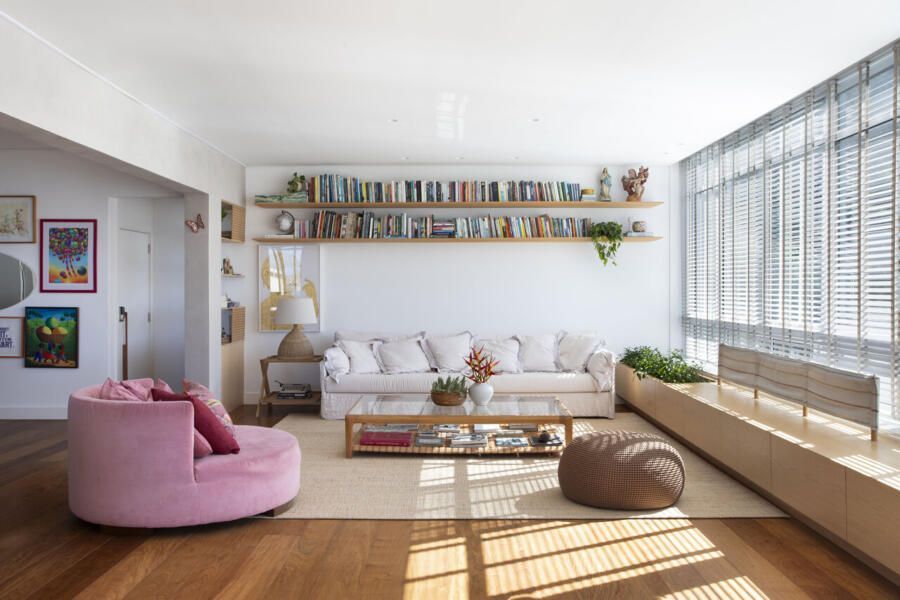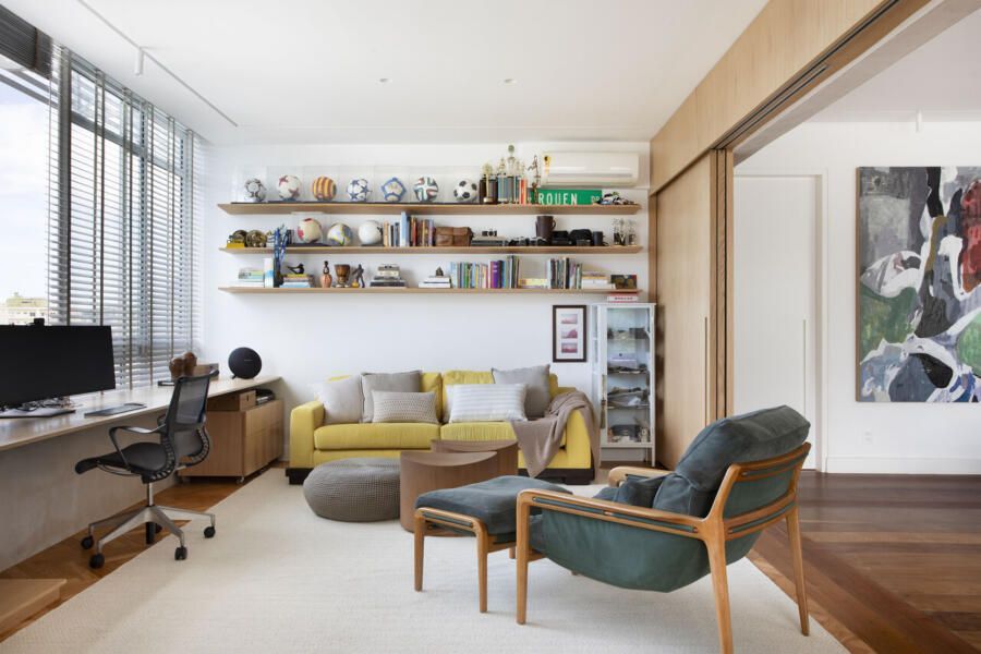 “Os moradores buscavam um apartamento mais alinhado à dinâmica da família, com ambientes amplos, integrados e que favorecessem o convívio no dia a dia. Também pediram soluções flexíveis, como a possibilidade de isolar o escritório quando necessário, além de uma base neutra que valorizasse o acervo afetivo, incluindo obras de arte e peças já existentes. Havia ainda o desejo de criar uma atmosfera acolhedora e contemporânea, com espaços funcionais e duradouros, sem excessos.”
