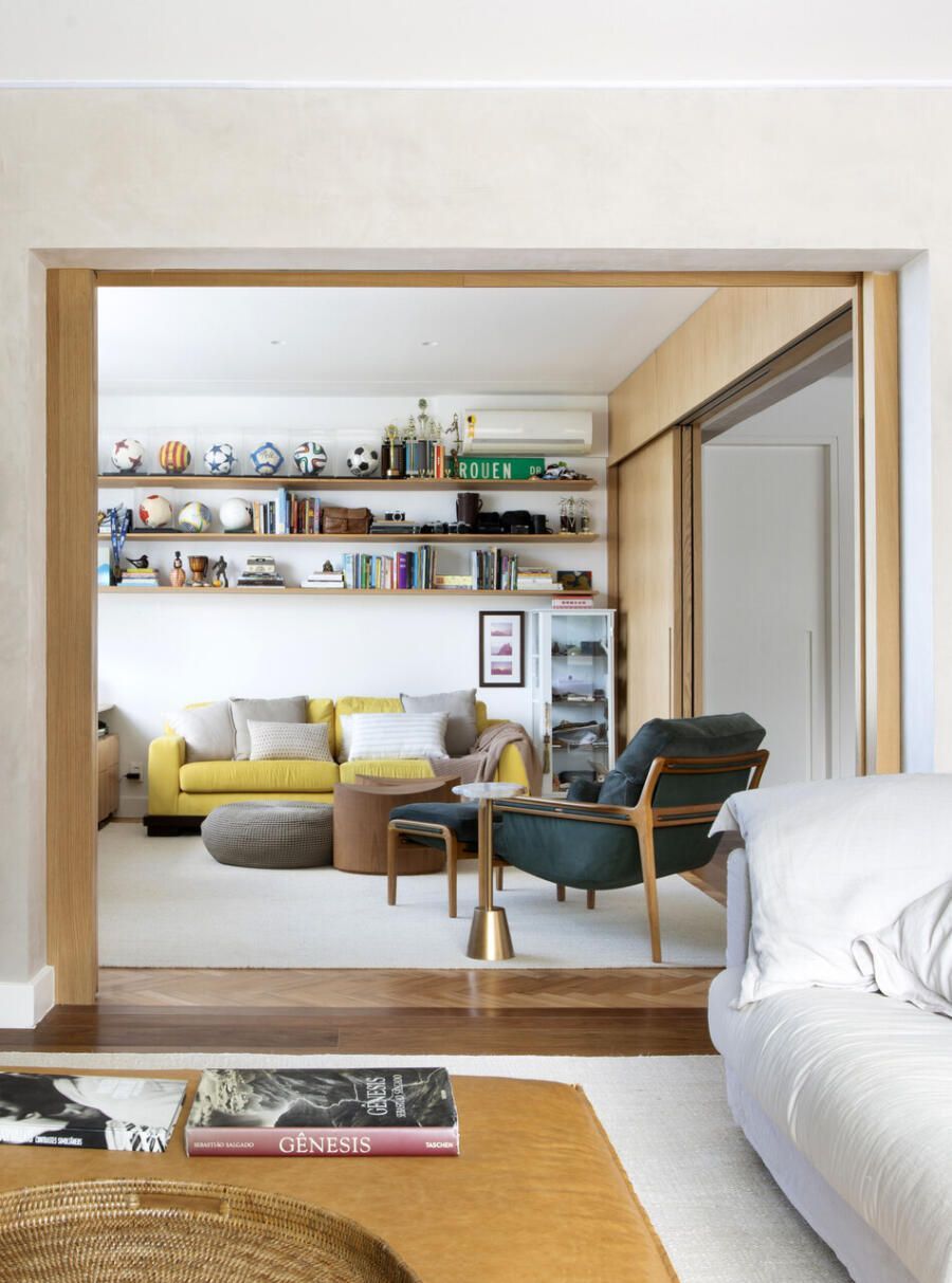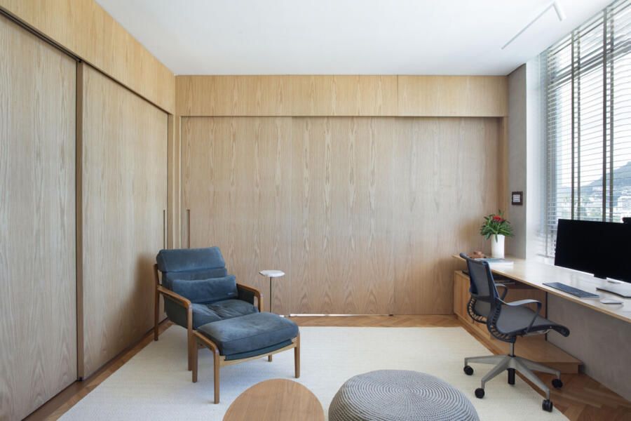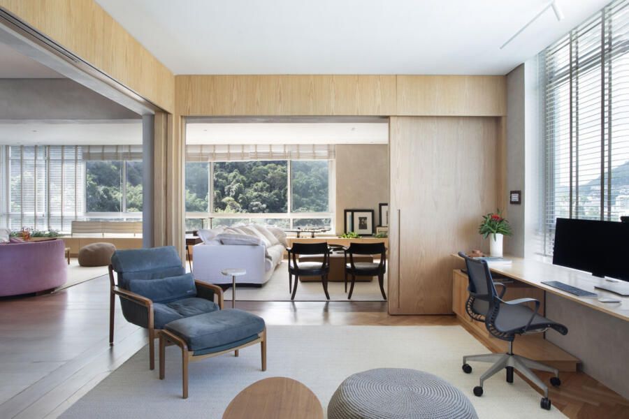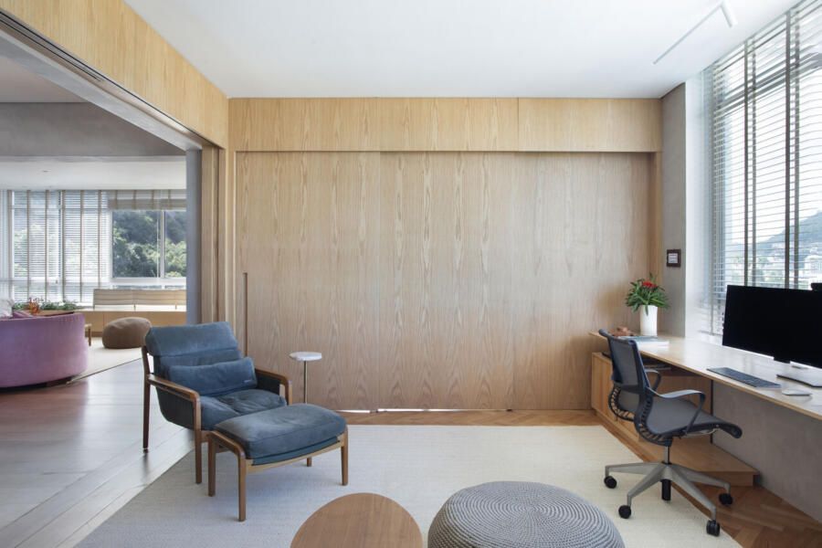 “Os moradores buscavam um apartamento mais alinhado à dinâmica da família, com ambientes amplos, integrados e que favorecessem o convívio no dia a dia. Também pediram soluções flexíveis, como a possibilidade de isolar o escritório quando necessário, além de uma base neutra que valorizasse o acervo afetivo, incluindo obras de arte e peças já existentes. Havia ainda o desejo de criar uma atmosfera acolhedora e contemporânea, com espaços funcionais e duradouros, sem excessos.”