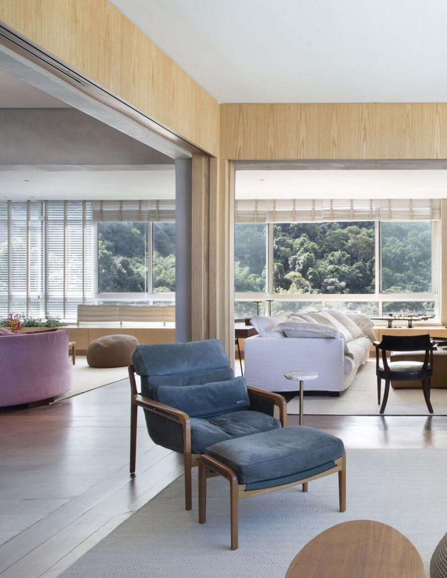 “Um dos pontos mais interessantes do projeto é como a arquitetura foi pensada para funcionar como uma espécie de “plano de fundo” para o acervo dos moradores, valorizando obras de arte e peças afetivas sem competir com elas.”