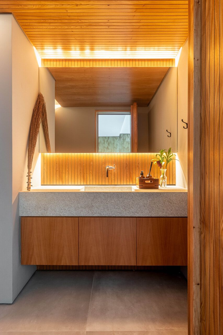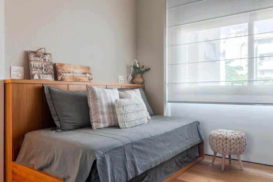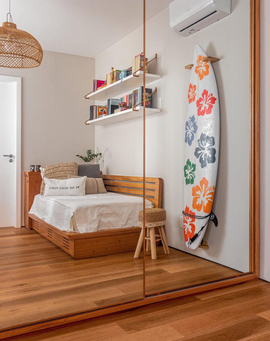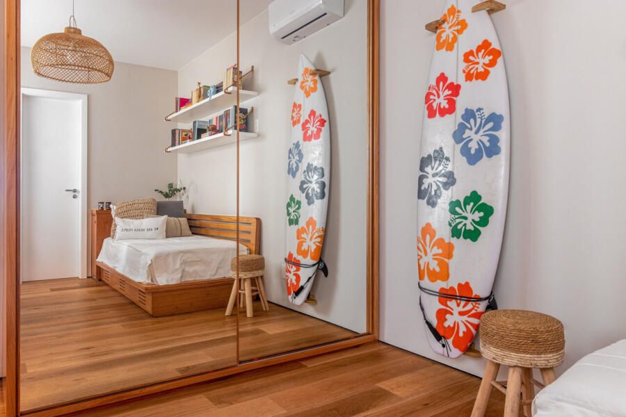 “O maior desafio do projeto foi conseguir adaptar a planta baixa, criando a terceira suíte e a circulação íntima que conecta os quartos à cozinha.”