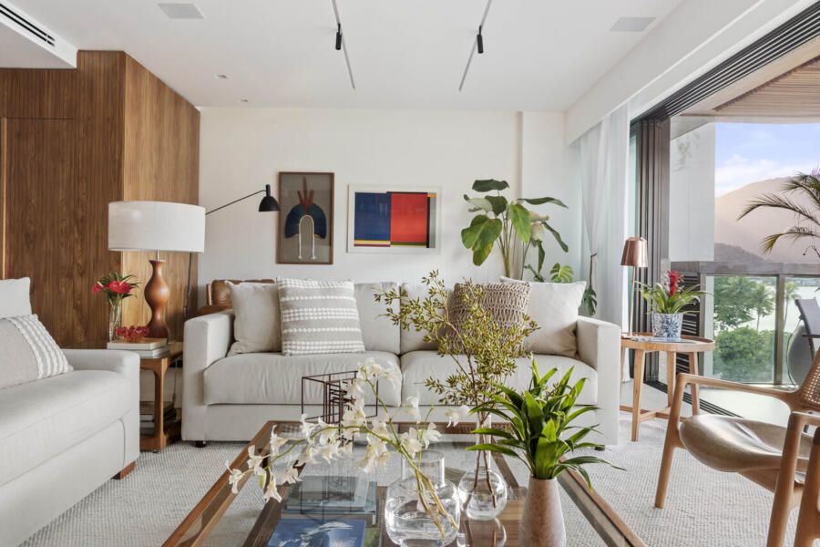 Assinado pelas arquitetas Adriana Sadala e Maria Eduarda Gomide, do escritório Sadala & Gomide Arquitetura, este apartamento linear de 230m² ocupa um endereço privilegiado na Lagoa, na Zona Sul do Rio de Janeiro. Pensado para um casal de advogados e suas duas filhas adolescentes, o projeto nasceu do desejo de transformar completamente o imóvel recém-adquirido, explorando ao máximo a vista invejável do Rio e adaptando a planta às novas dinâmicas da família.