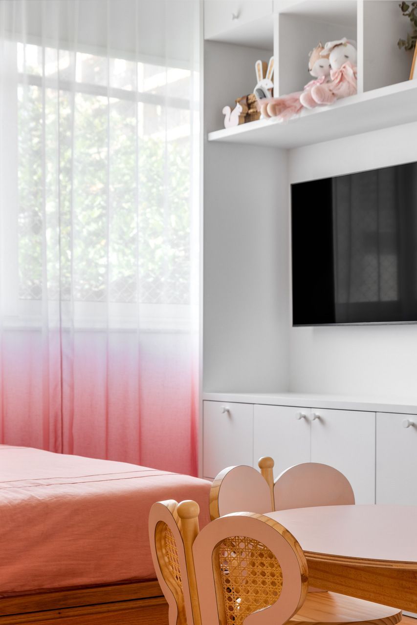 Concluído em dez meses, entre desenvolvimento, aprovação e execução, o projeto teve o tempo como principal desafio. Mas o resultado, no fim, venceu qualquer contratempo, e tornou o apartamento em um lar que acolhe o presente e já se prepara, com elegância e sensibilidade, para o futuro.