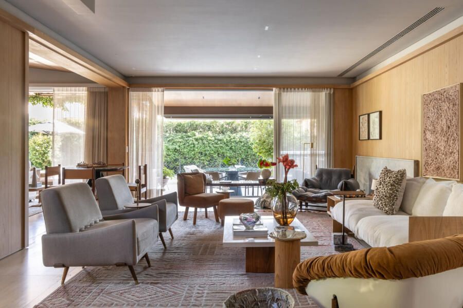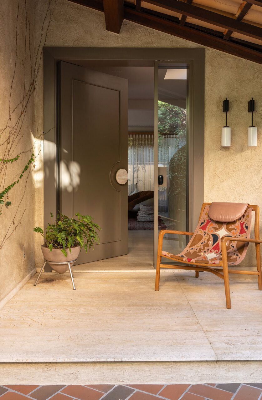 Nos interiores, o projeto abraça o afeto e a memória. Grande parte do mobiliário veio do antigo apartamento da família, apenas com tapetes trocados de lugar, tecidos renovados e novas peças pontuais completando o conjunto. A mistura de histórias e texturas trouxe autenticidade à casa sem abrir mão do conforto. O entrosamento entre arquiteto e clientes foi essencial para o resultado, com decisões certeiras e um olhar maduro sobre o que realmente importa.