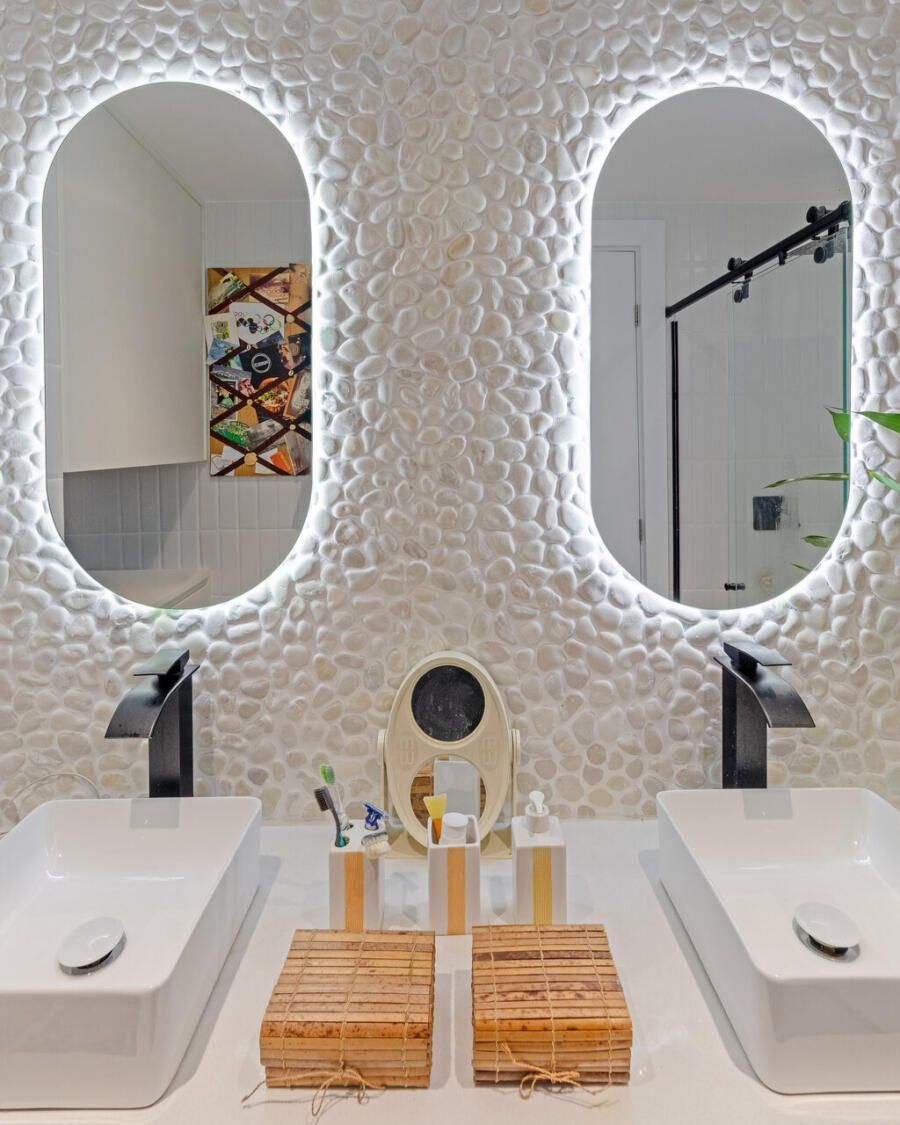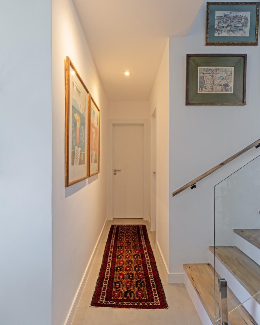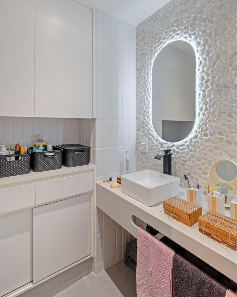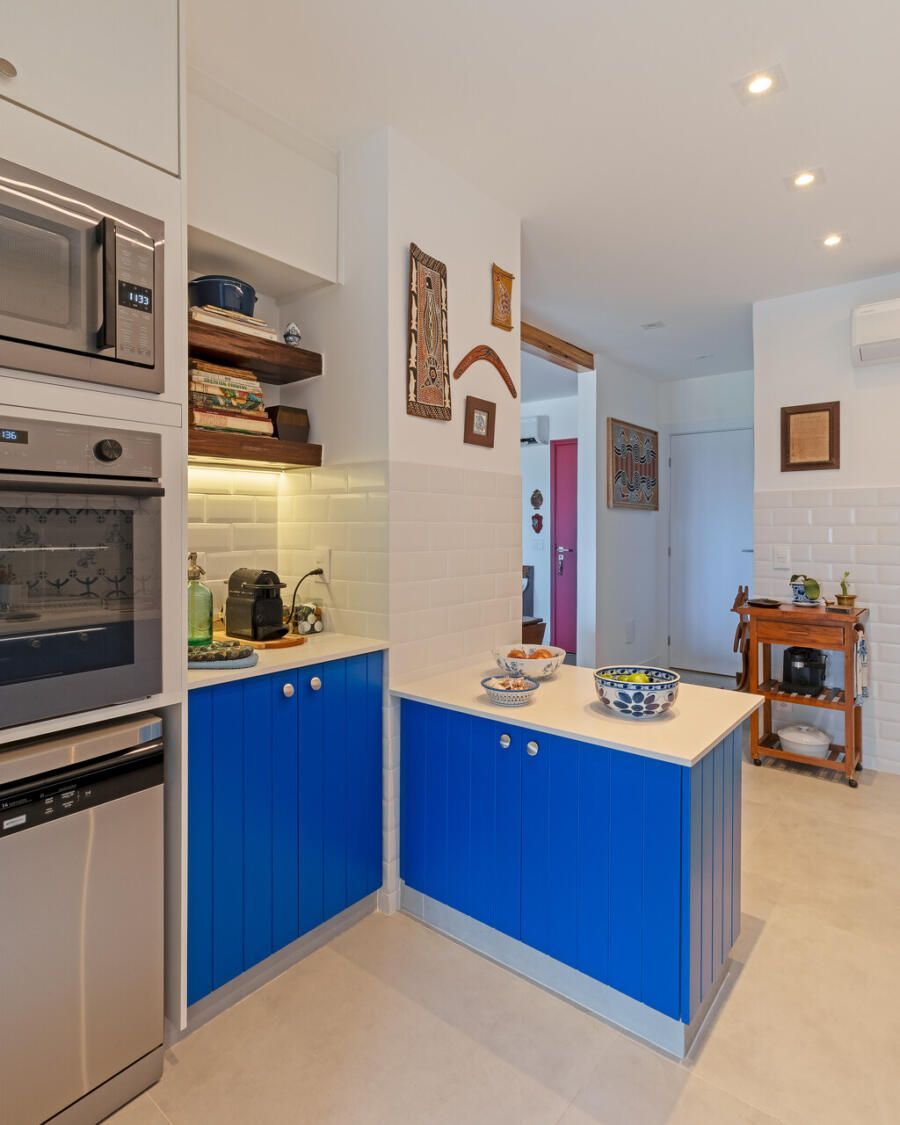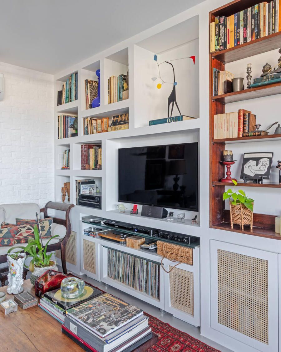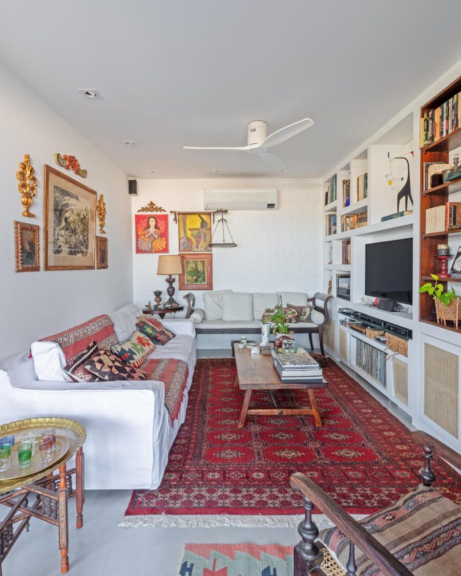 A arquiteta desenhou pessoalmente cada centímetro da nova cobertura duplex, carinhosamente apelidada de “coberturinha”. A intenção era ambiciosa: integrar na metragem enxuta de 155 m² tudo o que fazia parte de sua vida anterior — móveis, quadros, estantes, tapetes e peças de história — e ainda incorporar desejos antigos, como a sauna, a área gourmet e os ambientes criados sob medida para receber amigos e familiares. Entre as lembranças afetivas, objetos garimpados em viagens e relíquias de família garantem uma identidade singular ao projeto.