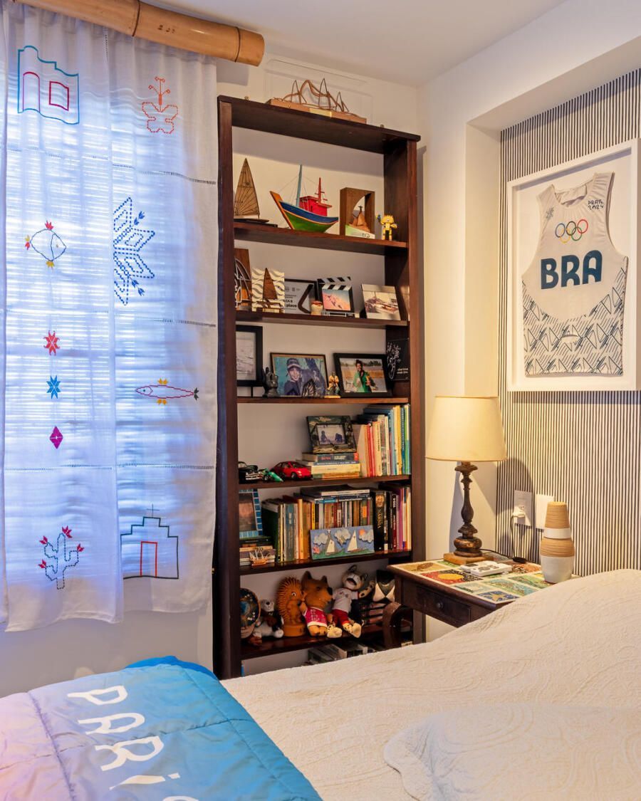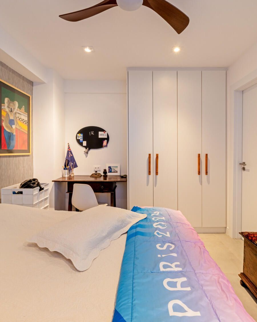 Dessa forma, a “coberturinha” renasceu como um lar contemporâneo e vibrante, que traduz a sensibilidade da arquiteta e a história de sua família. Sobre o paisagismo, Rosa Kidd optou pelo minimalismo que privilegia o uso — uma hortinha na sacada inferior, poucas plantas internas e cactos no terraço. A orientação veio do primo da arquiteta, o paisagista Guro Marques, que ajudou a compor o verde discreto que dialoga com a arquitetura. Hoje, a cobertura duplex que antes parecia impossível de se viver é o cenário onde convivem vistas exuberantes, memórias, afeto e o olhar preciso de quem soube reconhecer beleza onde ninguém via.