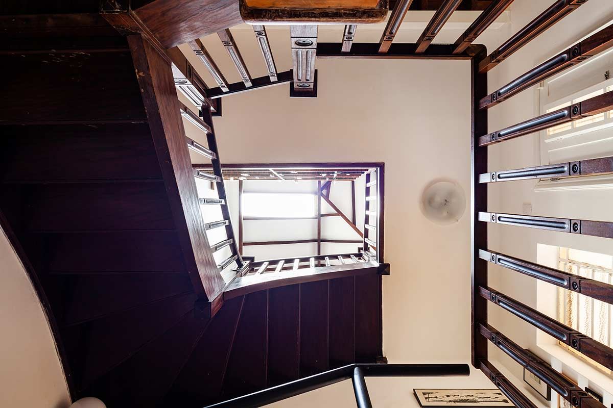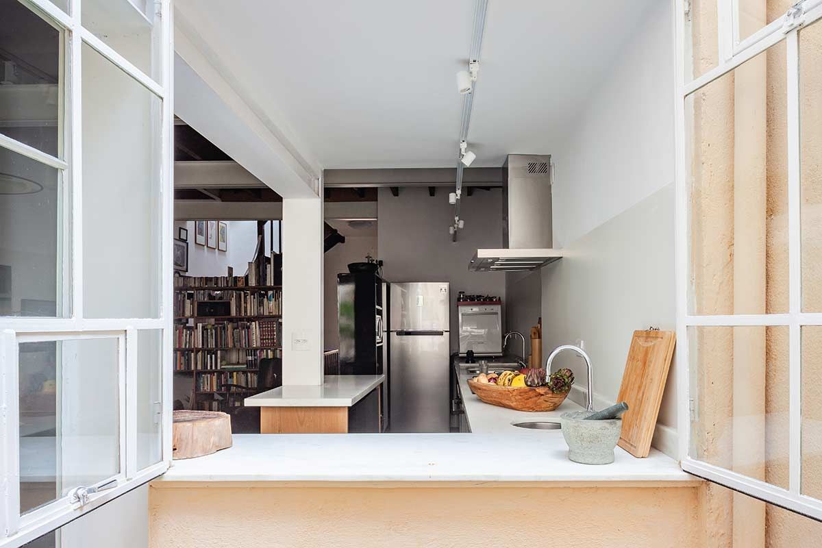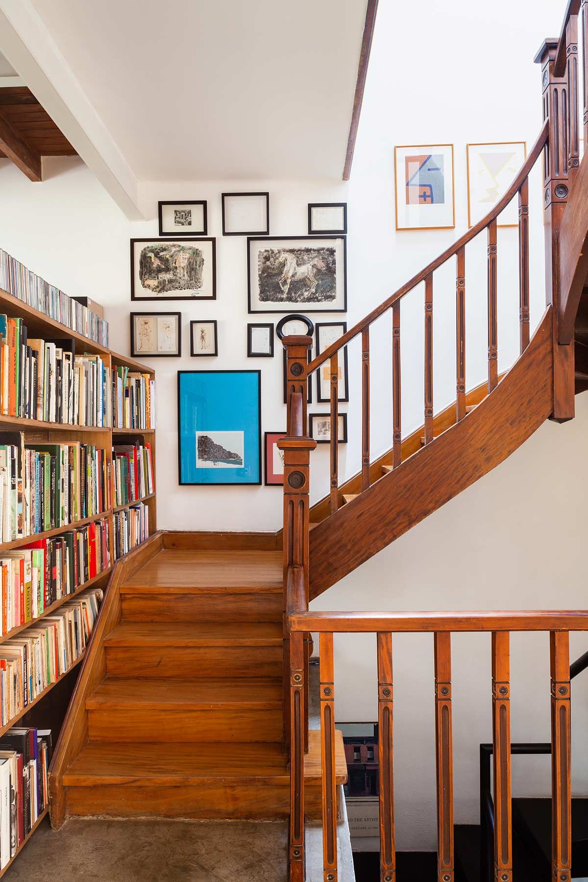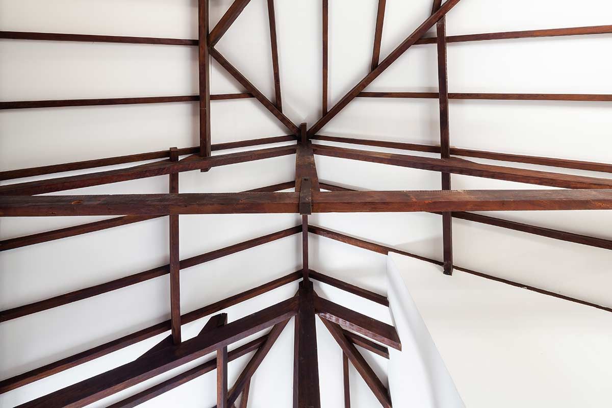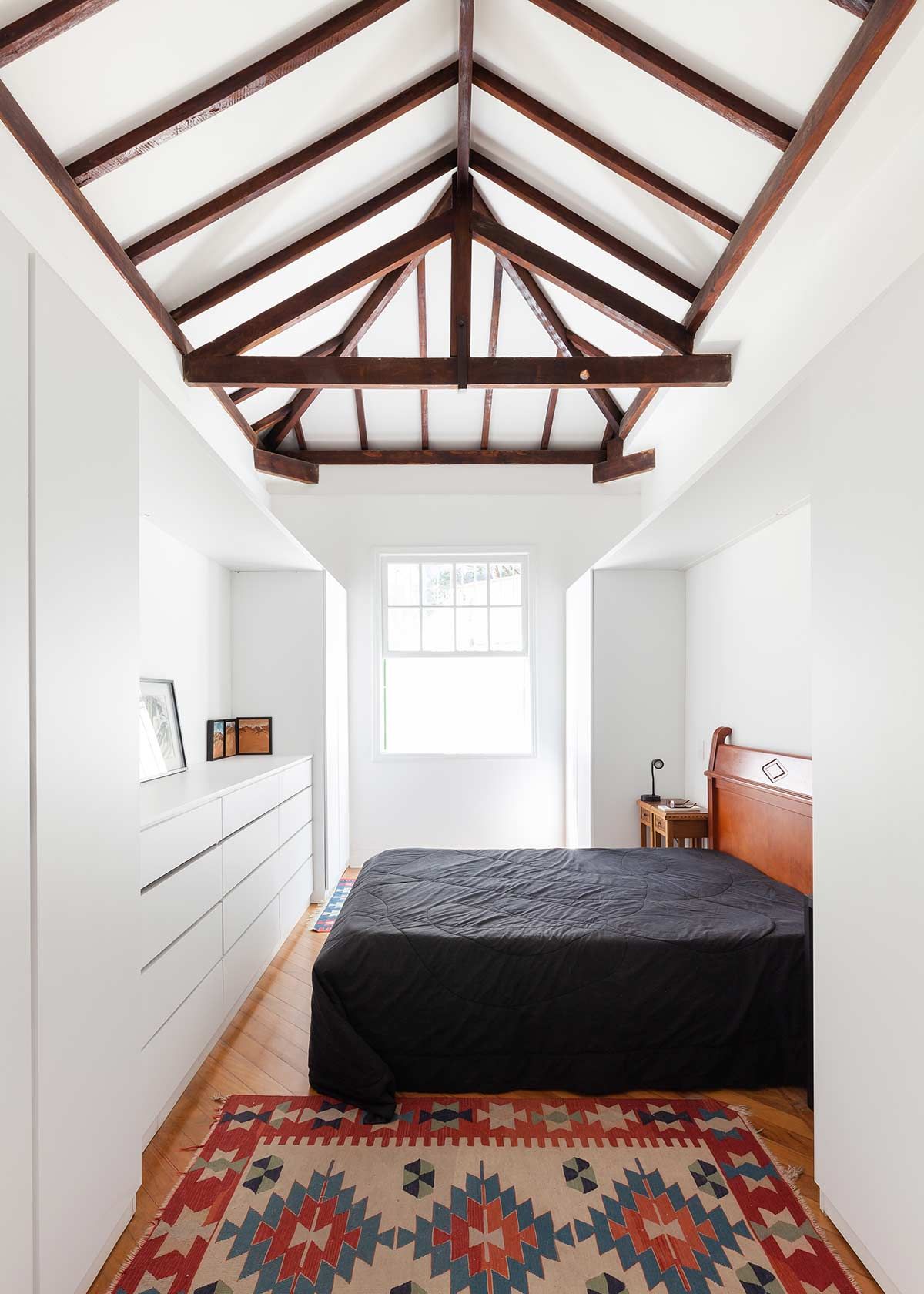 Mesmo tombada, as restrições desta condição foram libertadoras e o norte do projeto foi eliminar tudo o que não era essencial. No nível superior, por exemplo, havia um forro de estuque e outro de drywall e, ao retirá-los, uma linda estrutura centenária de madeira se revelou.