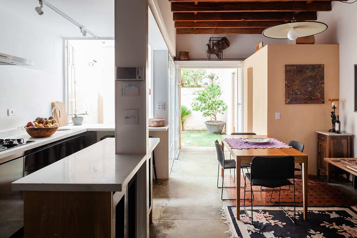 Esta casa geminada no Bixiga foi sede de uma associação que descaracterizou completamente o prédio e, para atender os novos usuários, uma reforma completa se fez necessária. Quem assina essa transformação é o arquiteto Marcus Lima, que atualizou o layout do edifício, dividindo-o em escritório no nível inferior, outro no nível superior e todo o restante, residência.