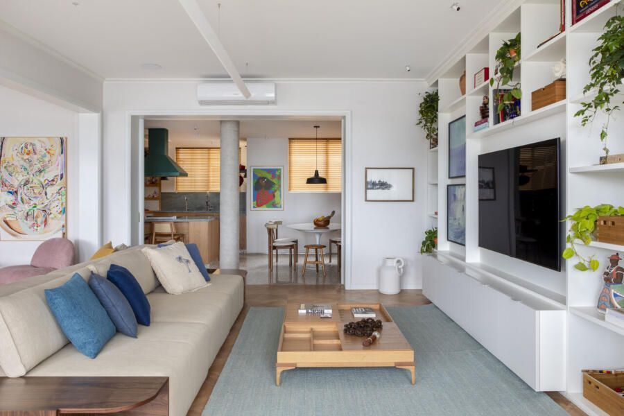 Os atores Taís Araújo e Lázaro Ramos, juntos há 20 anos, sempre optaram por mudanças pontuais em suas moradias no Rio de Janeiro, evitando longas reformas. No entanto, essa escolha resultava em espaços que não refletiam plenamente sua personalidade. Em 2020, buscando mais praticidade no dia a dia, o casal decidiu trocar sua casa de uma década por um apartamento dos anos 1950 na Zona Sul carioca. Inicialmente alugado para um período de teste, o imóvel conquistou a família, que optou pela compra e, em 2023, deu início a uma transformação completa com o escritório Escala Arquitetura, das arquitetas Carolina Escada e Patricia Landau.