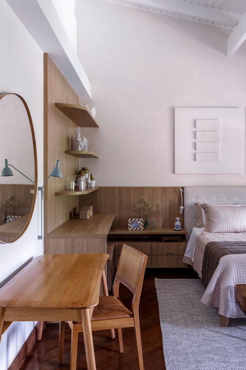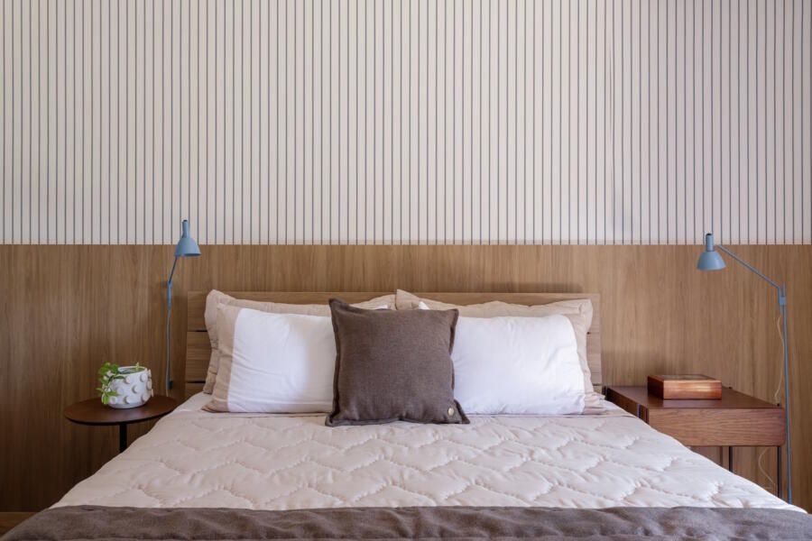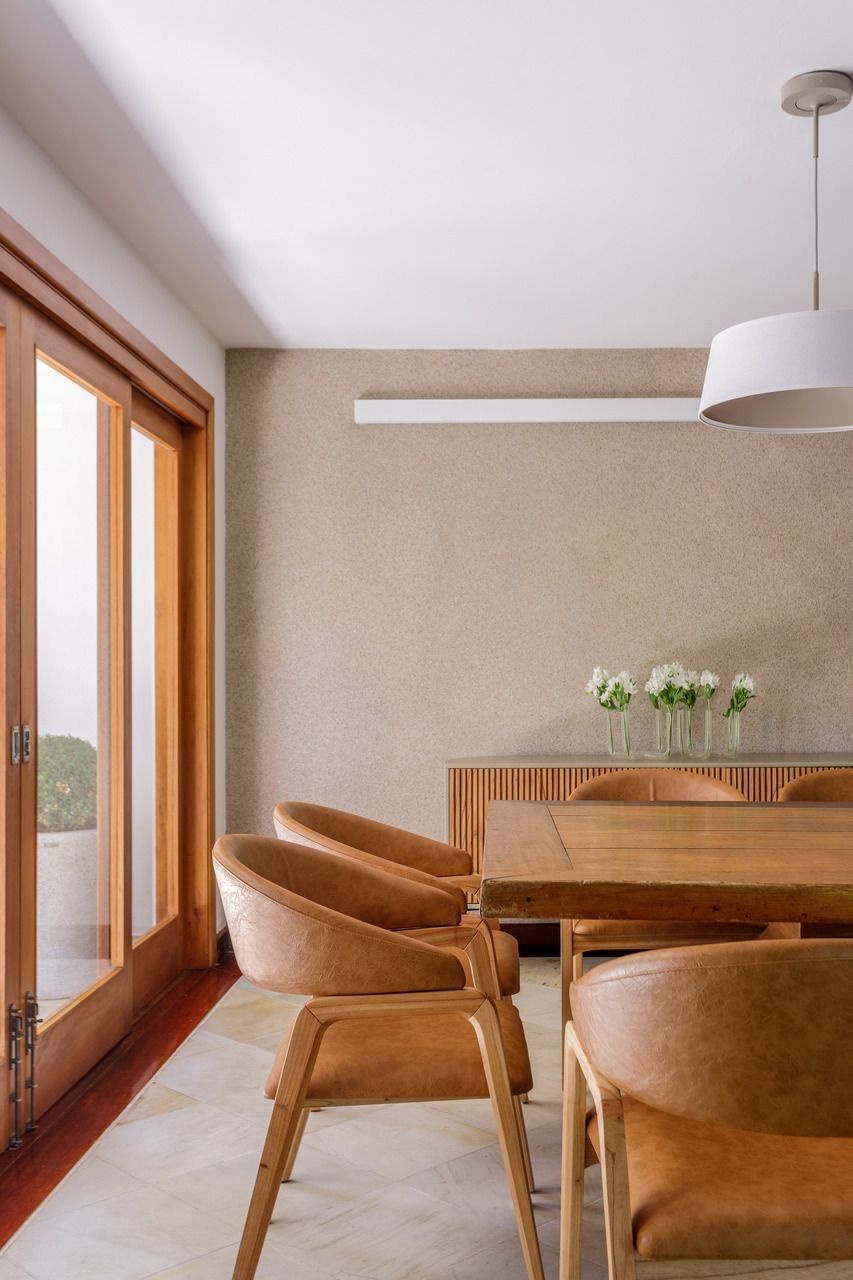 “Apesar de linda, a casa tinha pouca iluminação e uma decoração sem identidade que incomodava os proprietários. Com mudanças pontuais e a inclusão de texturas, cores e papel de parede, conseguimos a personalidade e o conforto visual que faltava.”