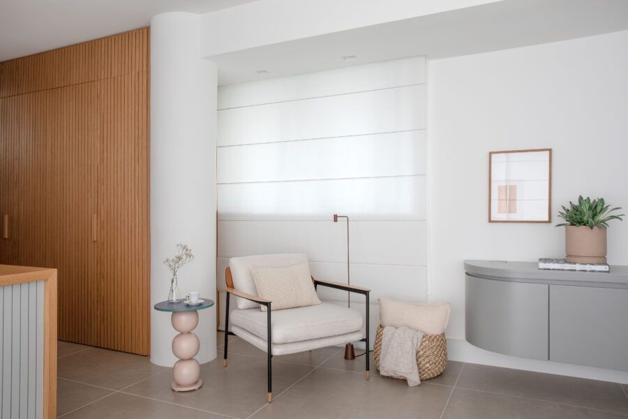 “Com uma abordagem contemporânea e ao mesmo tempo acolhedora, trabalhamos uma estética confortável e atemporal, combinando materiais quentes com linhas limpas, paletas suaves e detalhes finos.”