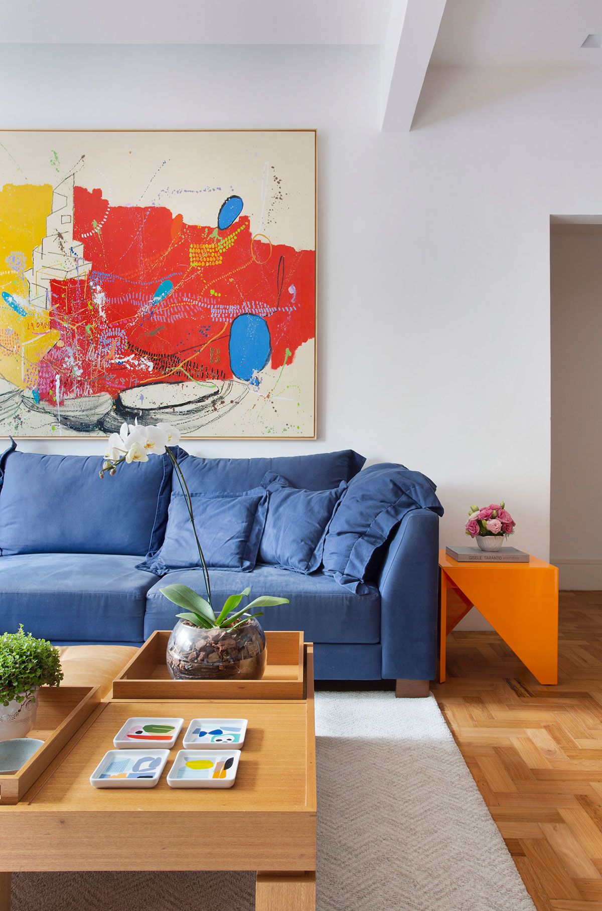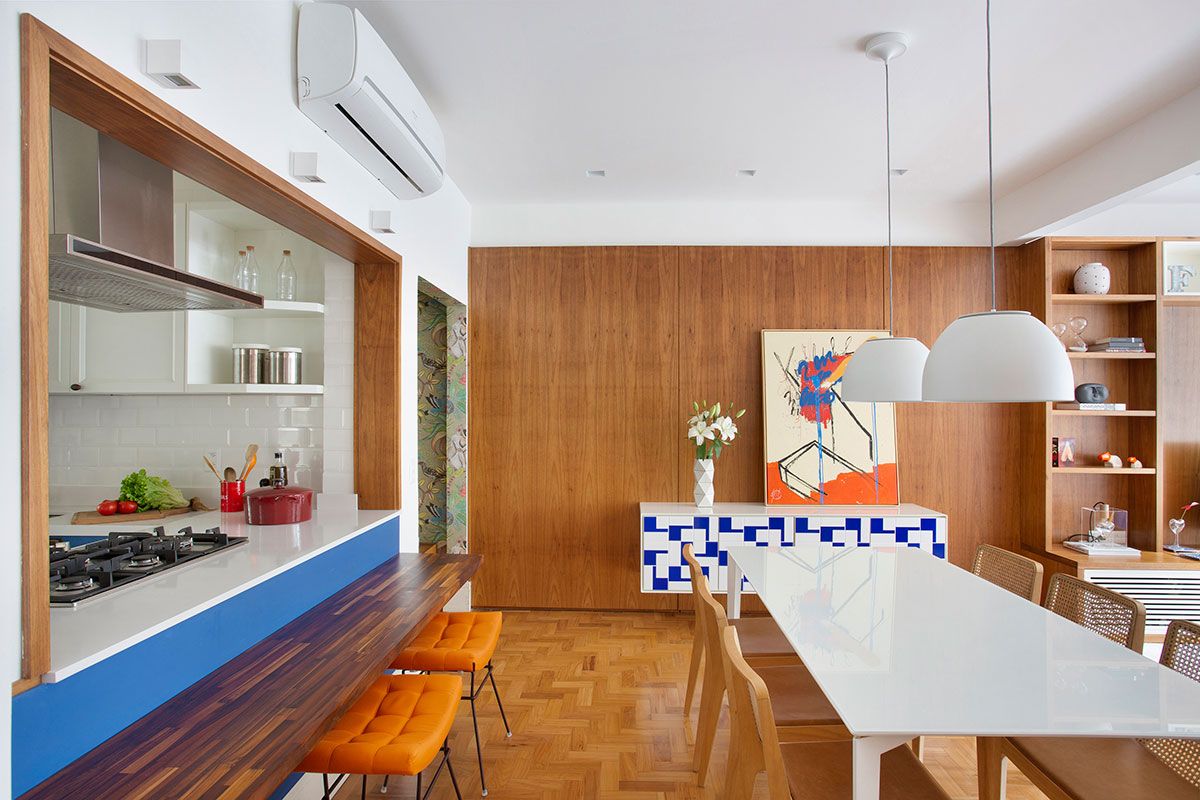 Localizado no Leblon, este apartamento é a morada de um casal na faixa dos 35 anos (ele, australiano que trabalha com sites; ela médica mato-grossense), ambos apaixonados pelo Rio de Janeiro, com uma filha de 4 anos e um filho de 2 anos. A família já morava neste bairro e passou alguns anos procurando o imóvel ideal para se mudar e iniciar a obra dos sonhos. Coube as designers de interiores Juliana Neves de Castro e Mabel Graham Bell, do escritório A3 Interiores, a missão de desenvolver um projeto altamente personalizado, que levou 12 meses para ser concluído, entre obra e decoração.