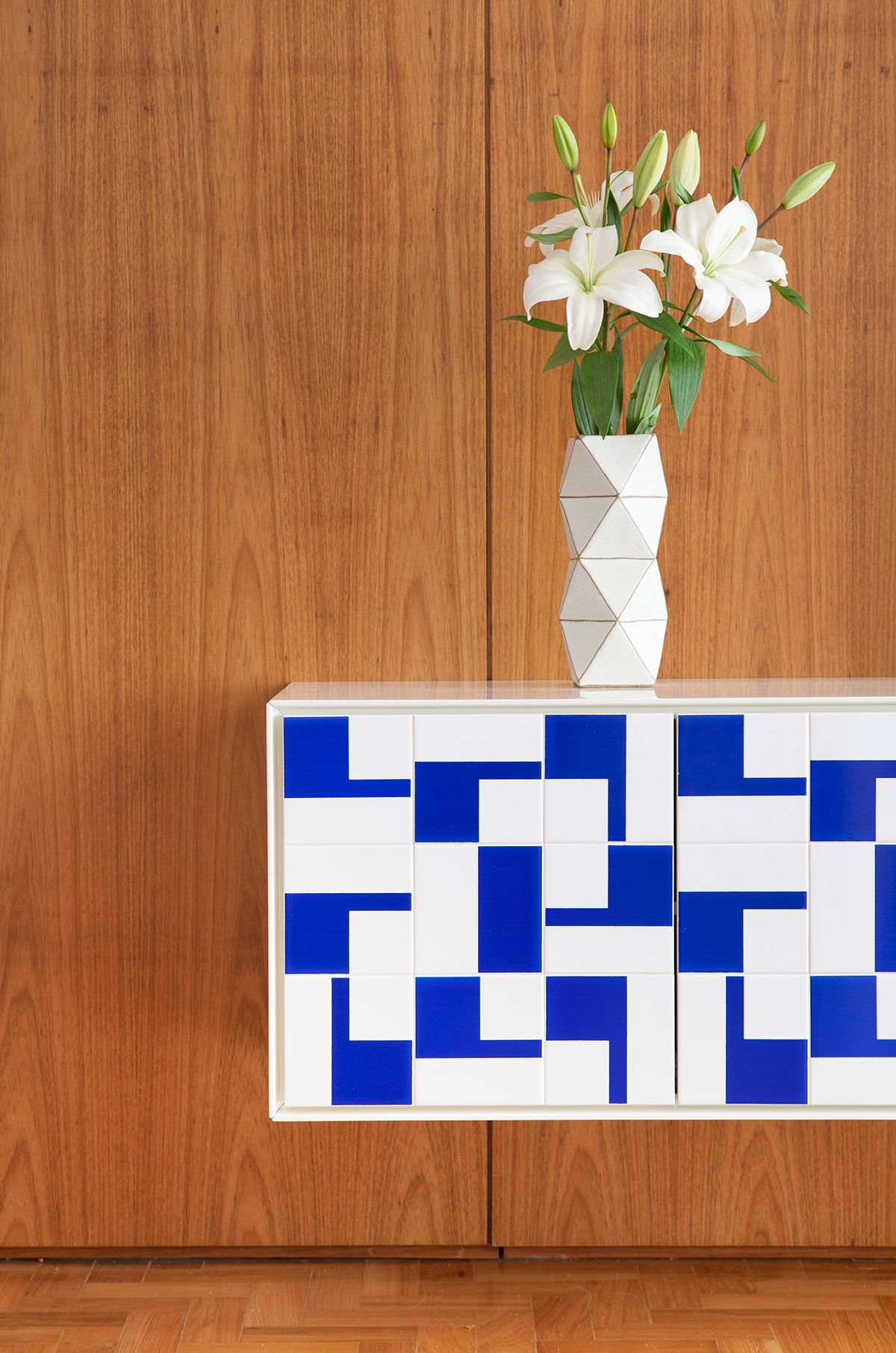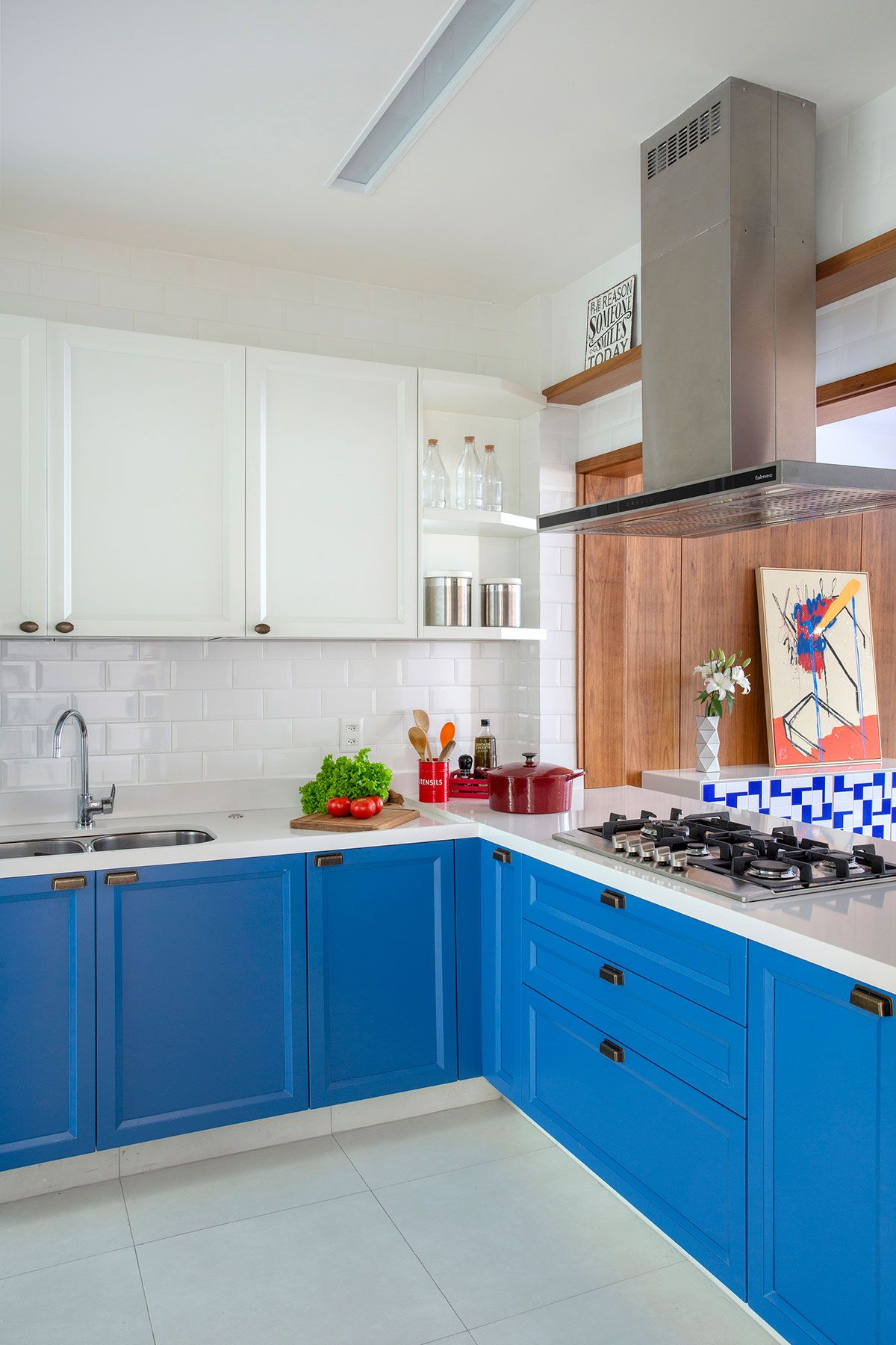 Outros pedidos nortearam o desenvolvimento do trabalho, por exemplo, o australiano solicitou um cooktop embutido na bancada da cozinha voltada para a sala, além de armários inferiores azuis e superiores brancos, com portas e puxadores em estilo mais clássico que lembrassem a casa de seus pais, na Austrália. Também a pedido dele, o hall de entrada foi revestido com um papel de parede cuja estampa reproduz, de forma estilizada, uma floresta repleta de pássaros e macacos.