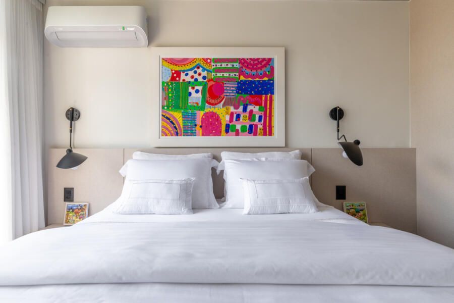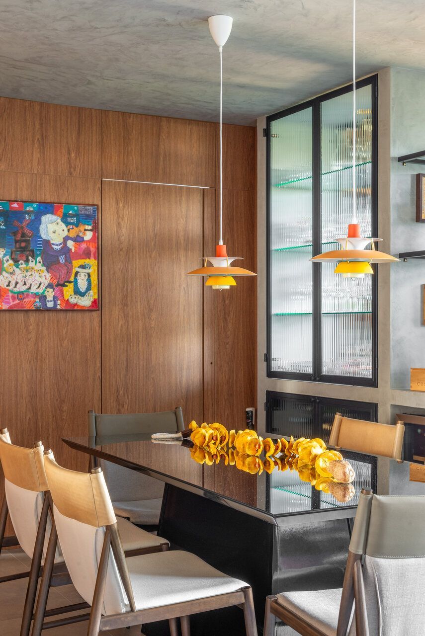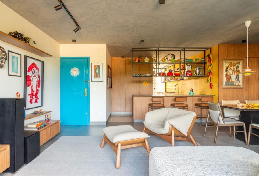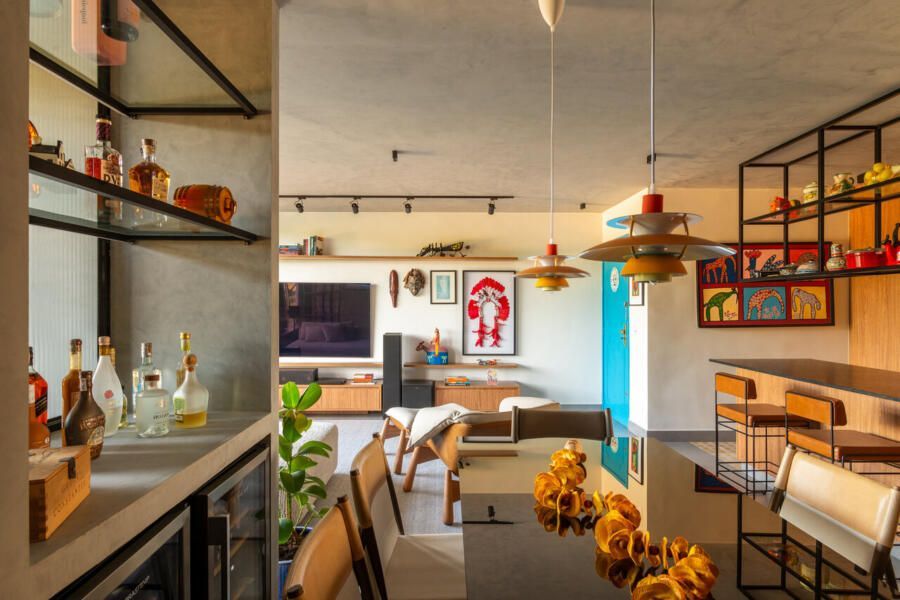 O imóvel precisava se adaptar ao estilo dos novos moradores: um casal de mágicos apaixonados por arte brasileira. A missão era clara: criar um espaço acolhedor, sem excesso de informação, mas que contasse a história de vida dos dois. A solução do escritório foi usar cores fortes, materiais simples e muitos elementos ligados à arte, sempre respeitando a arquitetura moderna típica de Brasília.