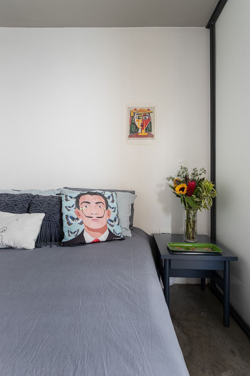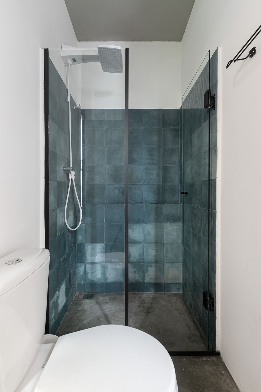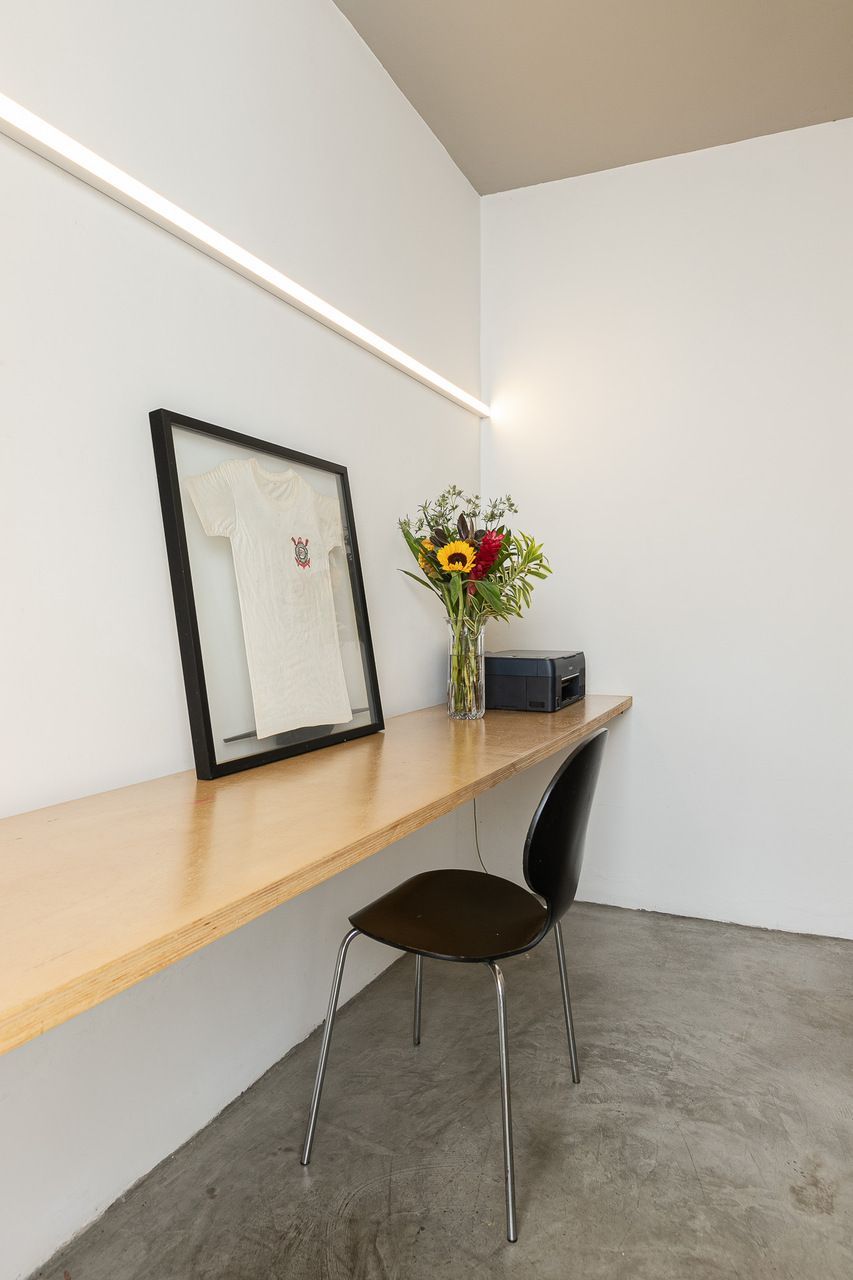 A reforma começou pela edícula, que antes funcionava como lavanderia. O espaço foi transformado em um quarto e um escritório, ambos projetados para aproveitar melhor a luz natural. O escritório recebeu uma grande folha de vidro interno e um brise externo, que ajudam a controlar a iluminação e garantir mais privacidade. Além disso, foi criado um banheiro canadense, compartilhado entre o dormitório e o home office.