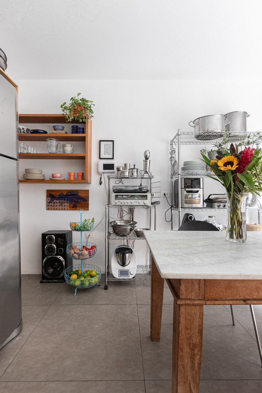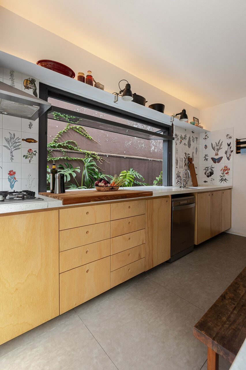 Com a ampliação da reforma, a cozinha ganhou mais destaque. Um dos moradores é chef de cozinha e precisava de um espaço bem planejado para trabalhar e cozinhar com praticidade.