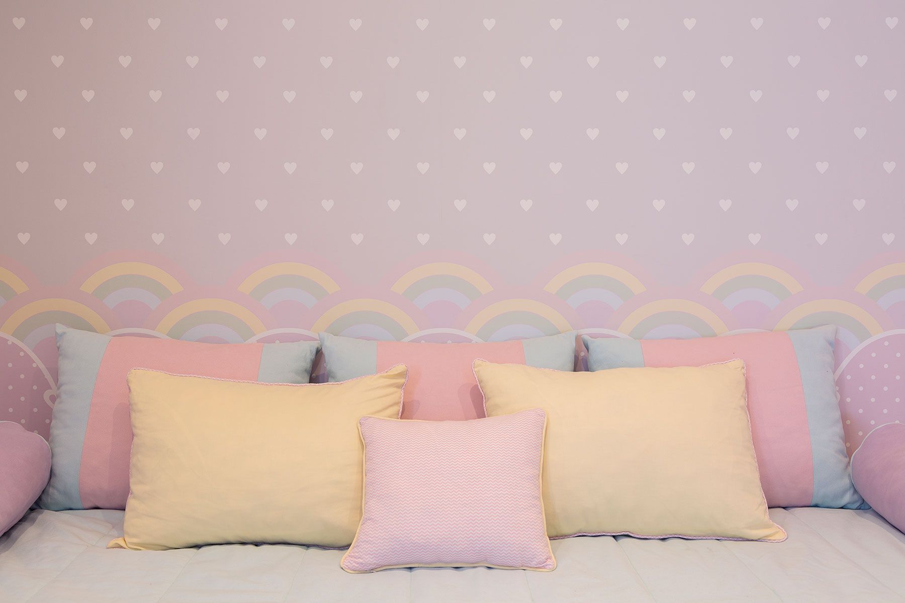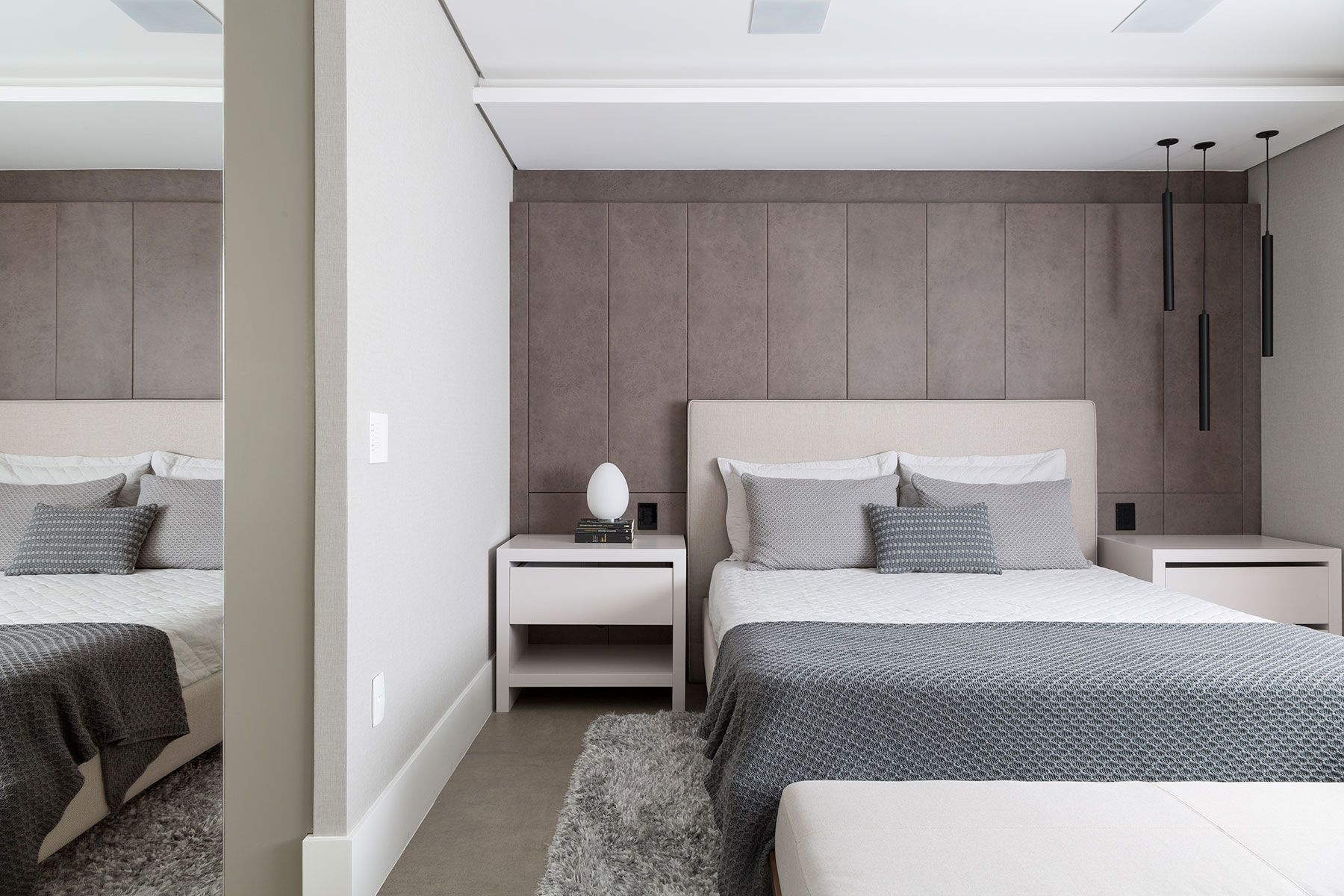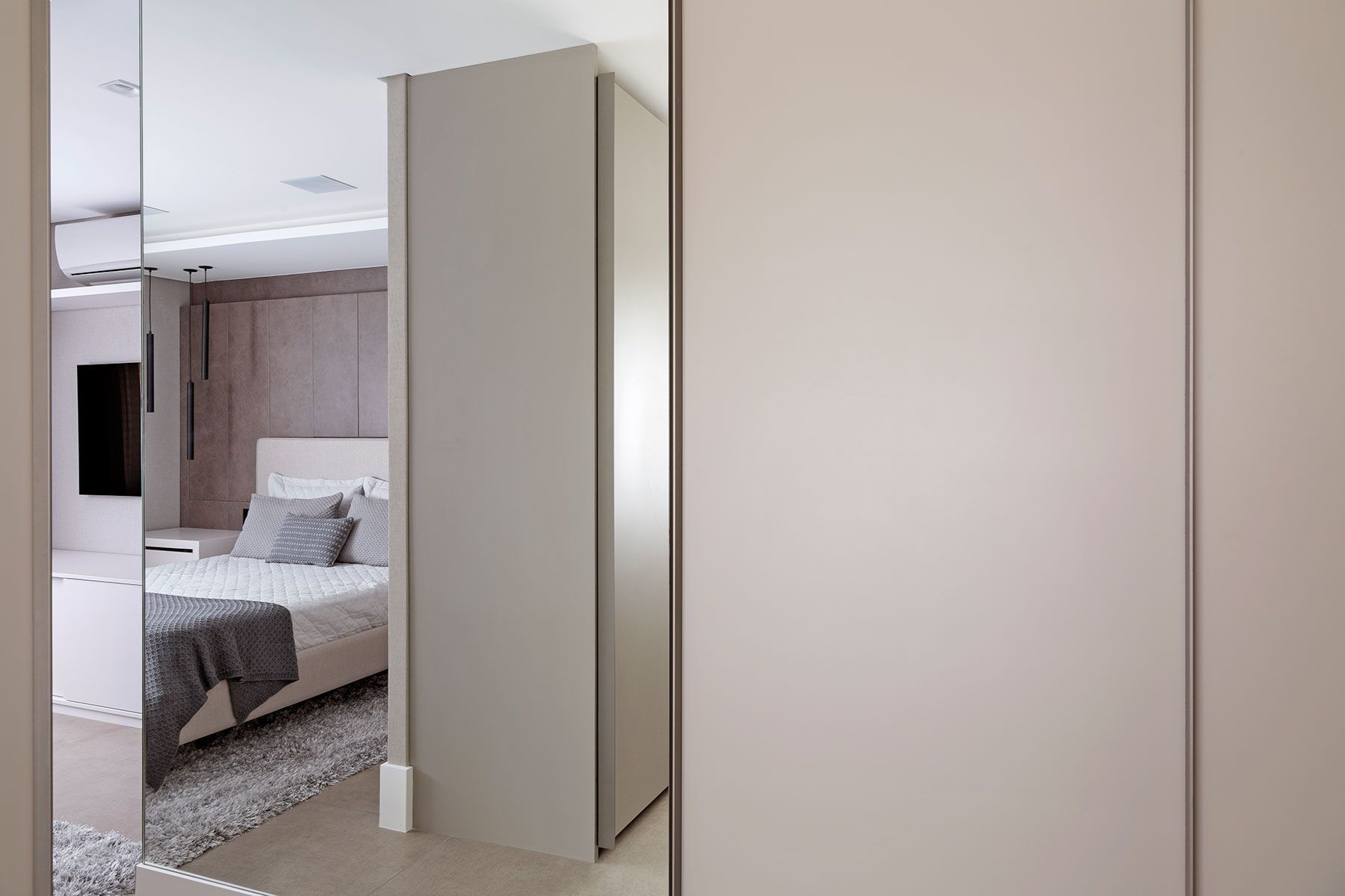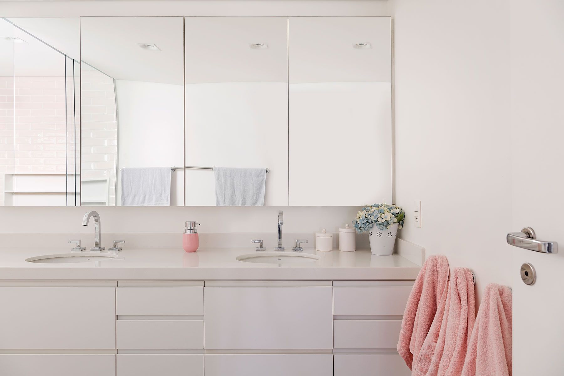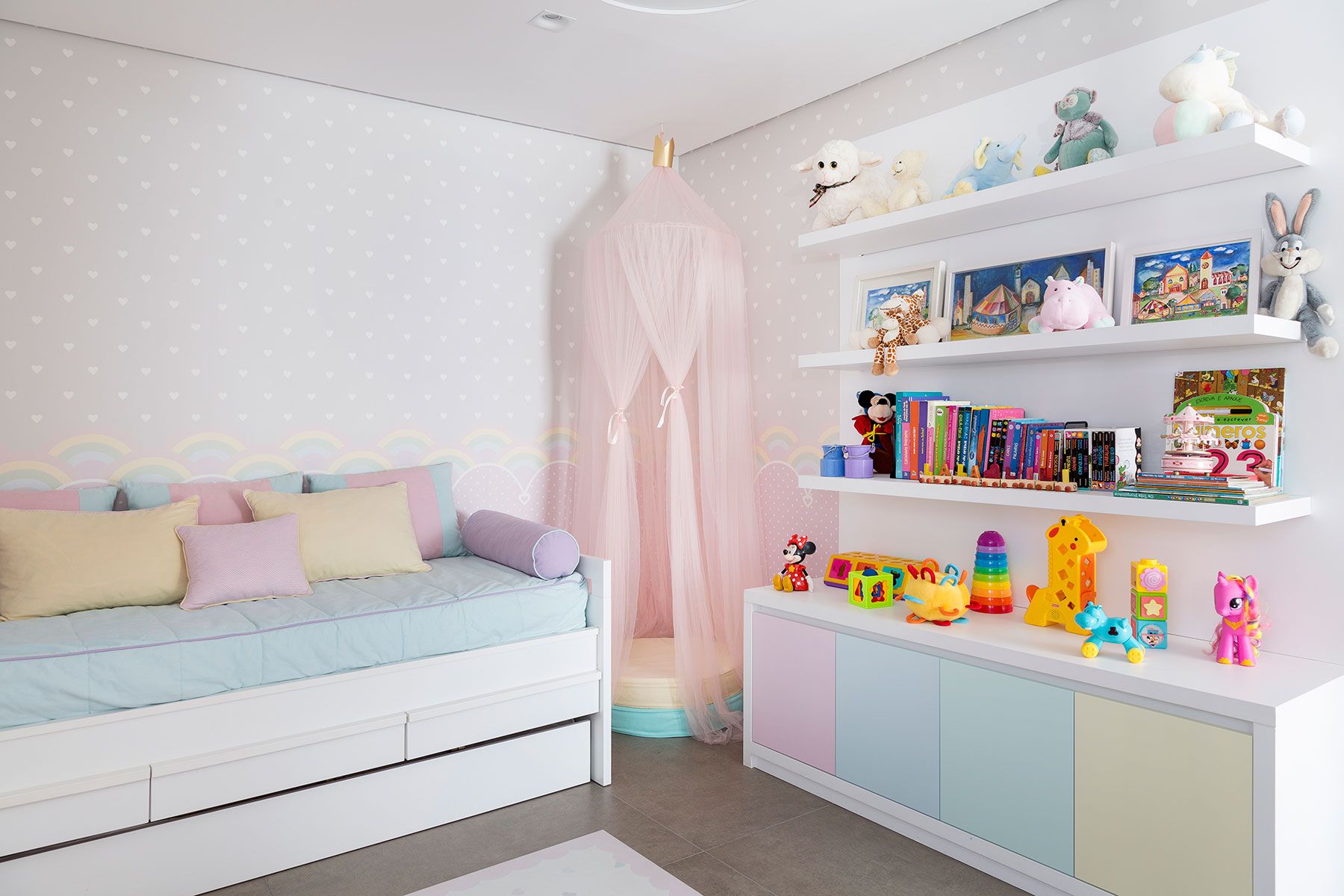 Para que a suíte das meninas fosse integrada com a brinquedoteca, a profissional utilizou a suíte master original como o dormitório e o closet original como brinquedoteca. Já para o novo quarto do casal, um banheiro foi demolido, criando um closet e dois banheiros.