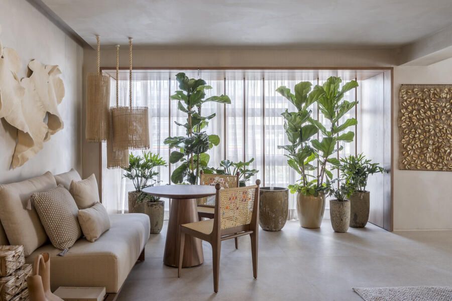 “Nosso desejo foi criar uma estética que valoriza um estilo de morar mais leve e desacelerado. A arquitetura exerce o papel de fortalecer o propósito de atenuar o ritmo para encontrarmos a paz e estabelecermos uma conexão saudável consigo mesmo e os outros.”