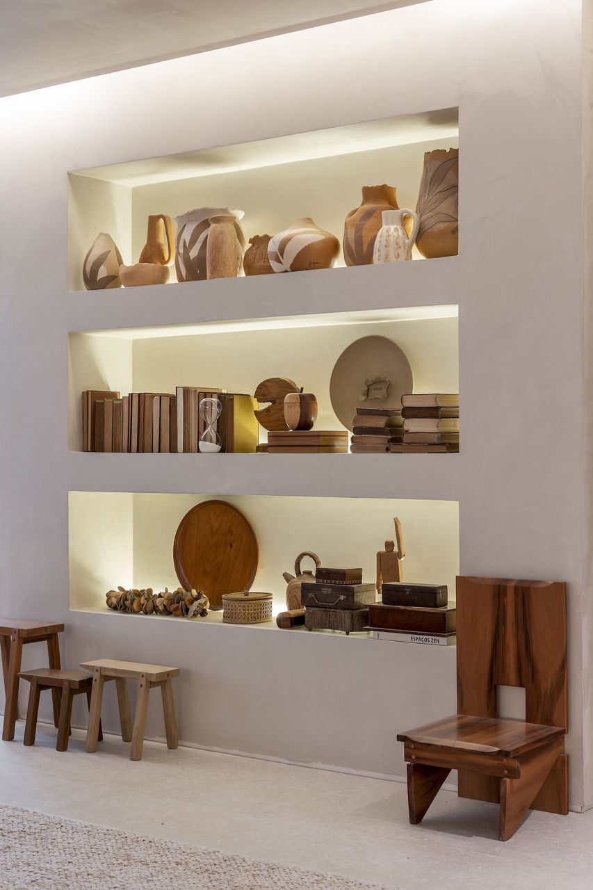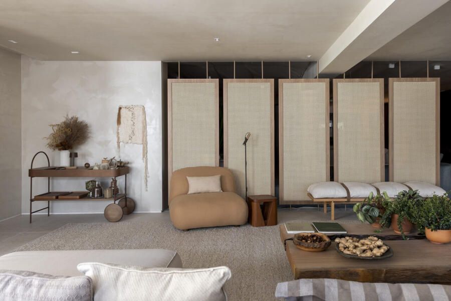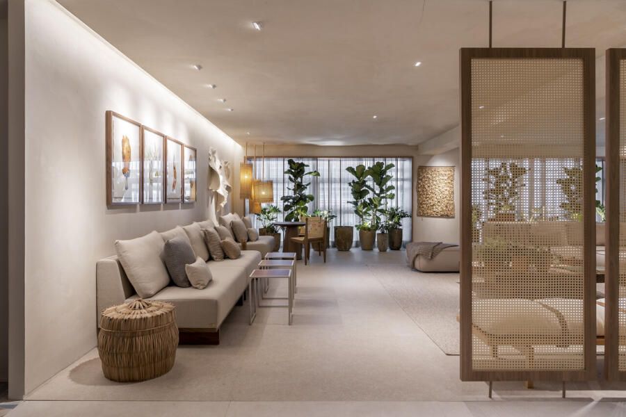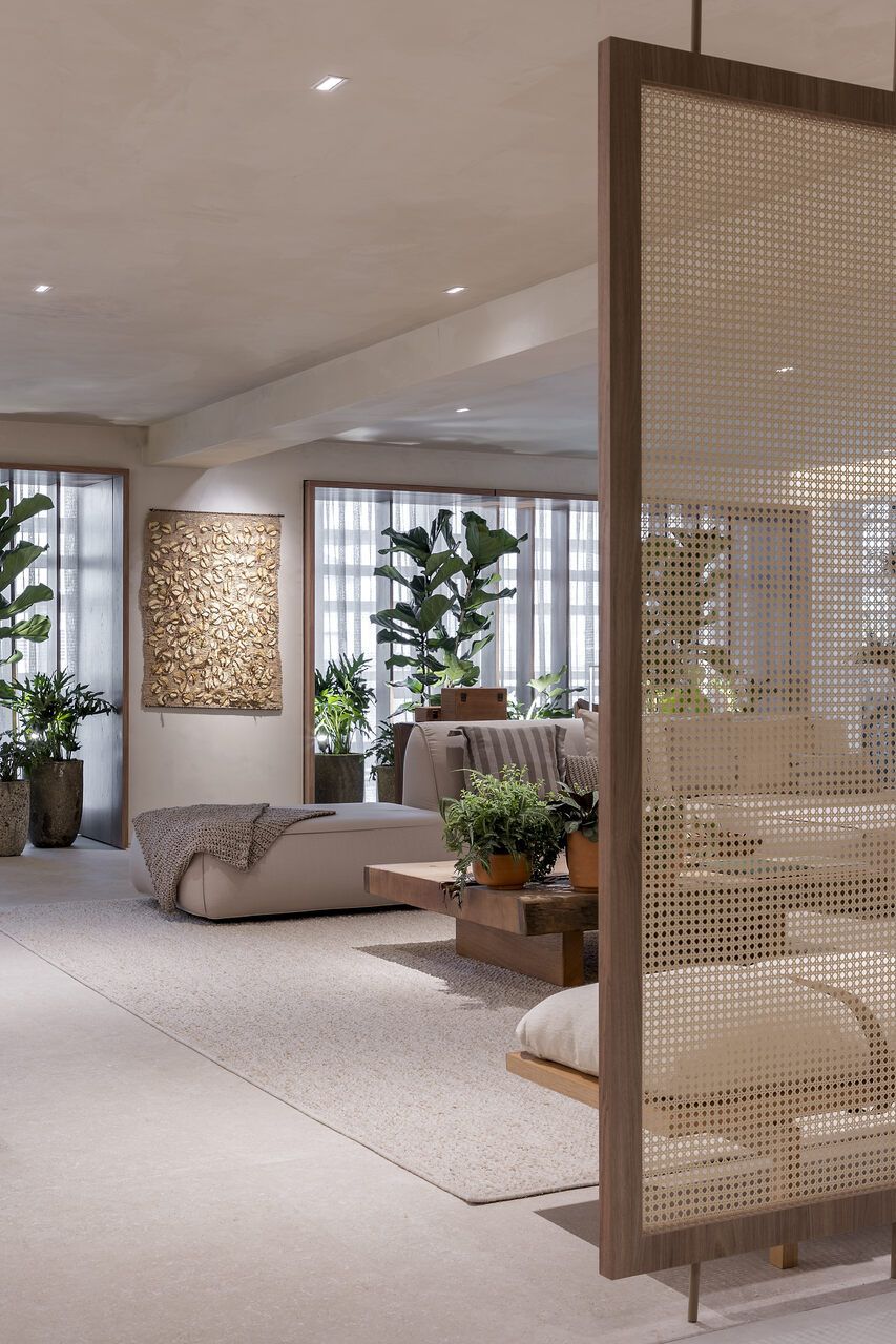 Intitulado “Refúgio Conexão”, o espaço de 76m² pretende instigar a investigação mental sobre o uso do tempo e como ele pode ser usado para momentos de relaxamento e reflexão.
