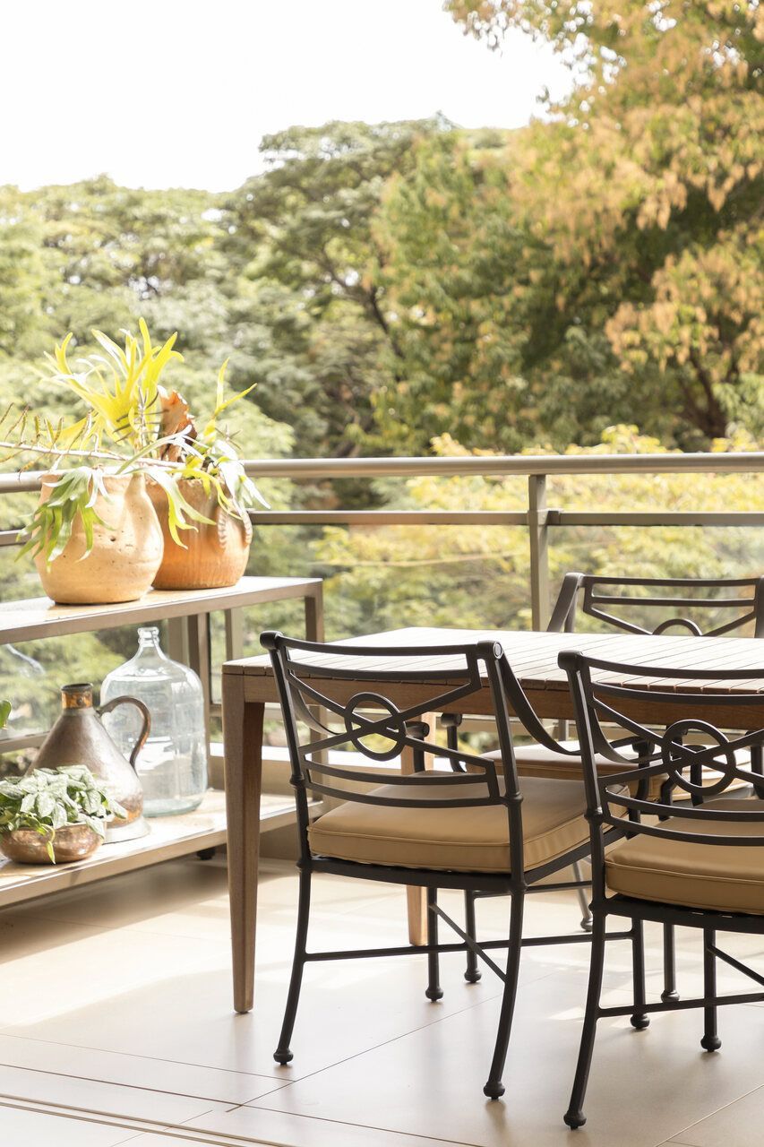 No interior, o mobiliário revela o olhar apurado dos profissionais. Ícones do design brasileiro e internacional, como as cadeiras de John Graz, as poltronas de Aristeu Pires, a mesa de Pedro Useche e o banco Mocho de Sérgio Rodrigues, foram inseridos com equilíbrio e elegância. O resultado é um apartamento com identidade, mas livre de excessos.