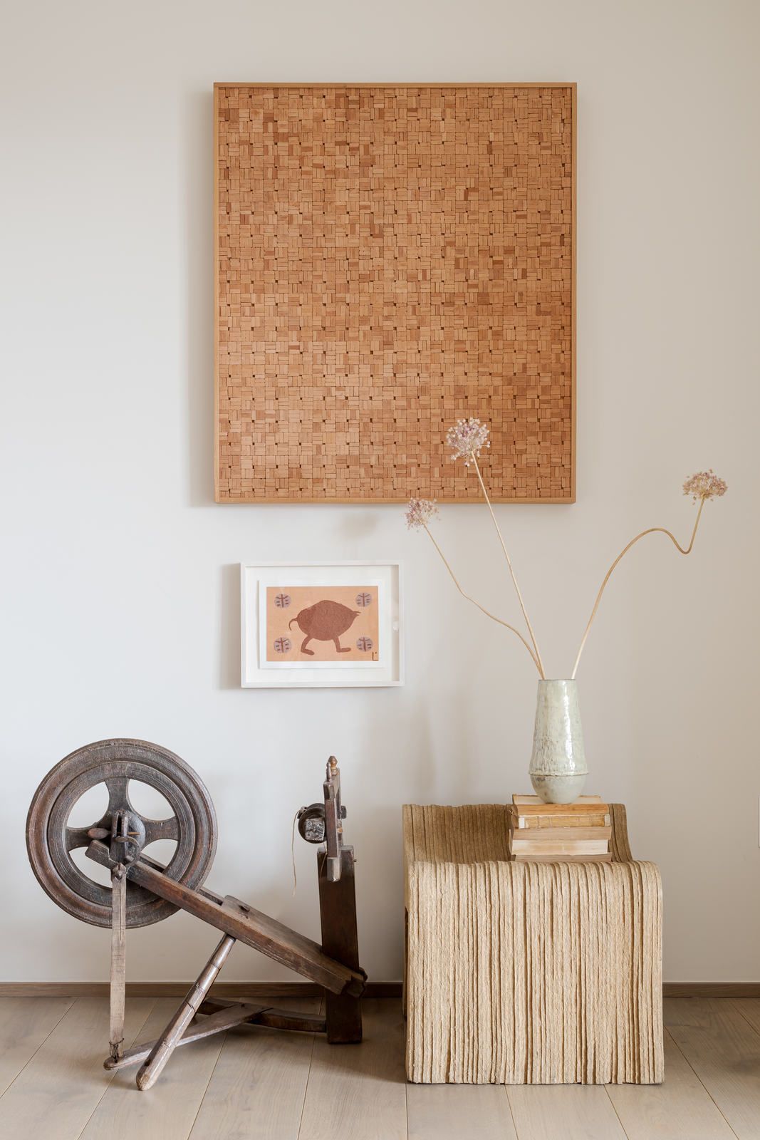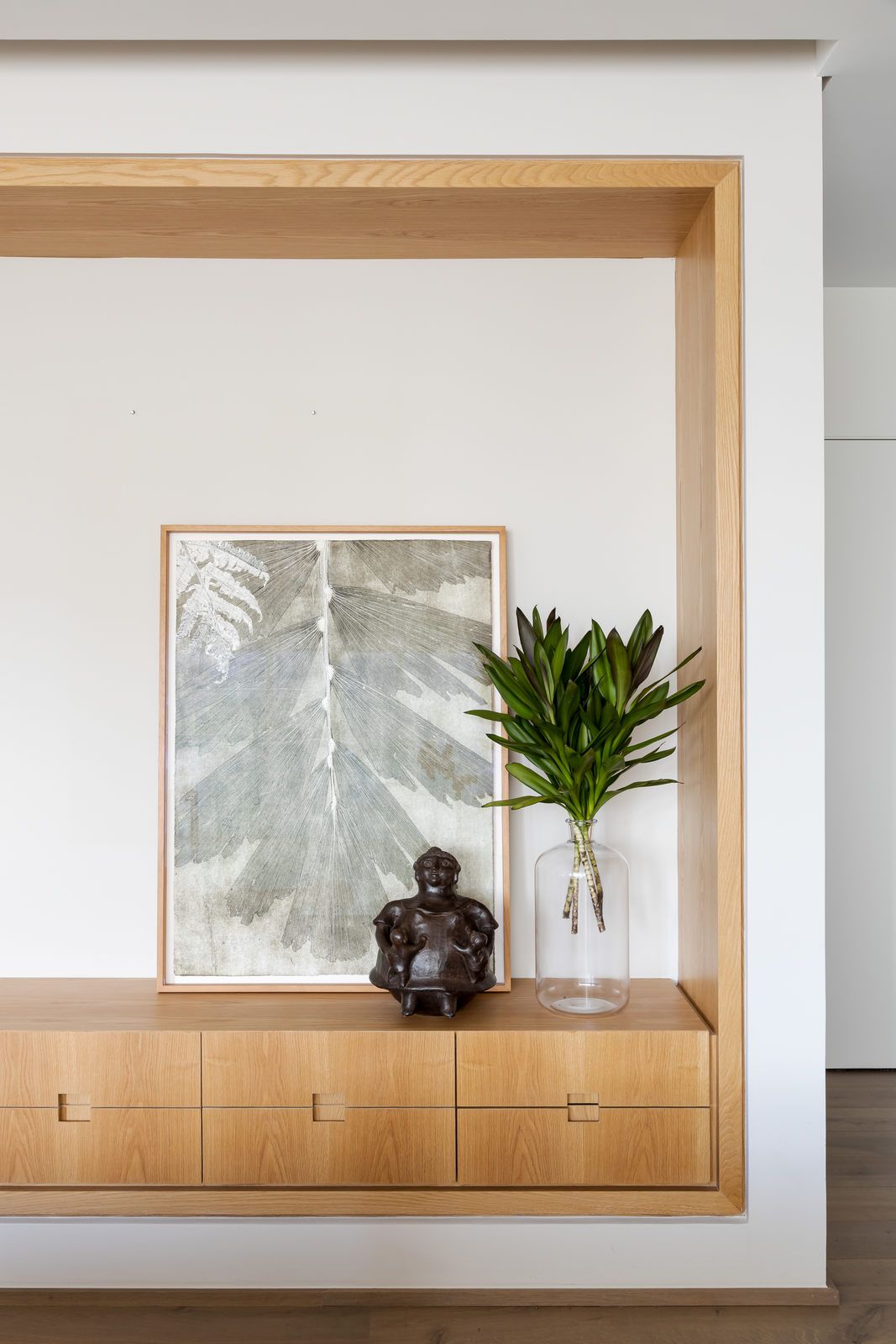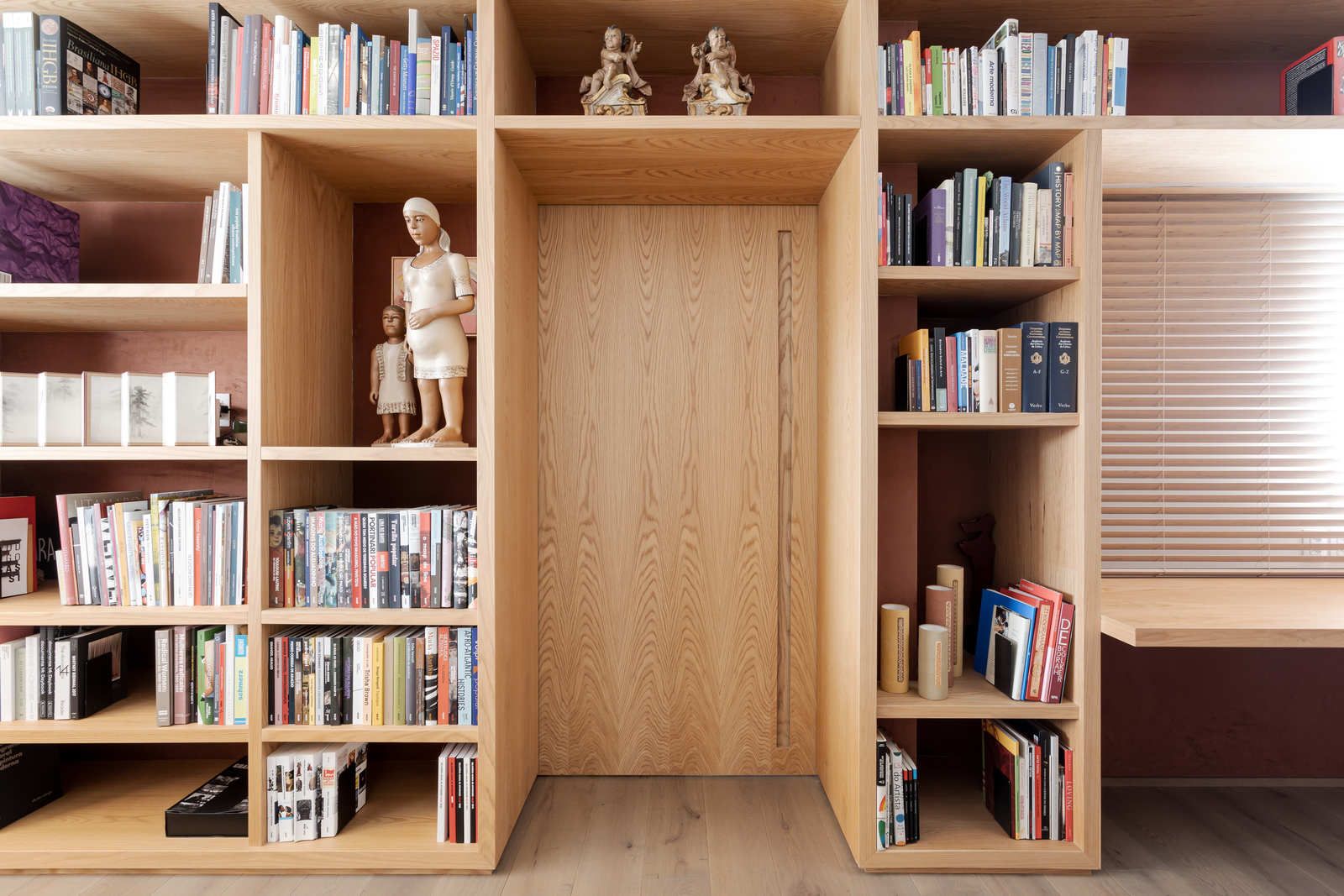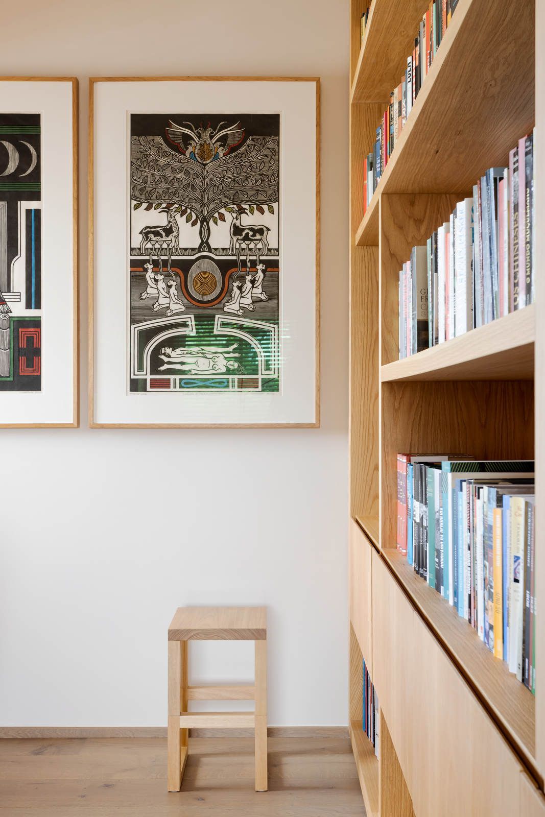 “Ele é advogado e adora trabalhar, então fizemos um espaço que atendesse a essa necessidade. Já ela é artista plástica, então o apartamento é recheado de cantinhos especiais com obras de arte.”