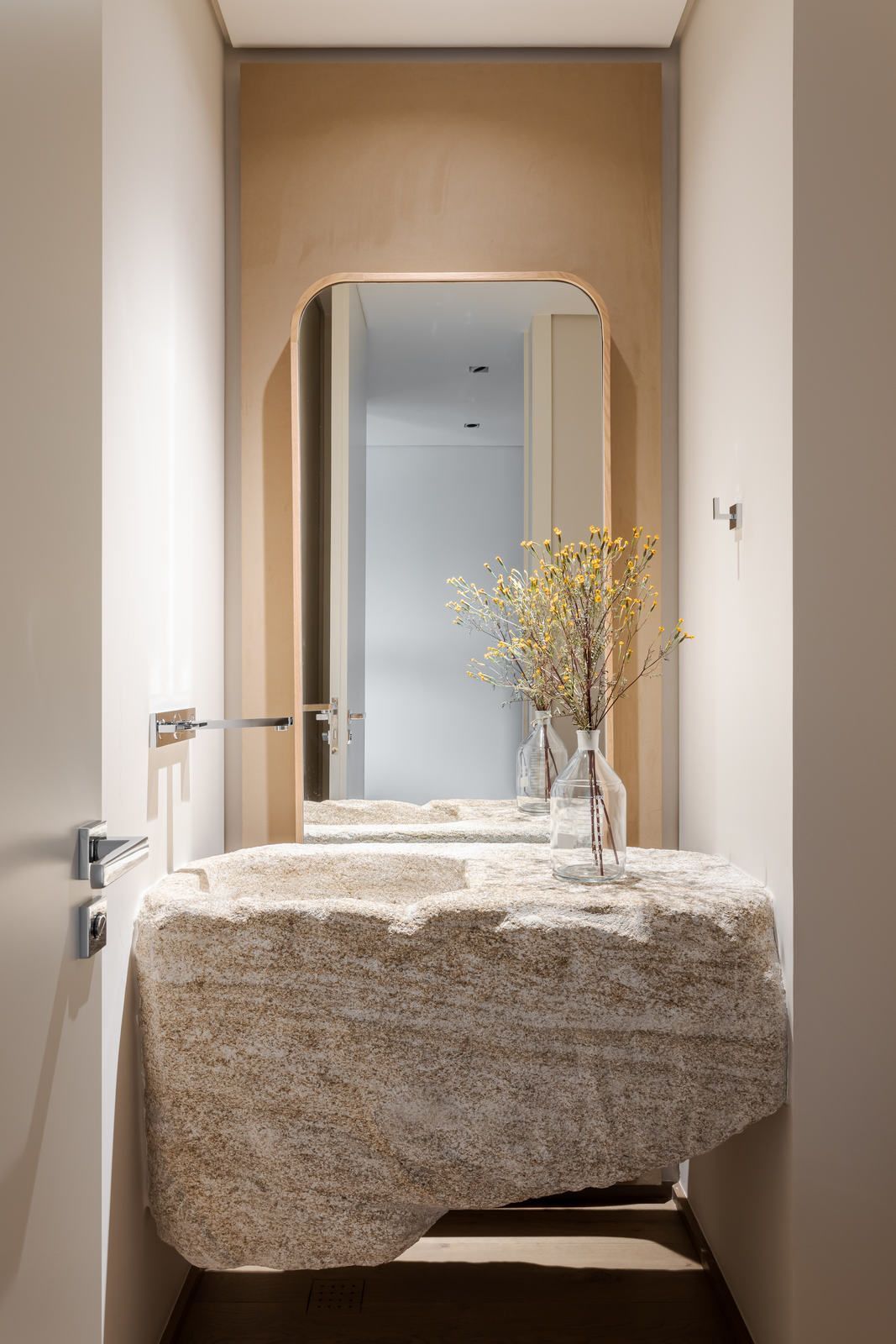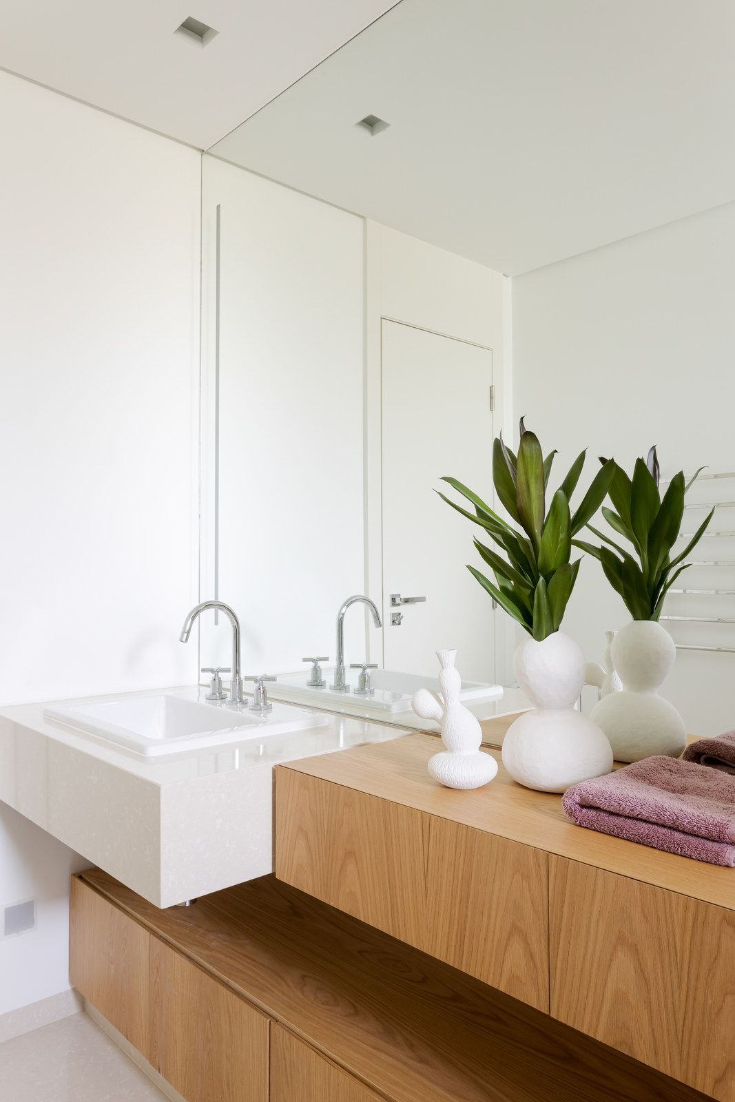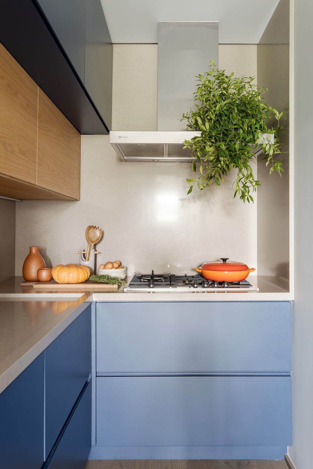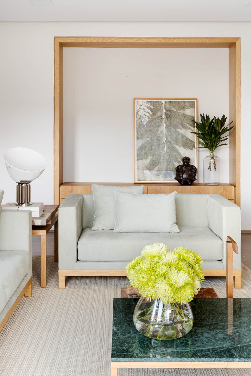“Eles adoram estar sozinhos, por isso o apartamento foi pensado não para receber, mas sim para ser um refúgio dos dois. A inspiração e o conceito do projeto foi tratar o espaço como um lugar para se desligar da vida do dia a dia.”