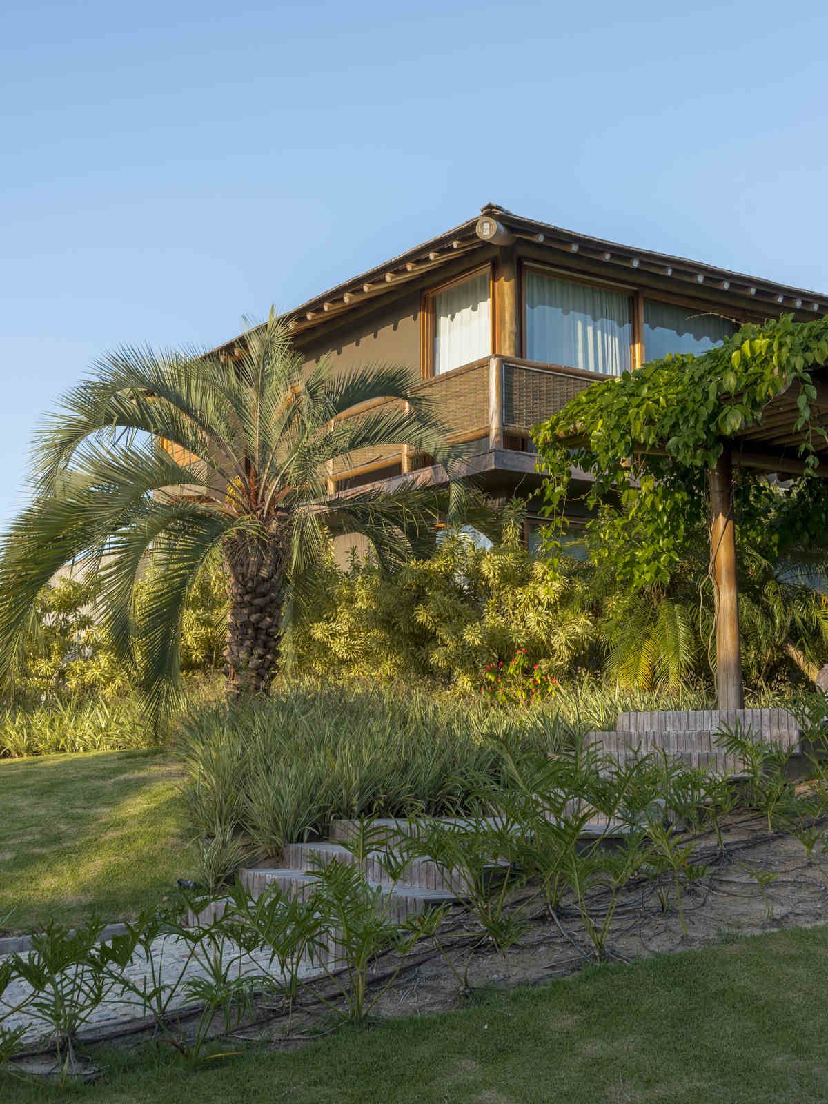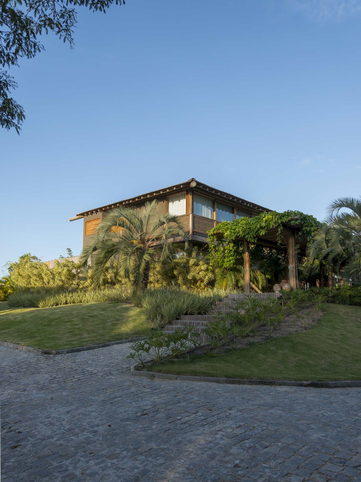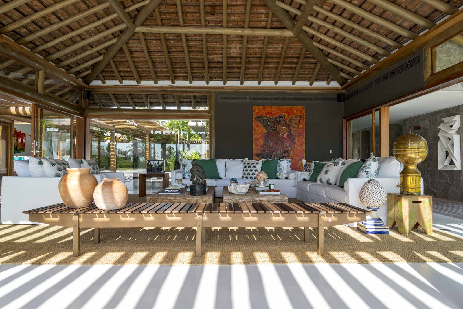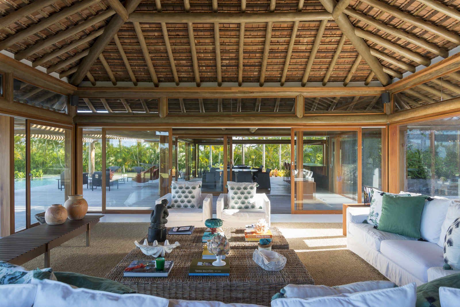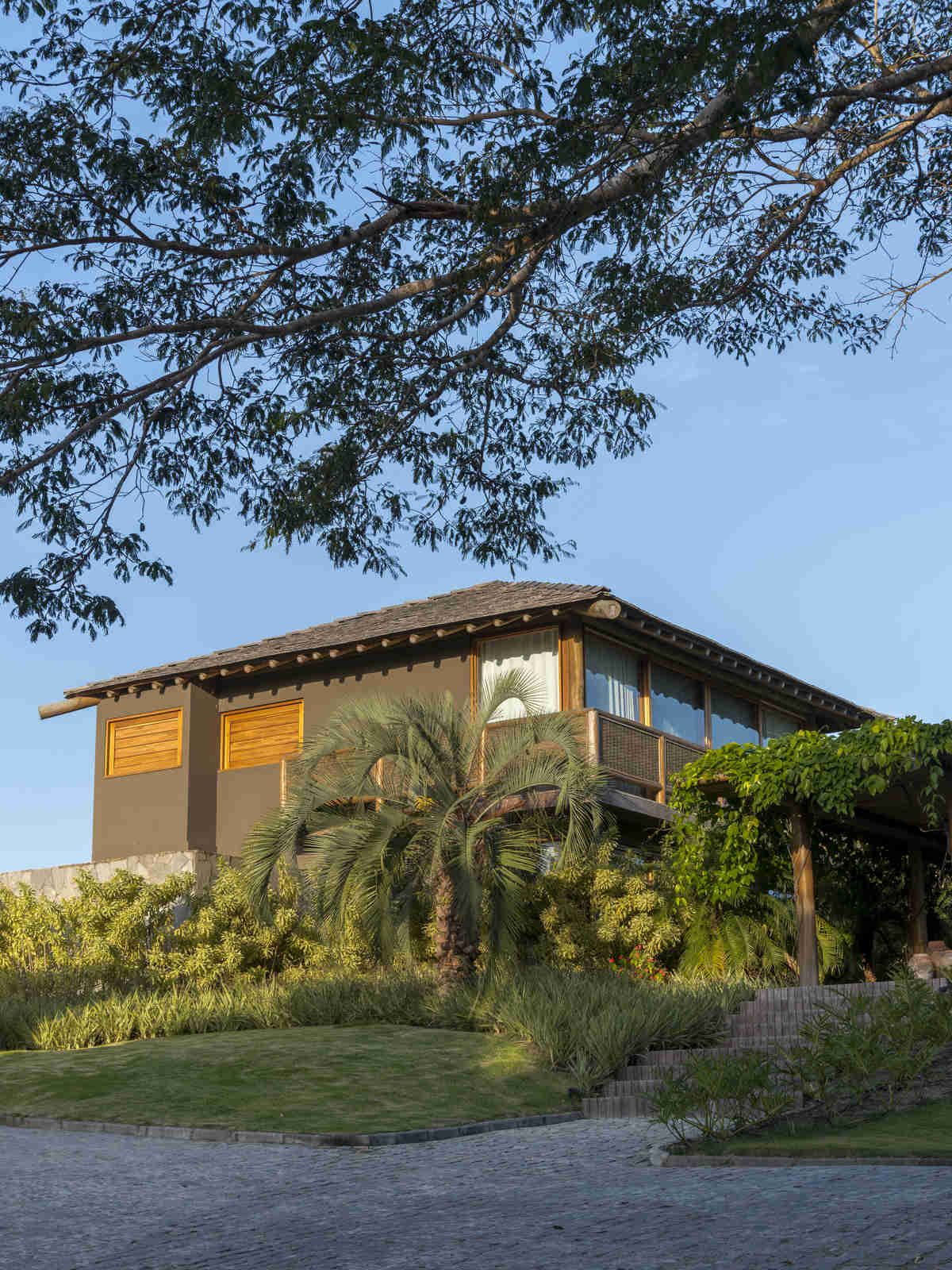 Um refúgio praiano cercado de paisagem natural. Esse foi o pedido feito por uma família ao arquiteto David Bastos para este projeto localizado em Trancoso, na Bahia.