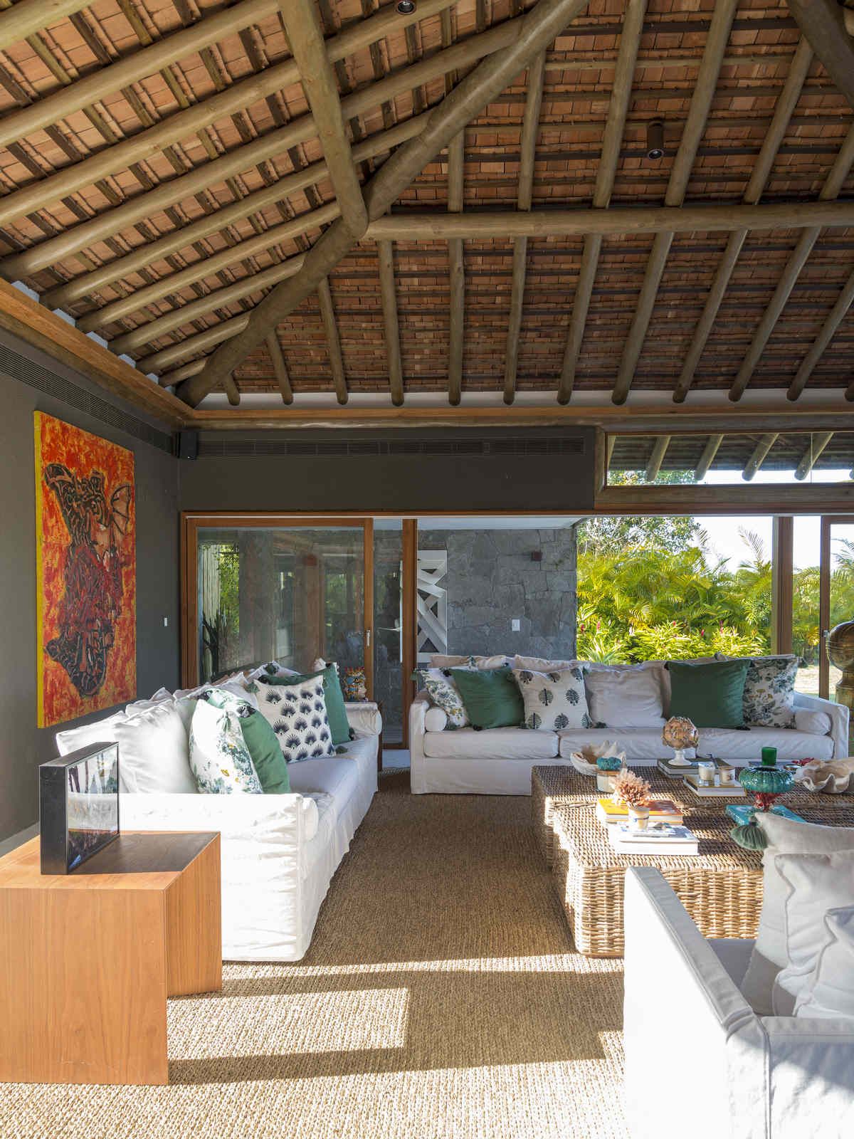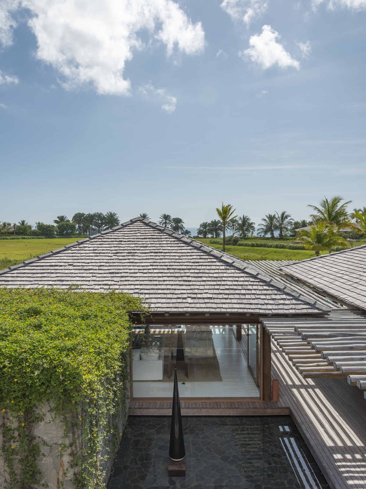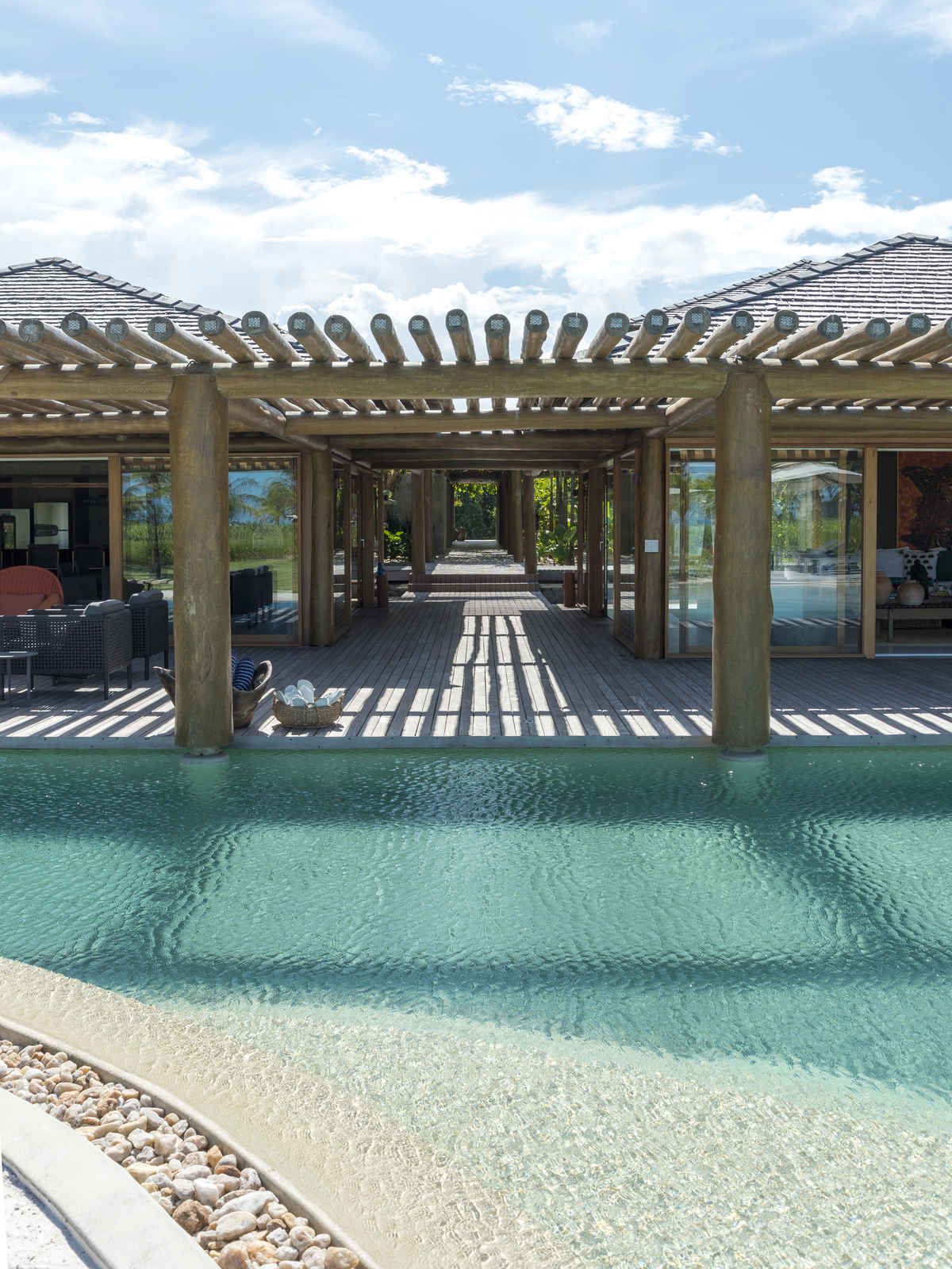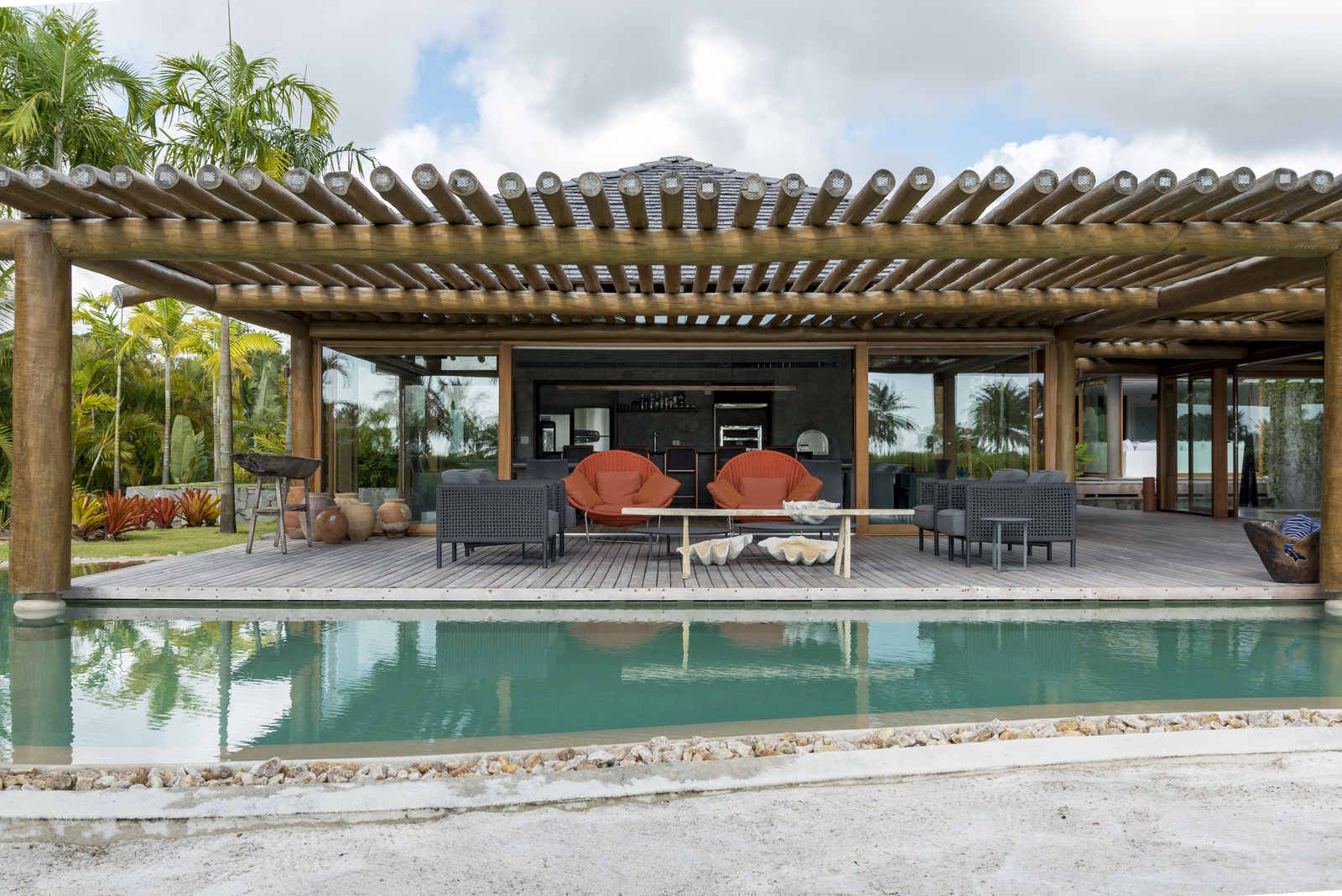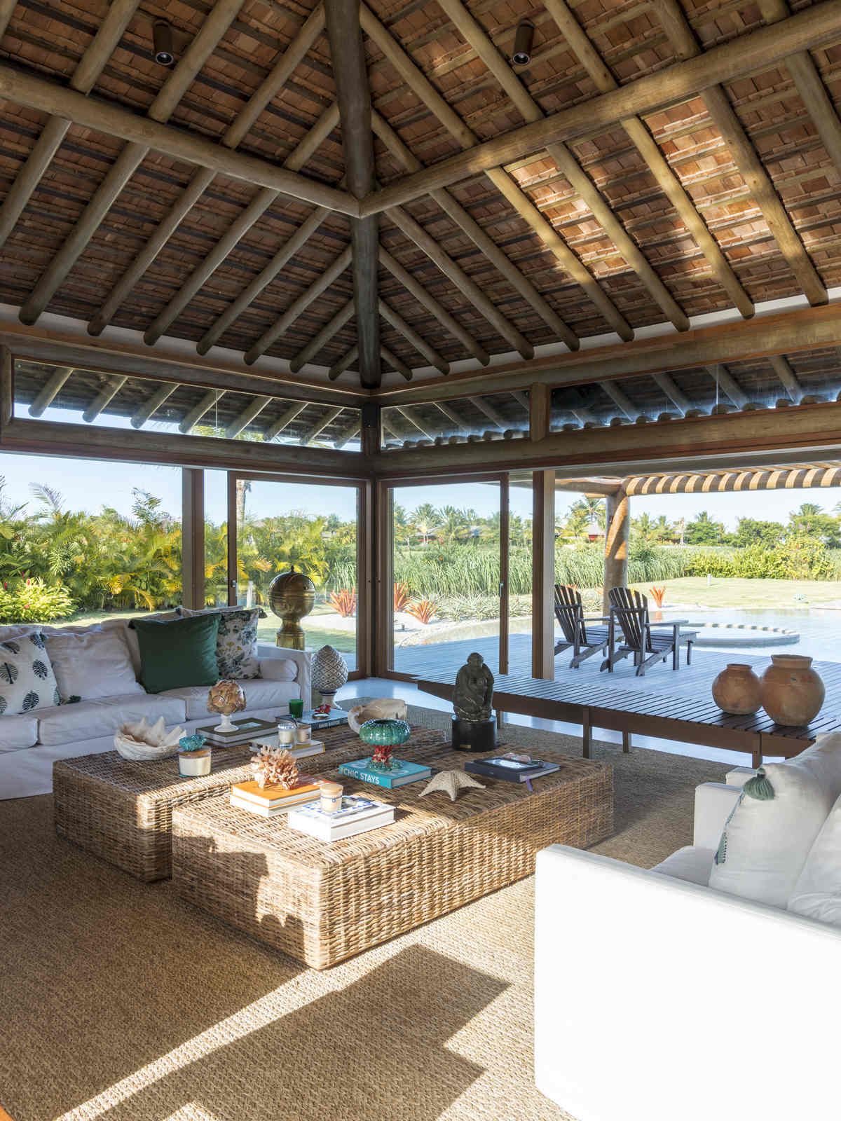 Um refúgio praiano cercado de paisagem natural. Esse foi o pedido feito por uma família ao arquiteto David Bastos para este projeto localizado em Trancoso, na Bahia.