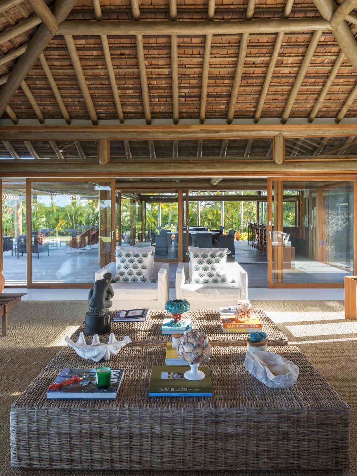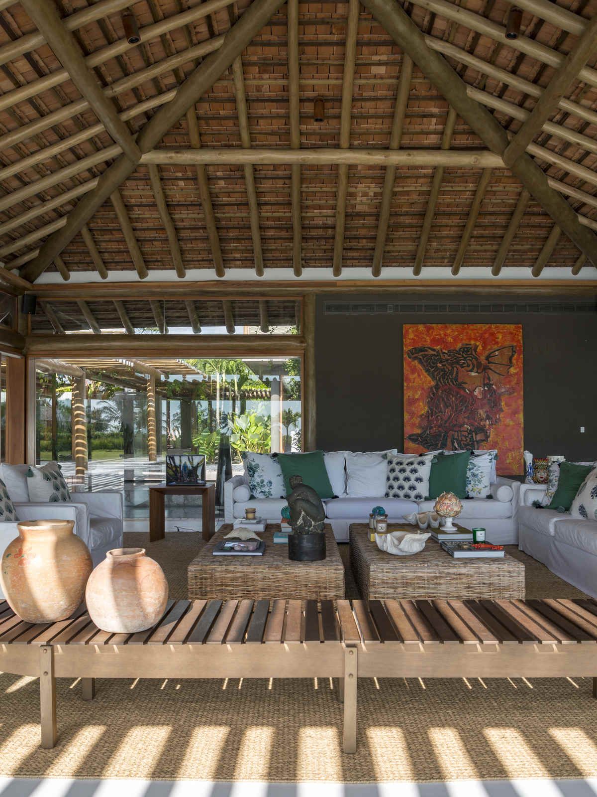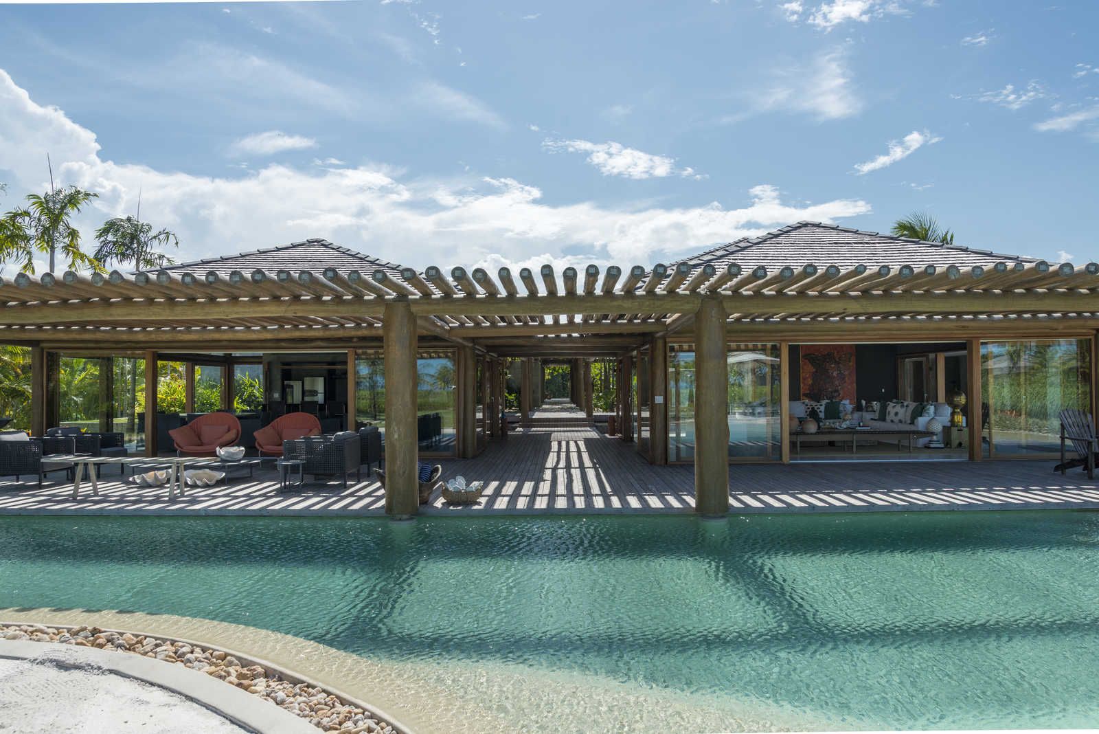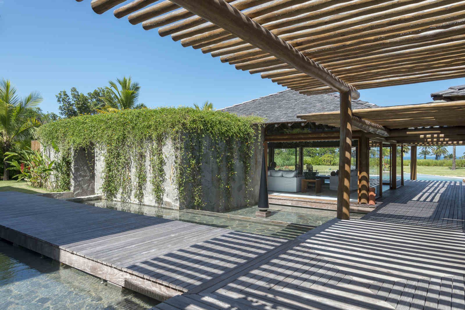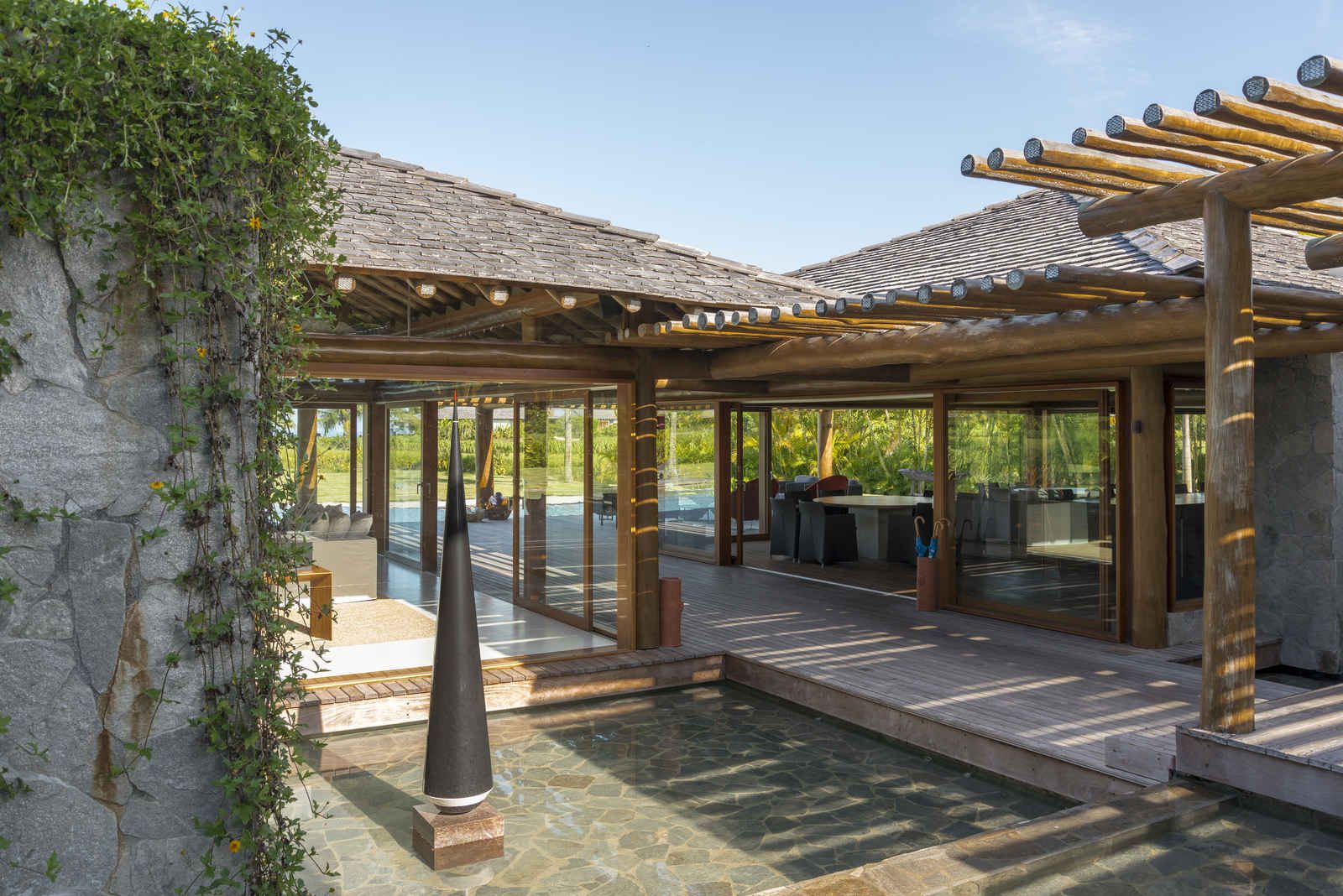 Um refúgio praiano cercado de paisagem natural. Esse foi o pedido feito por uma família ao arquiteto David Bastos para este projeto localizado em Trancoso, na Bahia.
