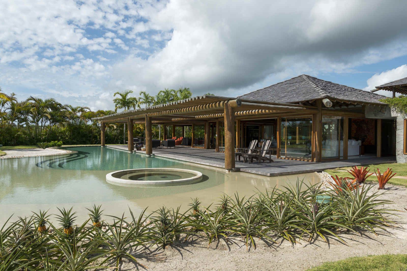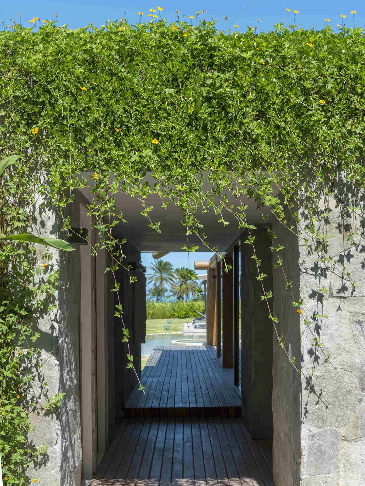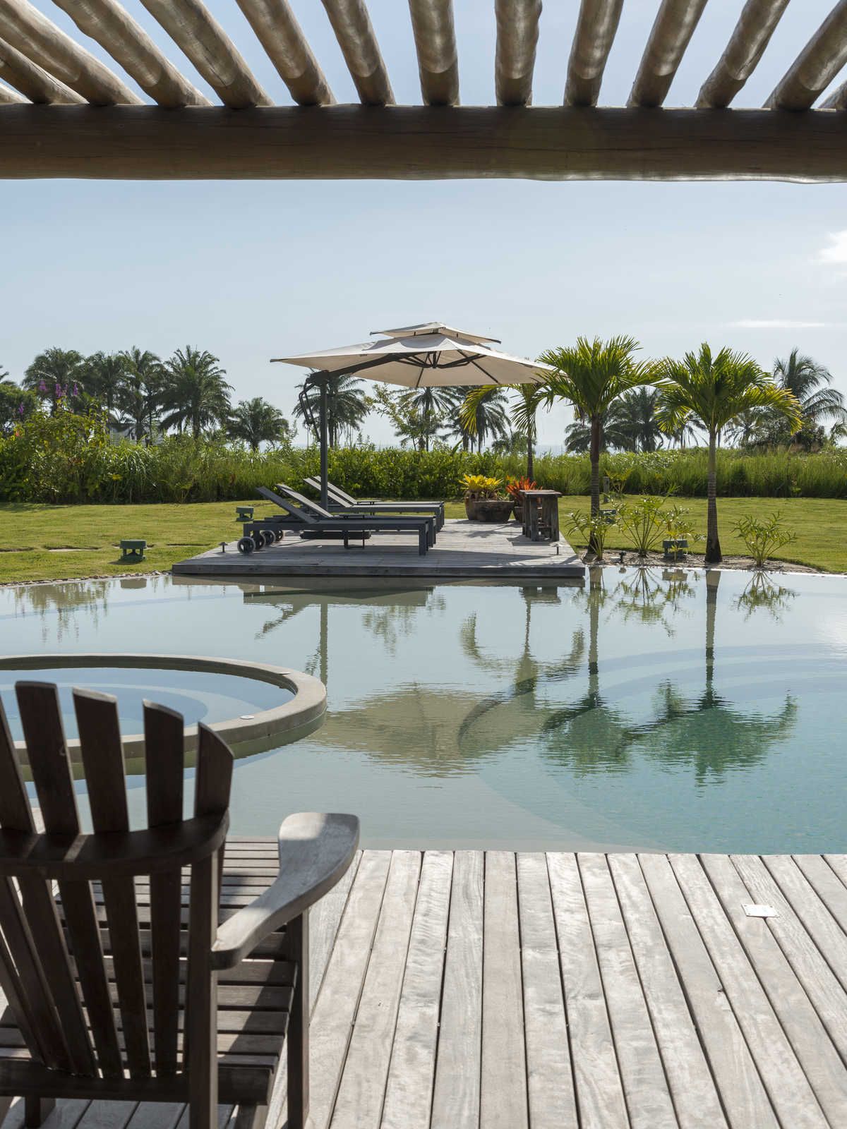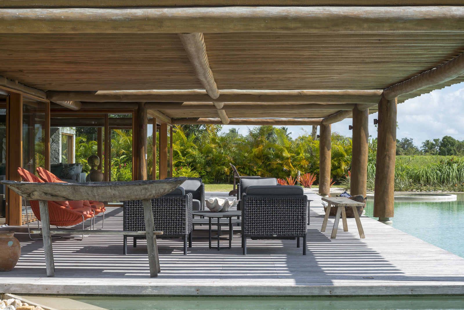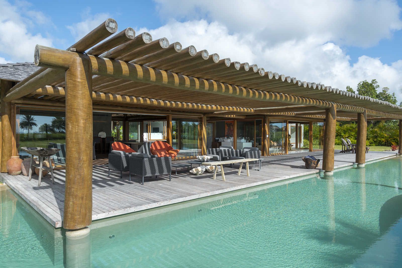 Um refúgio praiano cercado de paisagem natural. Esse foi o pedido feito por uma família ao arquiteto David Bastos para este projeto localizado em Trancoso, na Bahia.