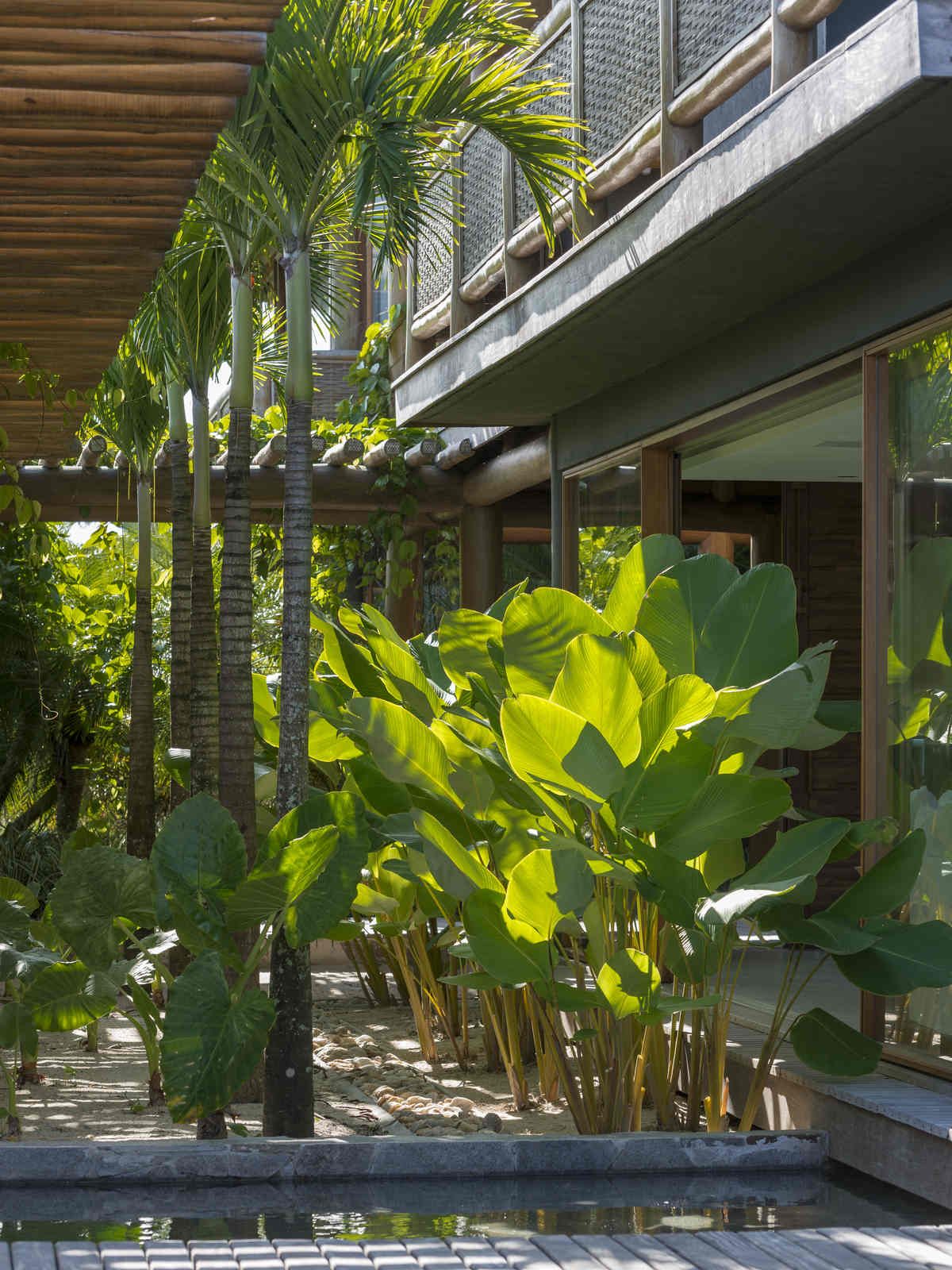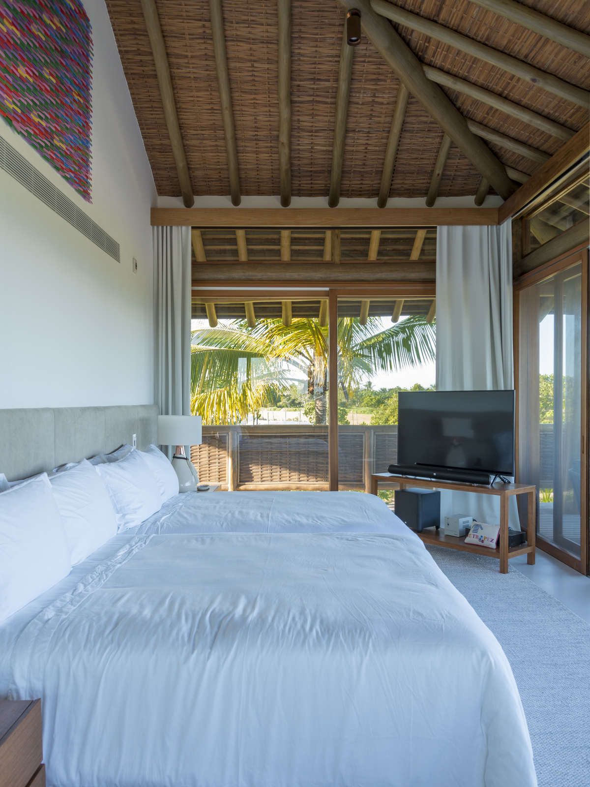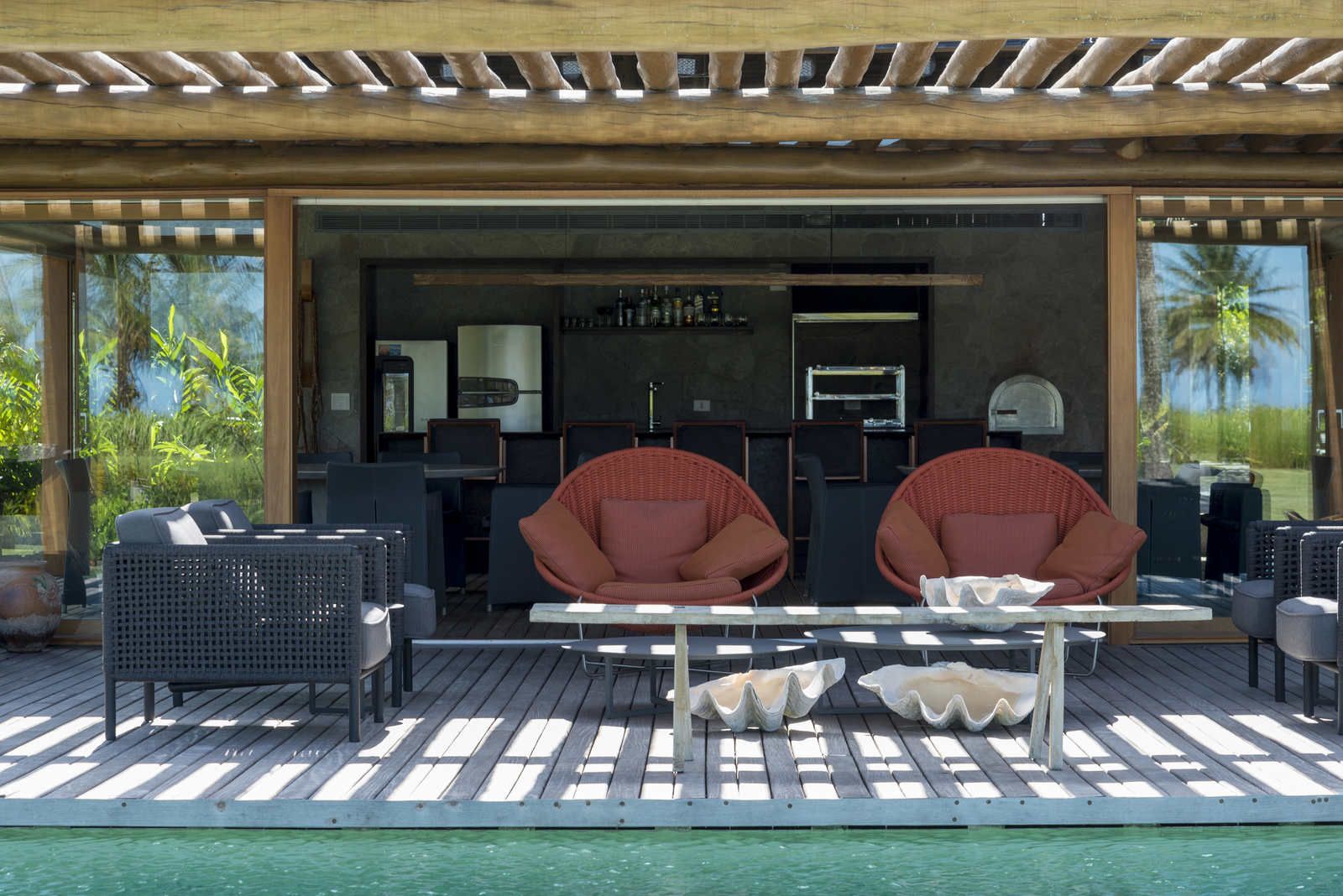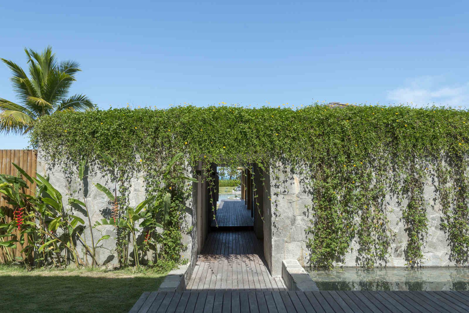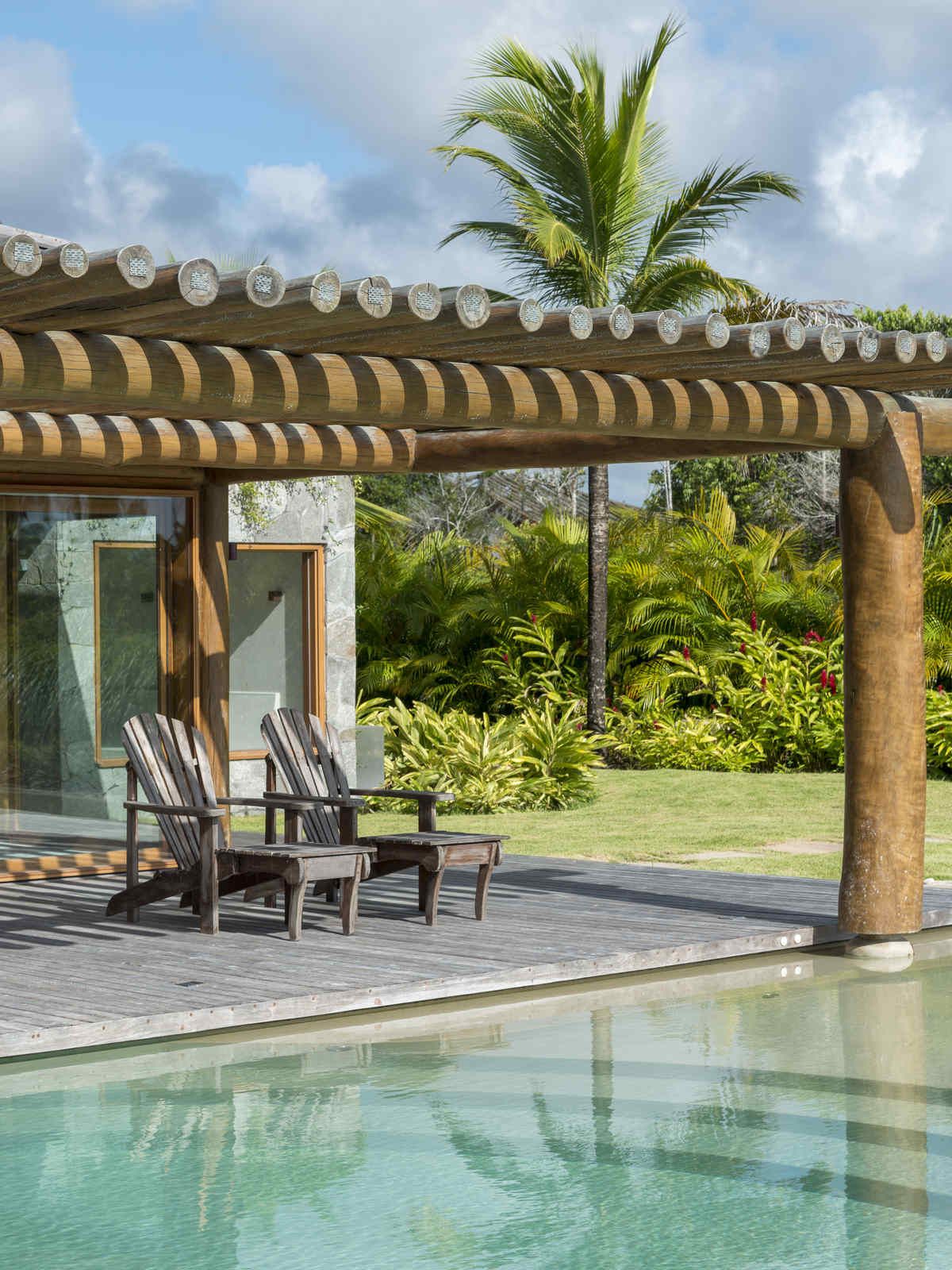 Um refúgio praiano cercado de paisagem natural. Esse foi o pedido feito por uma família ao arquiteto David Bastos para este projeto localizado em Trancoso, na Bahia.