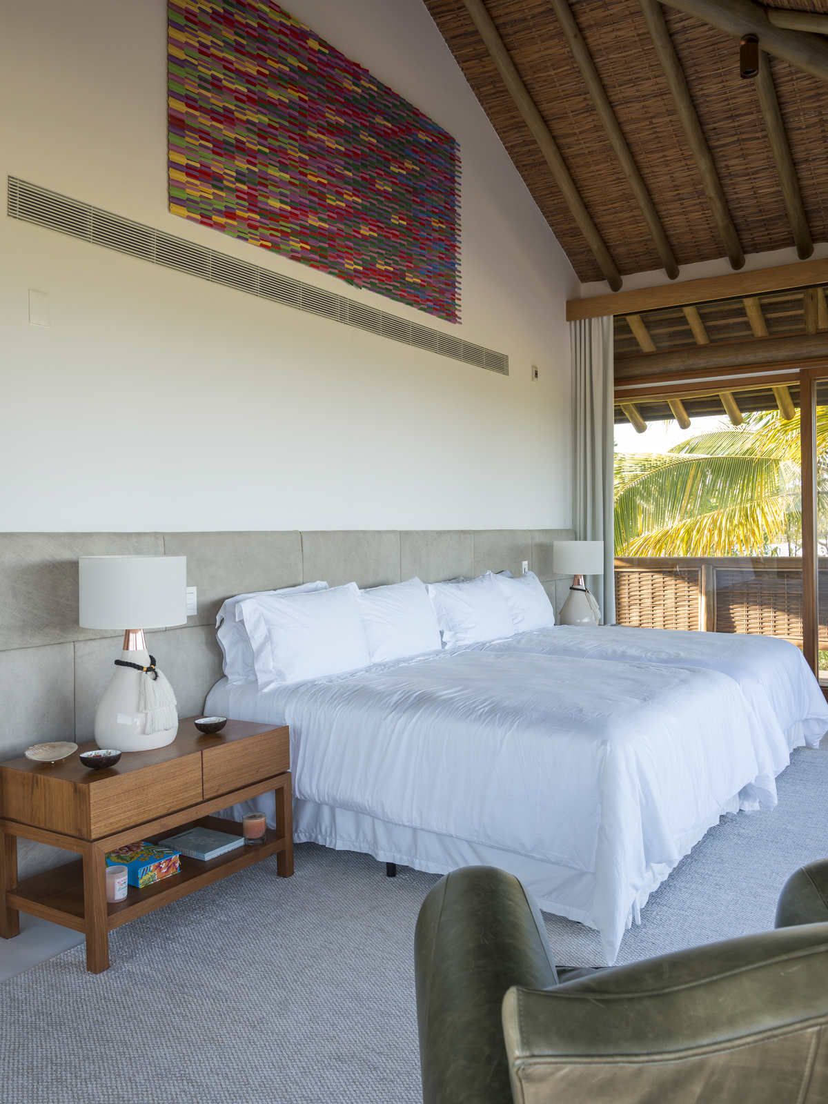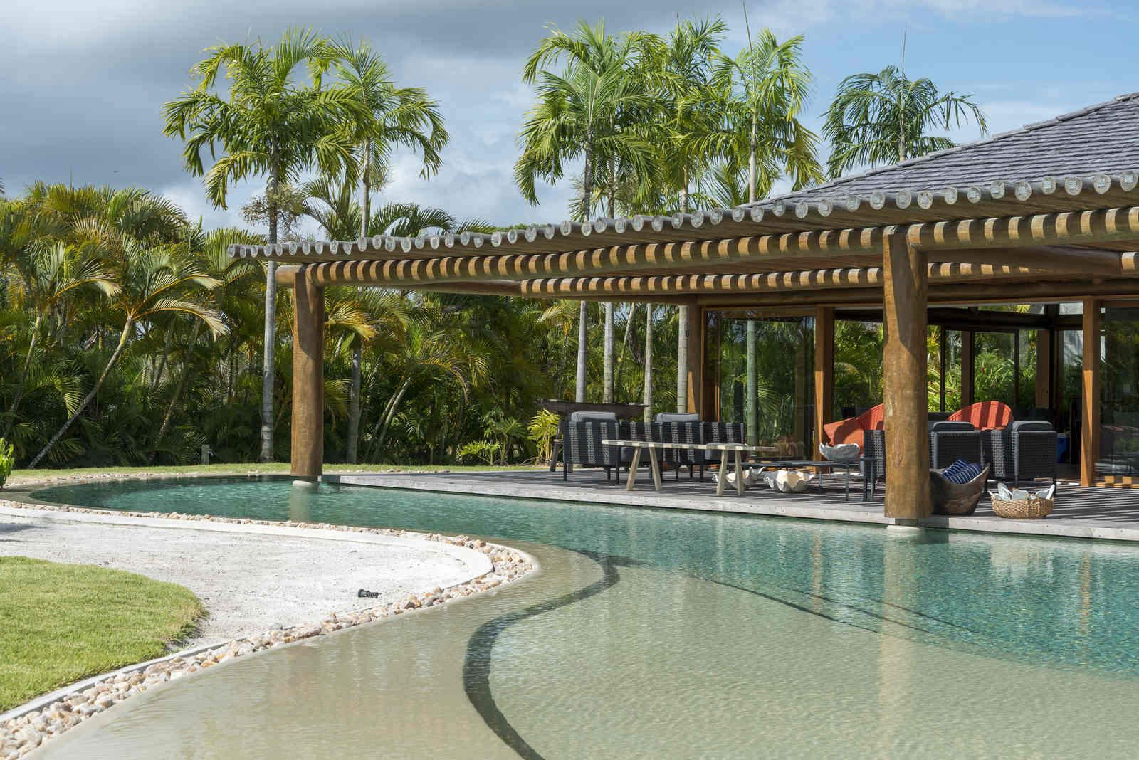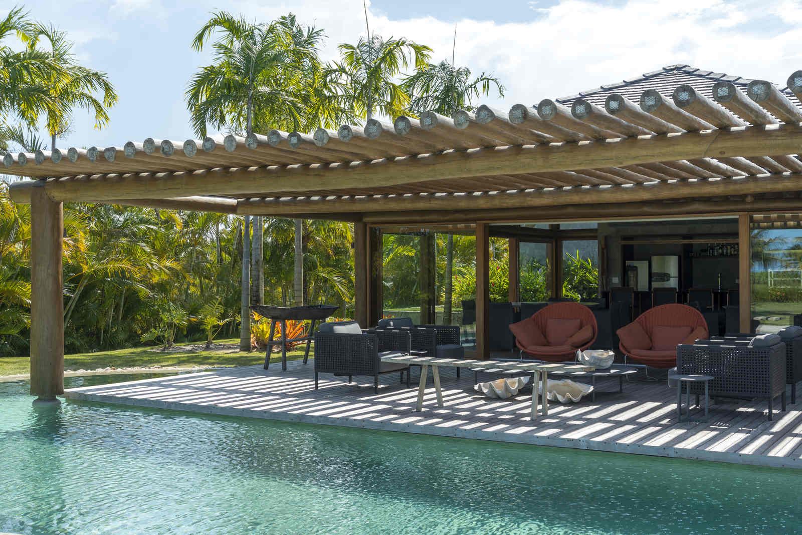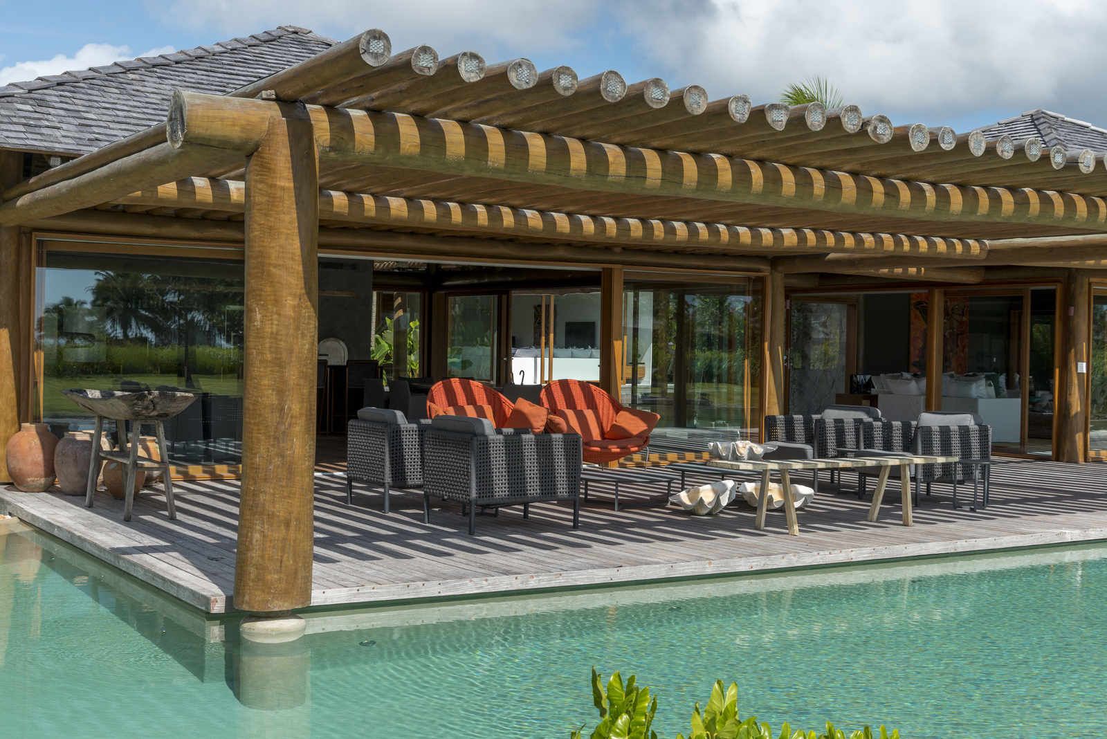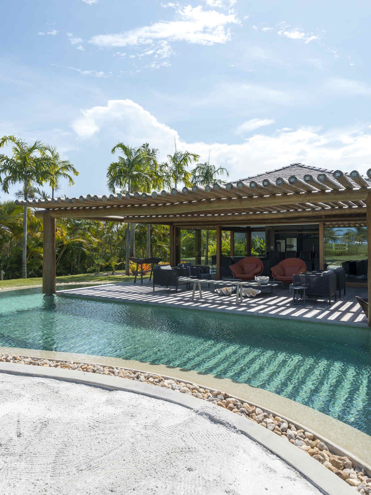 Um refúgio praiano cercado de paisagem natural. Esse foi o pedido feito por uma família ao arquiteto David Bastos para este projeto localizado em Trancoso, na Bahia.