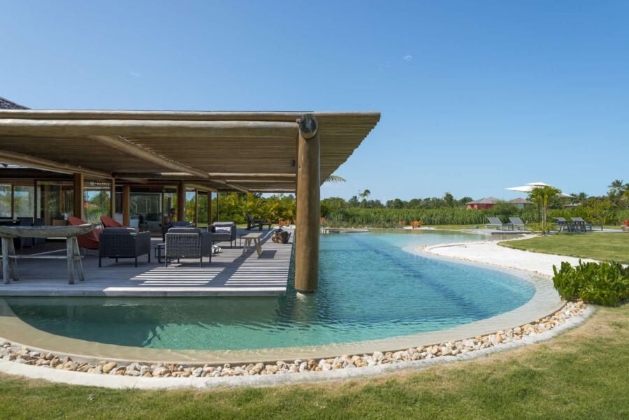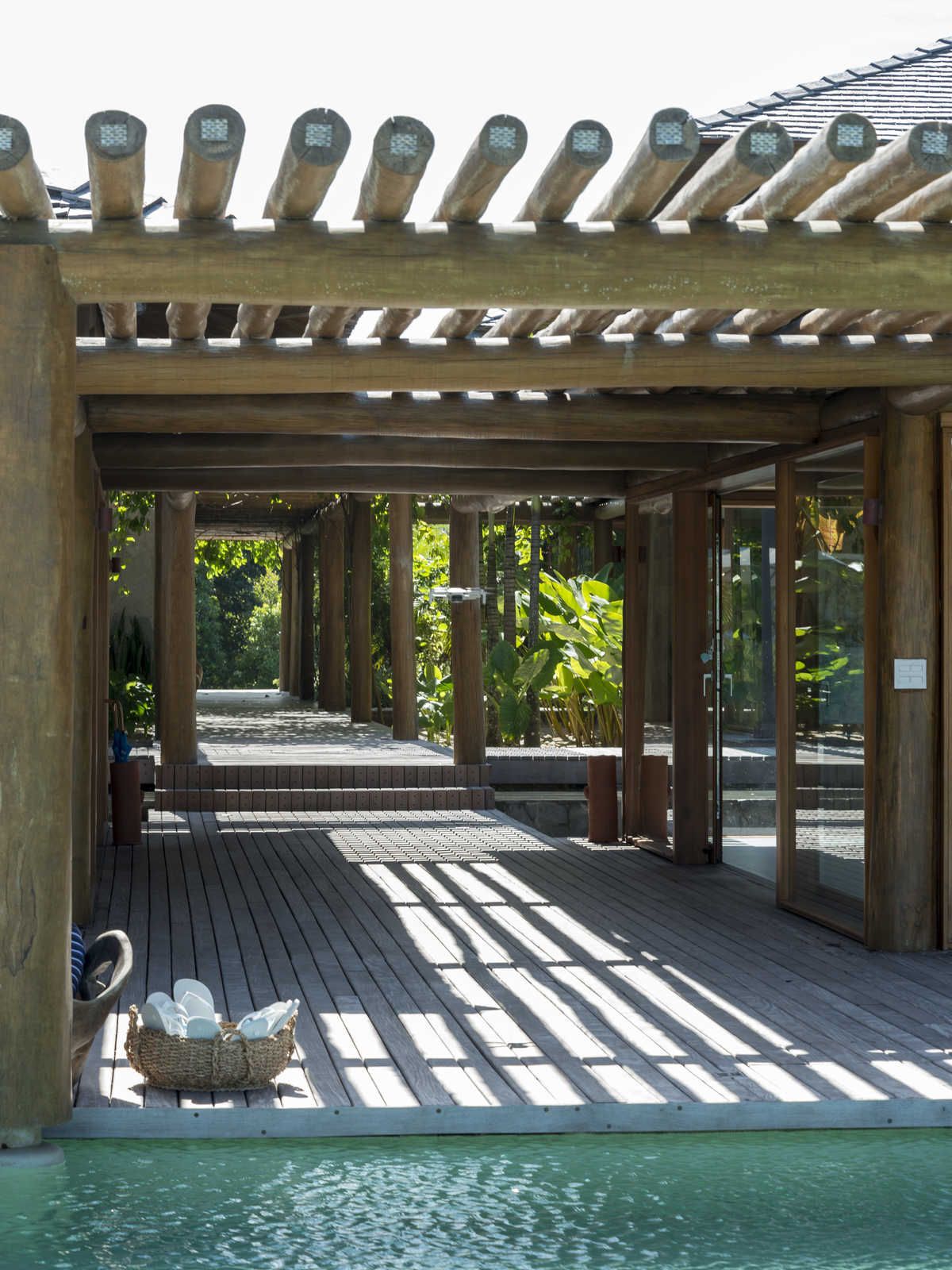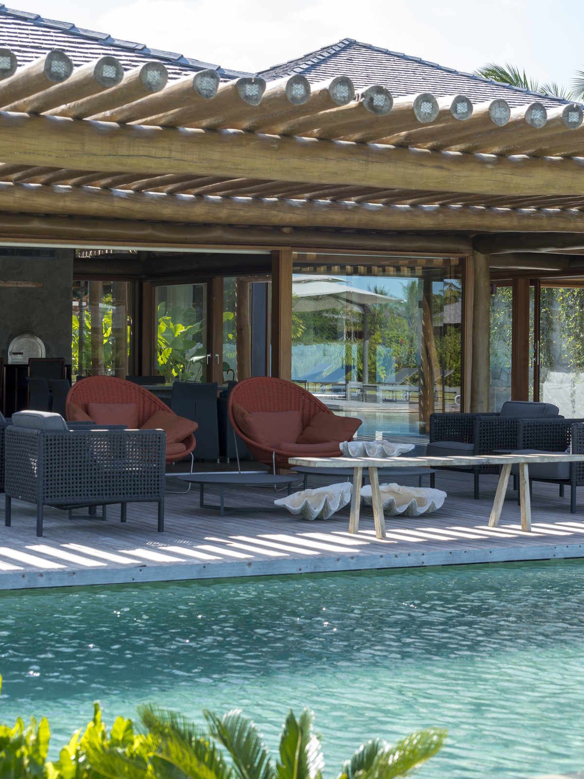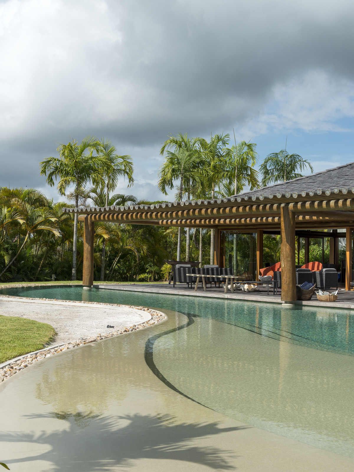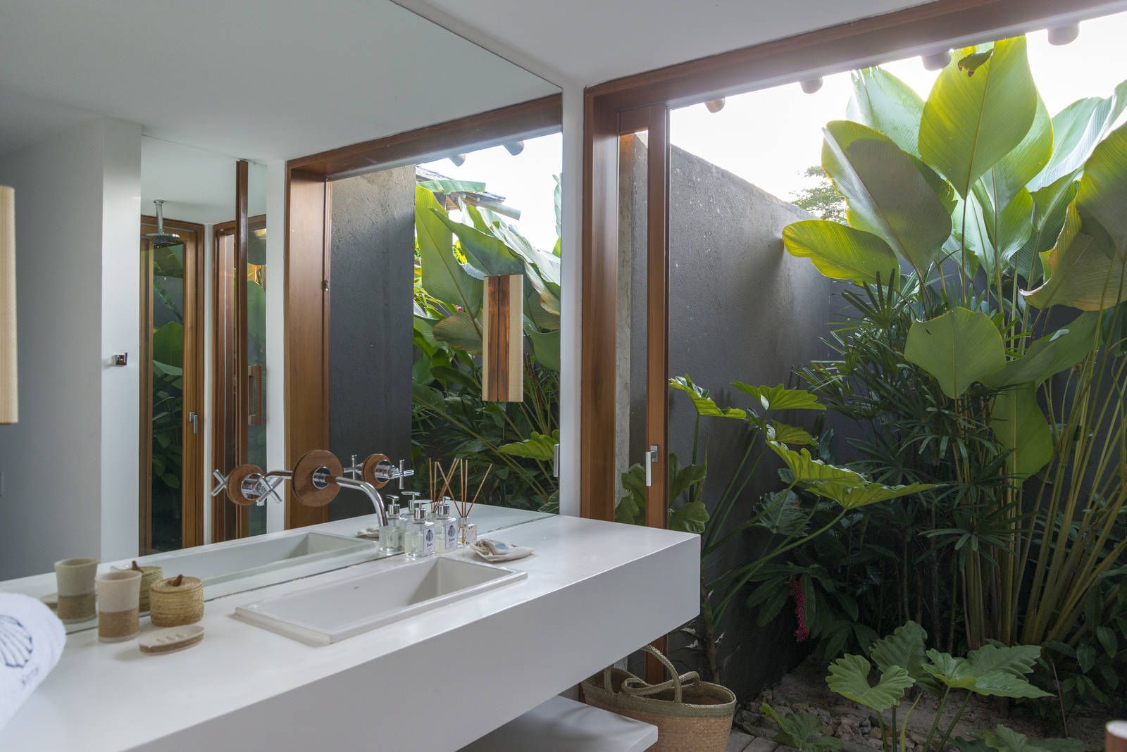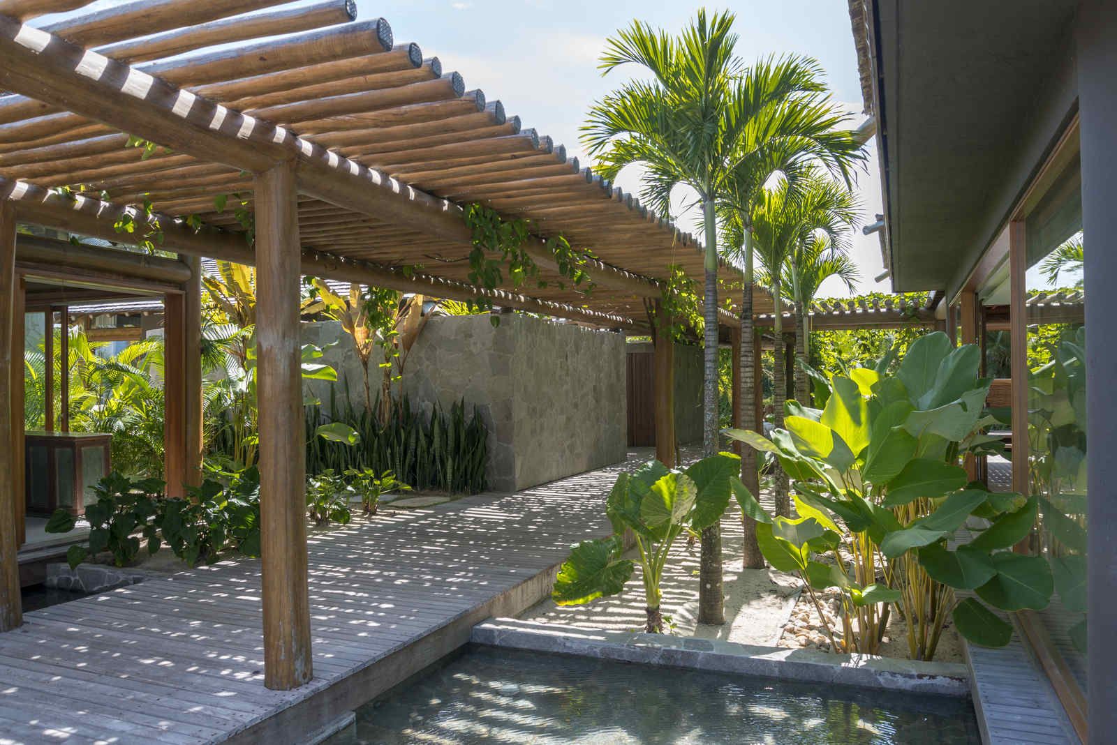 Um refúgio praiano cercado de paisagem natural. Esse foi o pedido feito por uma família ao arquiteto David Bastos para este projeto localizado em Trancoso, na Bahia.