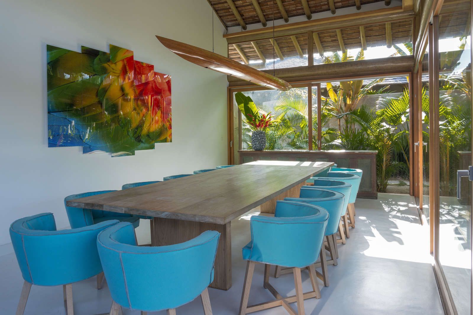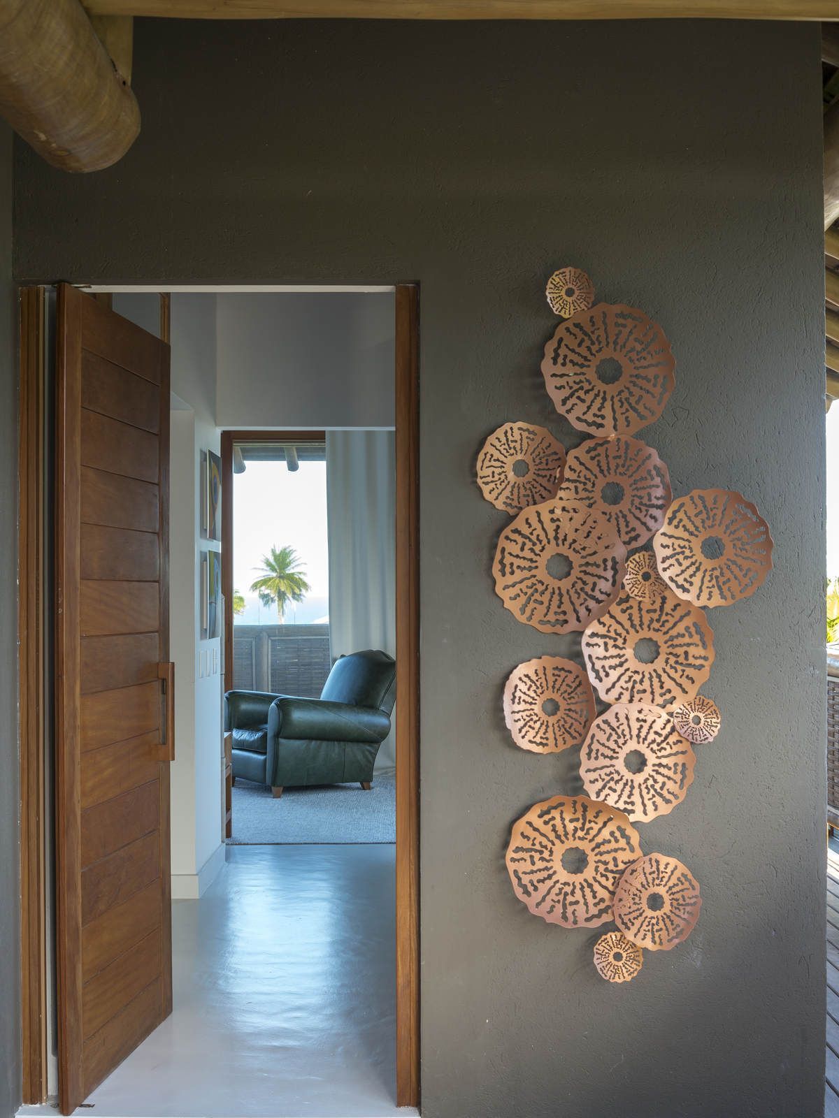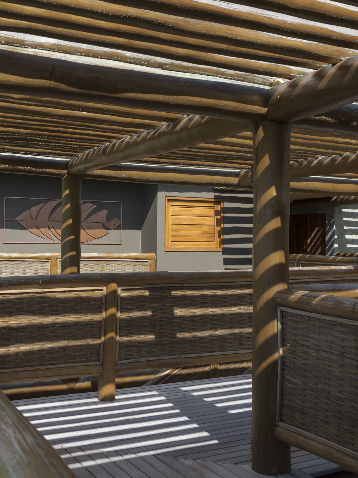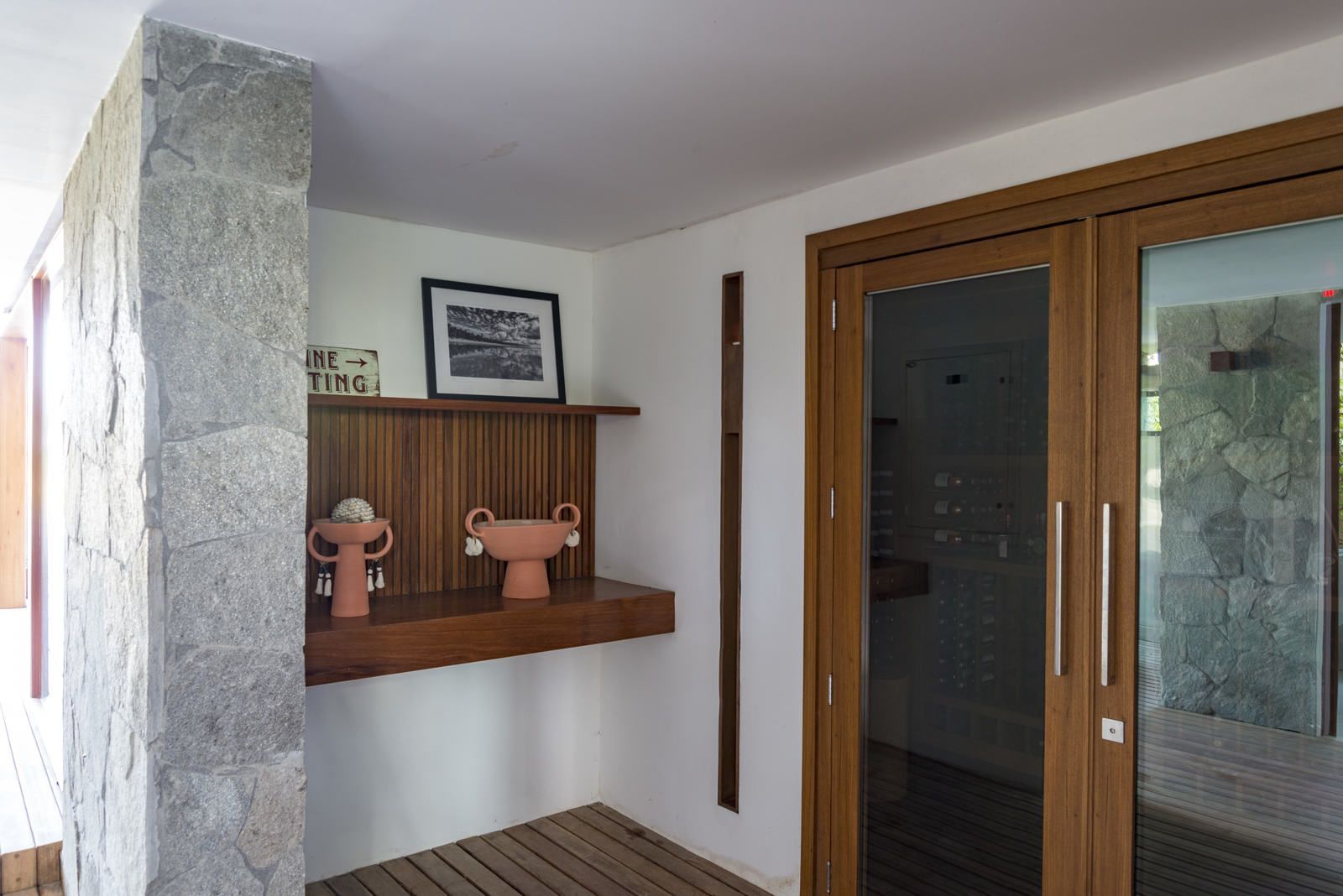 “A combinação de elementos rústicos com atuais formam o que há de mais precioso na casa, sem contar a vista exuberante que pode ser admirada de vários ambientes, como do living, jantar, gourmet, deck, piscina, e dos quartos do pavimento superior. O terreno e o projeto formam uma simbiose única e particular, e trazem uma beleza ímpar ao local. Tudo especialmente pensado com toques brasileiros, como o piso em cimento queimado na cor branco, os decks em madeira e piscina com acabamento que imita a areia da praia.”