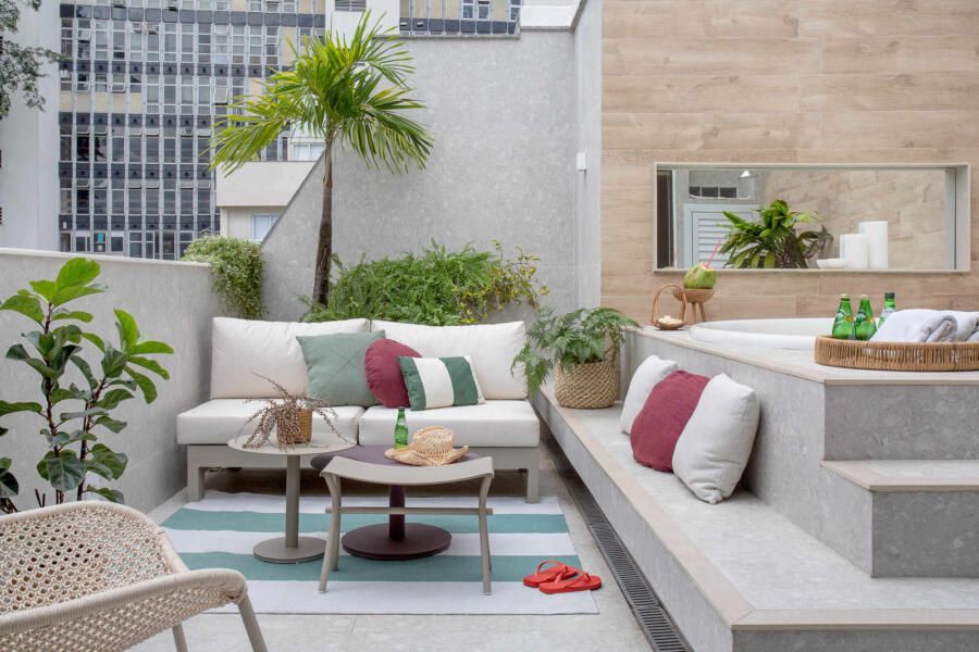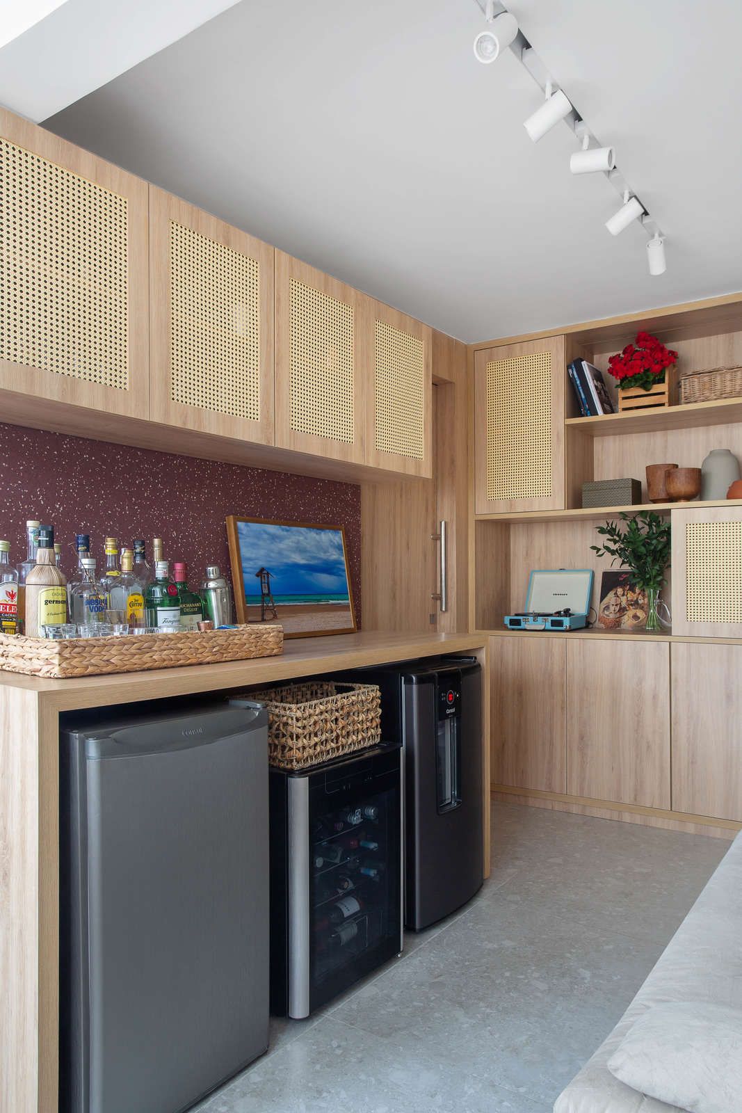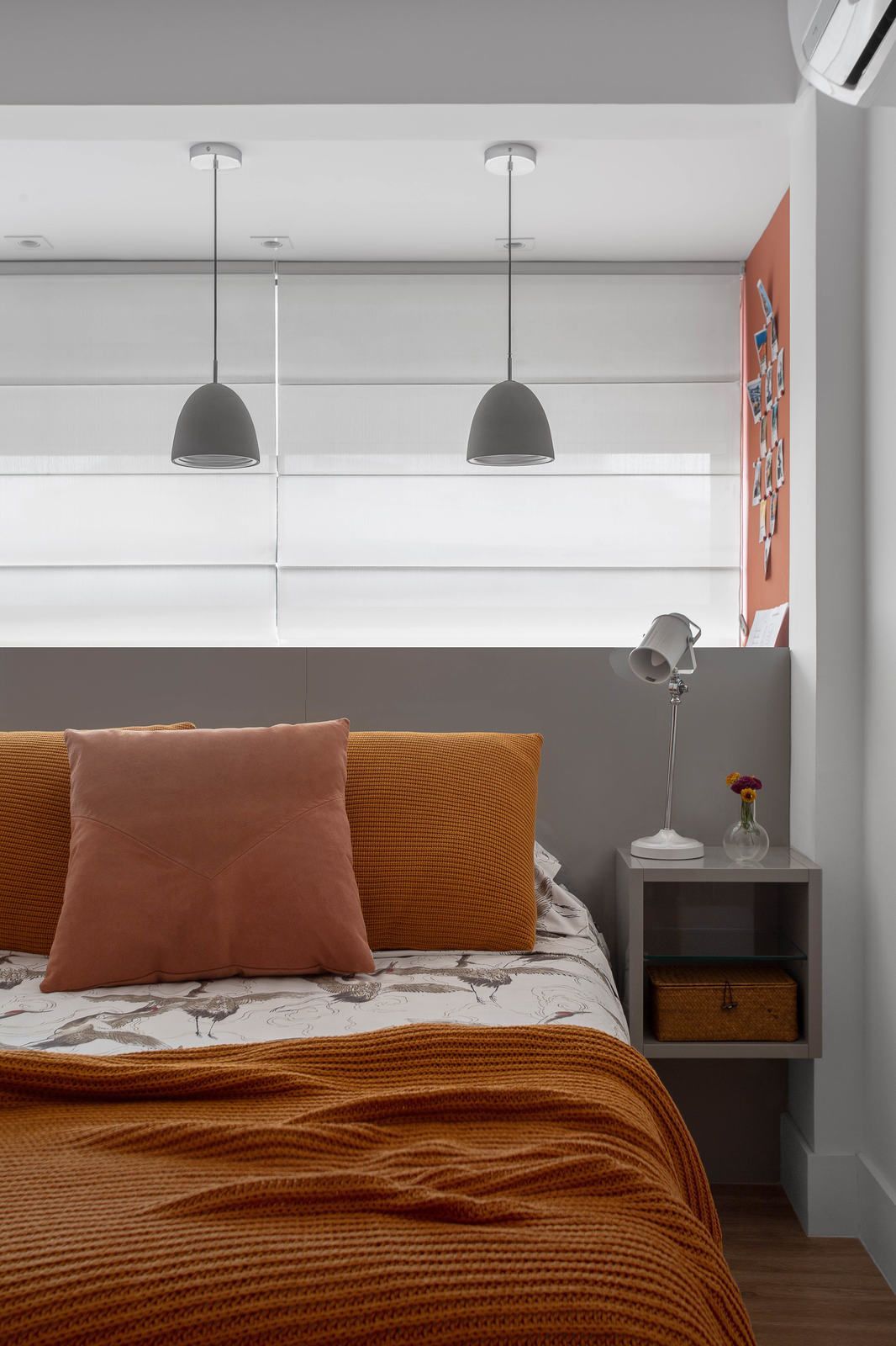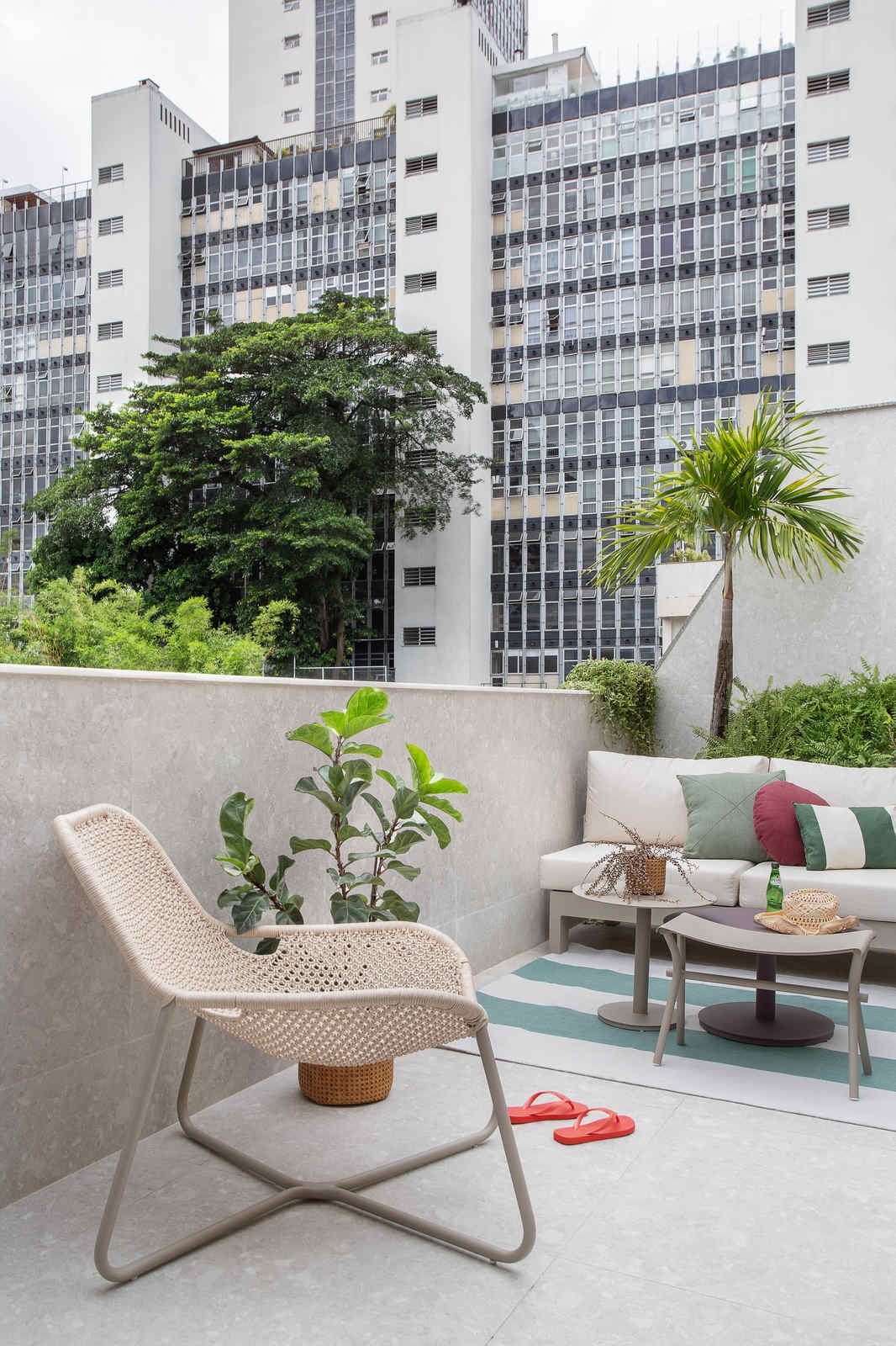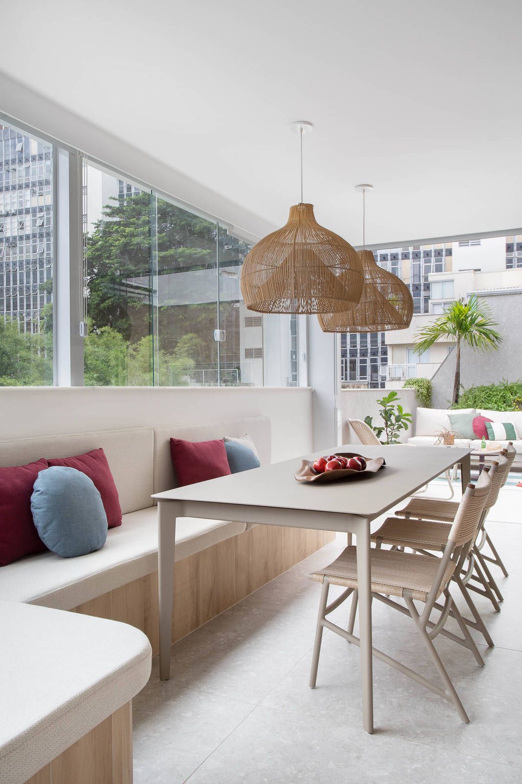 “Me inspirei na arquitetura escandinava, com um toque de Boho-chic, para definir o conceito do projeto, mesclando cores claras e tons terrosos associados ao verde com materiais que remetem à natureza, como a palha natural presente em luminárias, portas de armários e tapetes, o porcelanato que imita textura de rocha e as plantas naturais. A farta presença de luz natural nos espaços também contribuiu para aumentar a sensação de conforto e aconchego.”