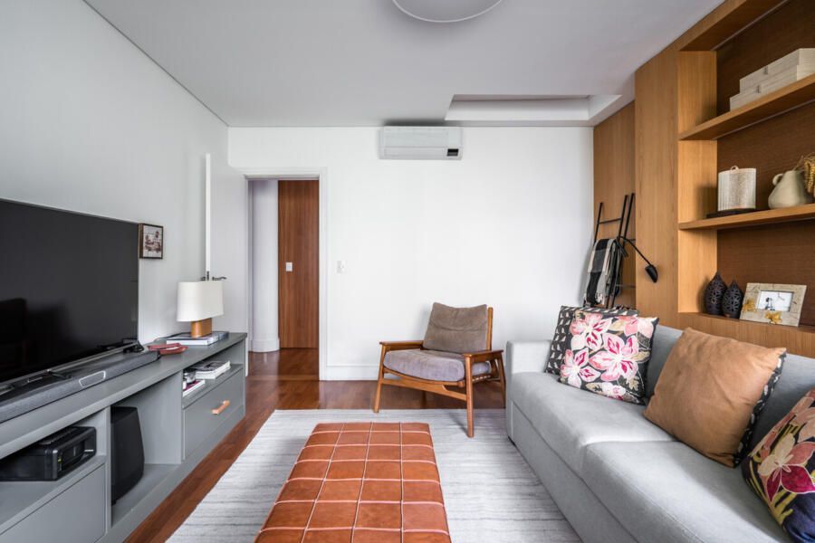 “O principal desafio foi realizar um projeto que pudesse ser executado com os clientes morando na casa, sem reformas estruturais. Aproveitamos ao máximo a estrutura existente, sempre buscando realizar um projeto acolhedor e que valorizasse o estilo de vida de nossos clientes, com sofisticação e uma pegada brasileira misturada às referências culturais que traziam de outros países onde já residiram.”