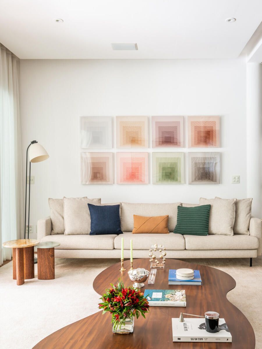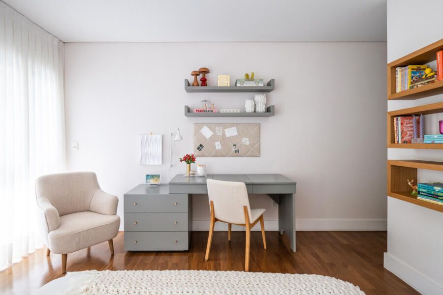 A identidade do projeto se revela na escolha de uma decoração contemporânea leve, marcada por cores suaves, madeira em tom mais quente e uma composição rica em texturas, estampas e objetos carregados de afeto. Nada aqui é genérico: cada ambiente reflete o estilo de vida da família, suas referências culturais e o desejo de receber bem, sempre com clima de intimidade e conforto.