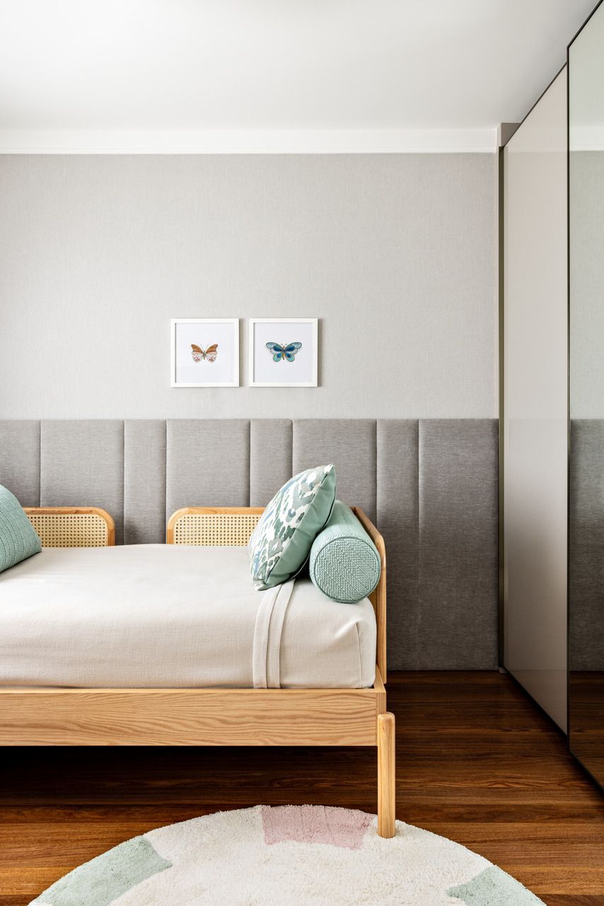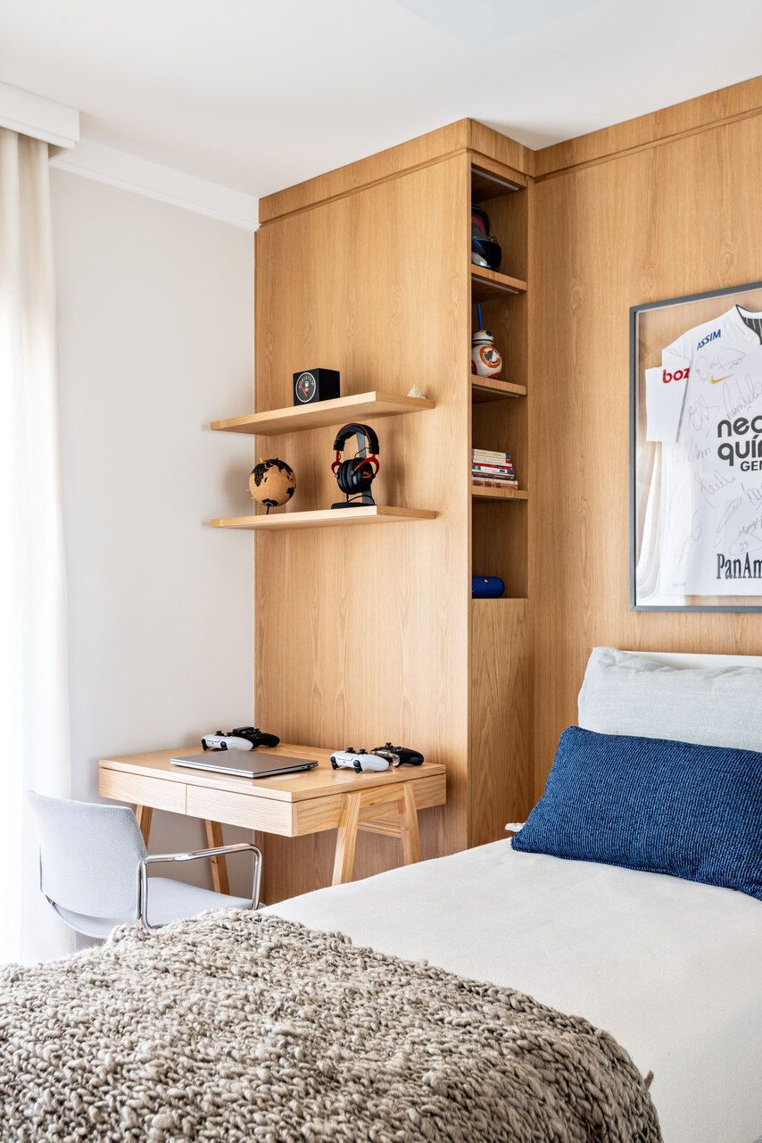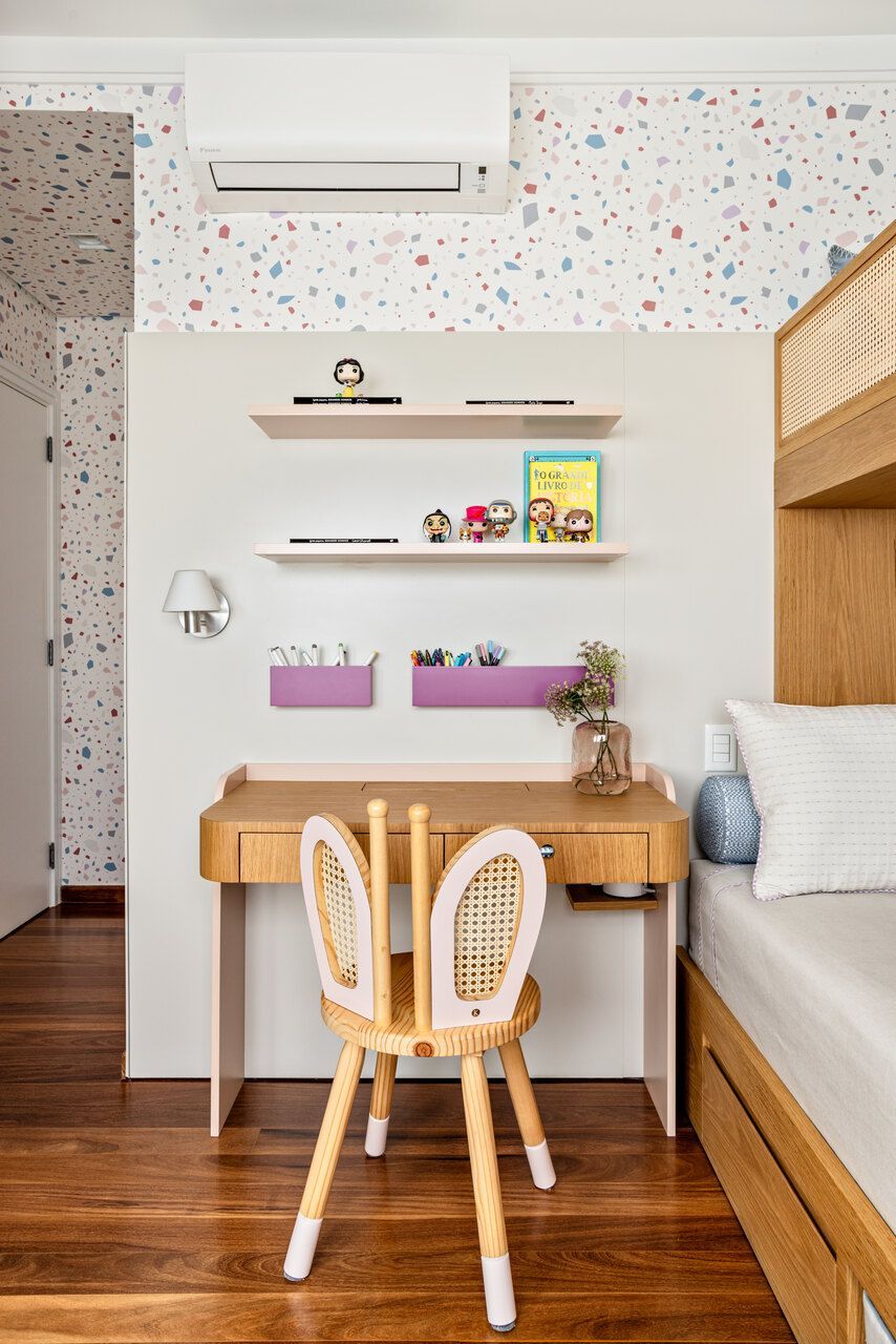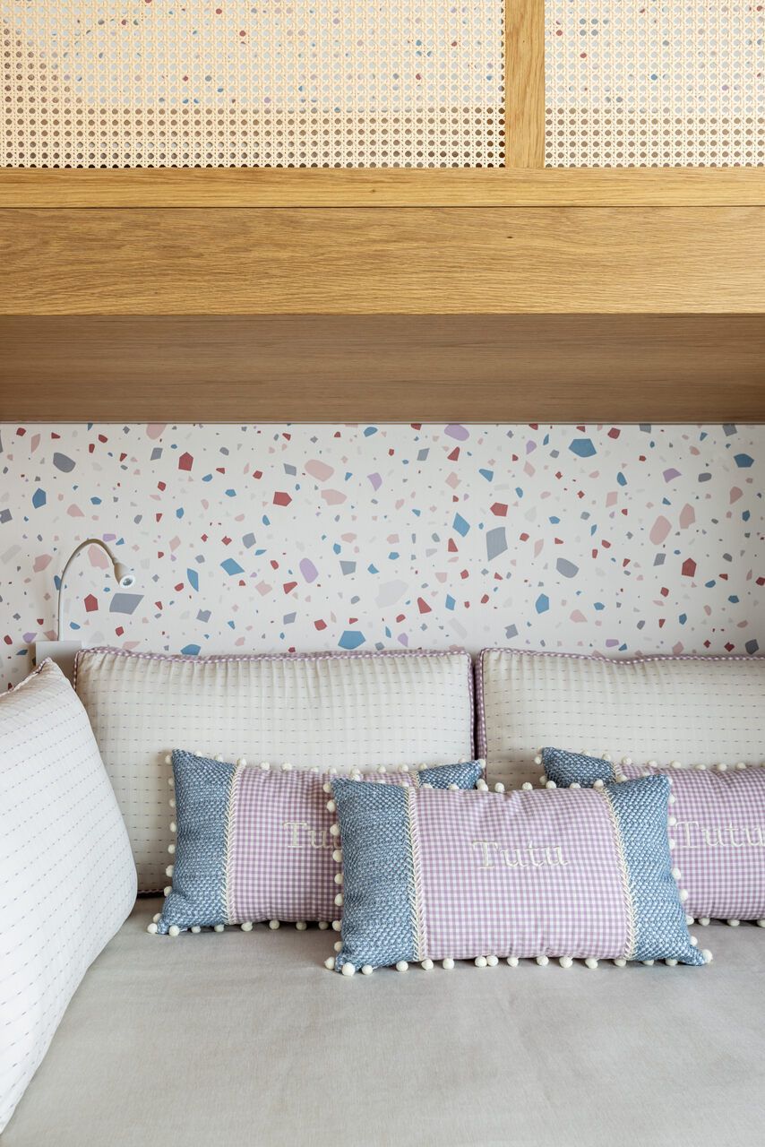 “Entregamos esse apartamento em 2015. Foi uma reforma geral bem extensa. O casal tem três filhos e a mais nova tinha três anos na época. Agora em 2023 eles nos chamaram para refazer os quartos e redecorar a varanda que antes funcionava como uma brinquedoteca e estava sendo pouco utilizada.”