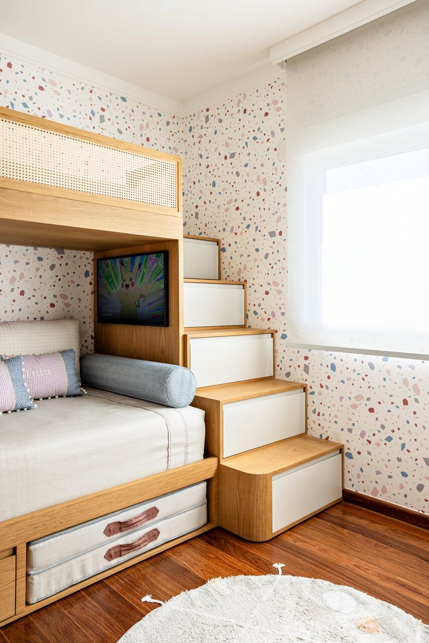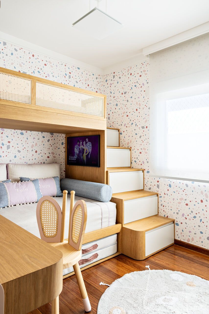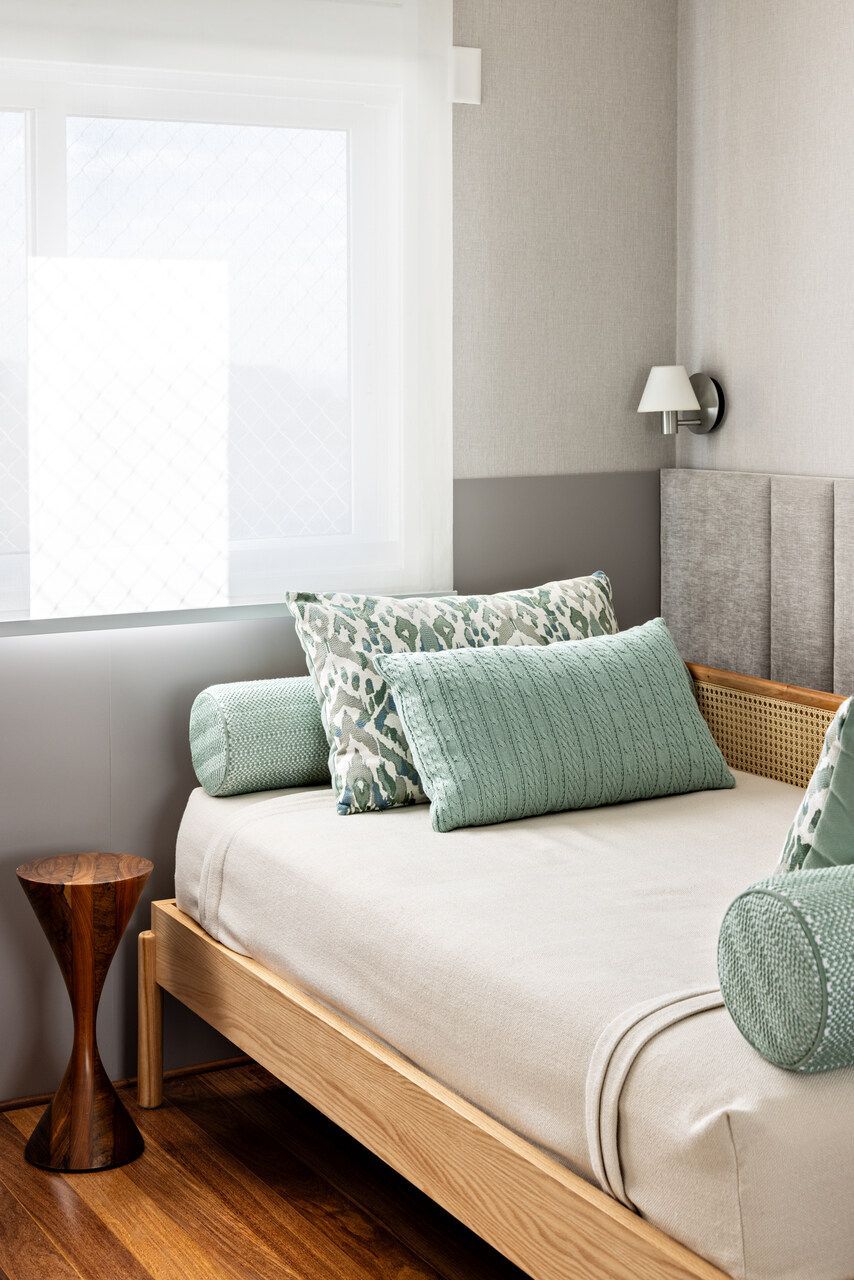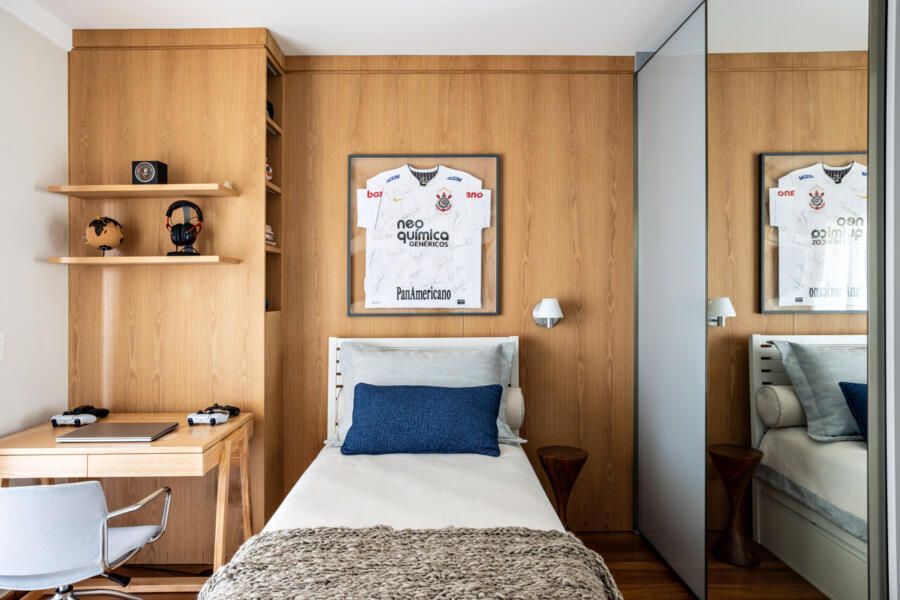 “Entregamos esse apartamento em 2015. Foi uma reforma geral bem extensa. O casal tem três filhos e a mais nova tinha três anos na época. Agora em 2023 eles nos chamaram para refazer os quartos e redecorar a varanda que antes funcionava como uma brinquedoteca e estava sendo pouco utilizada.”