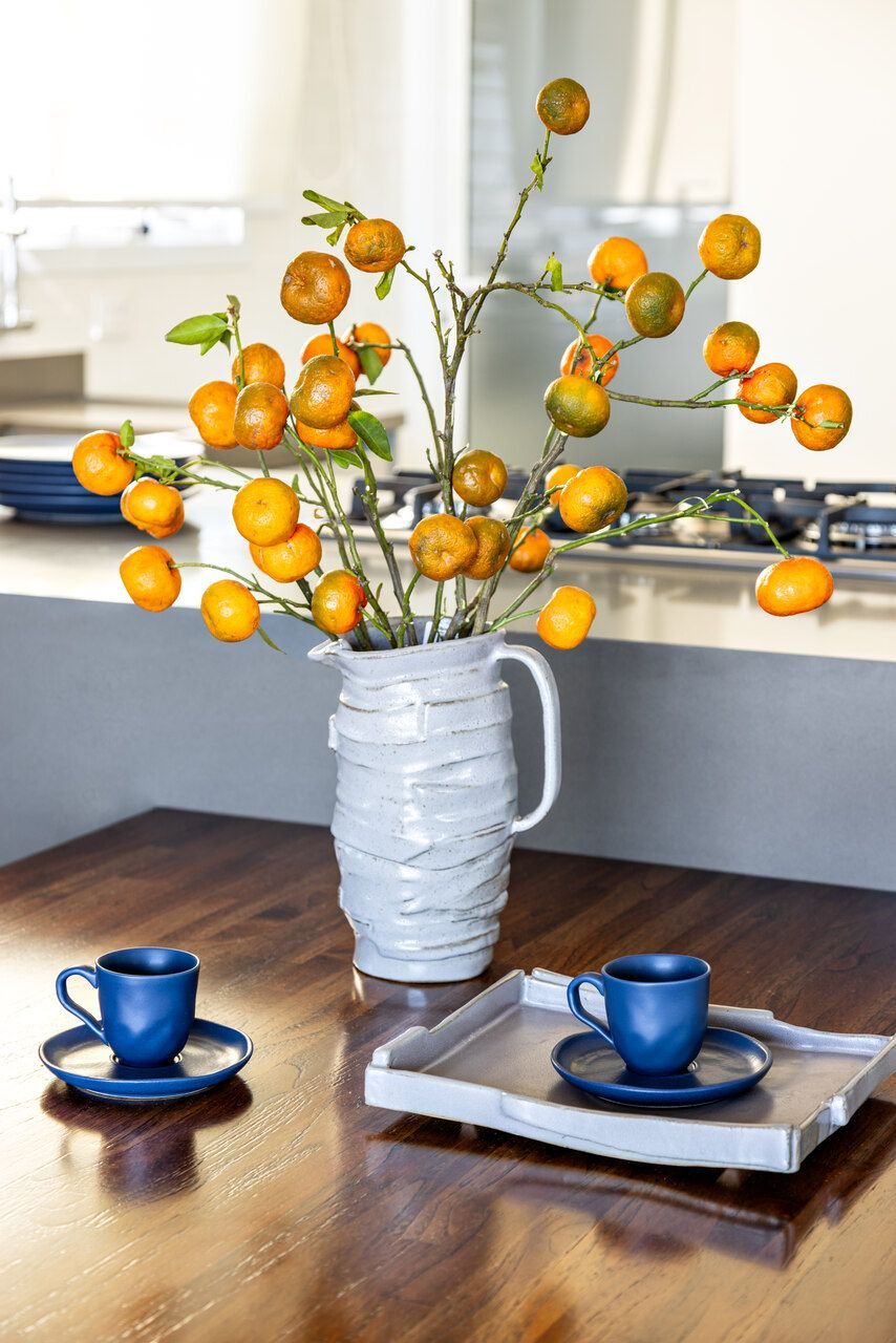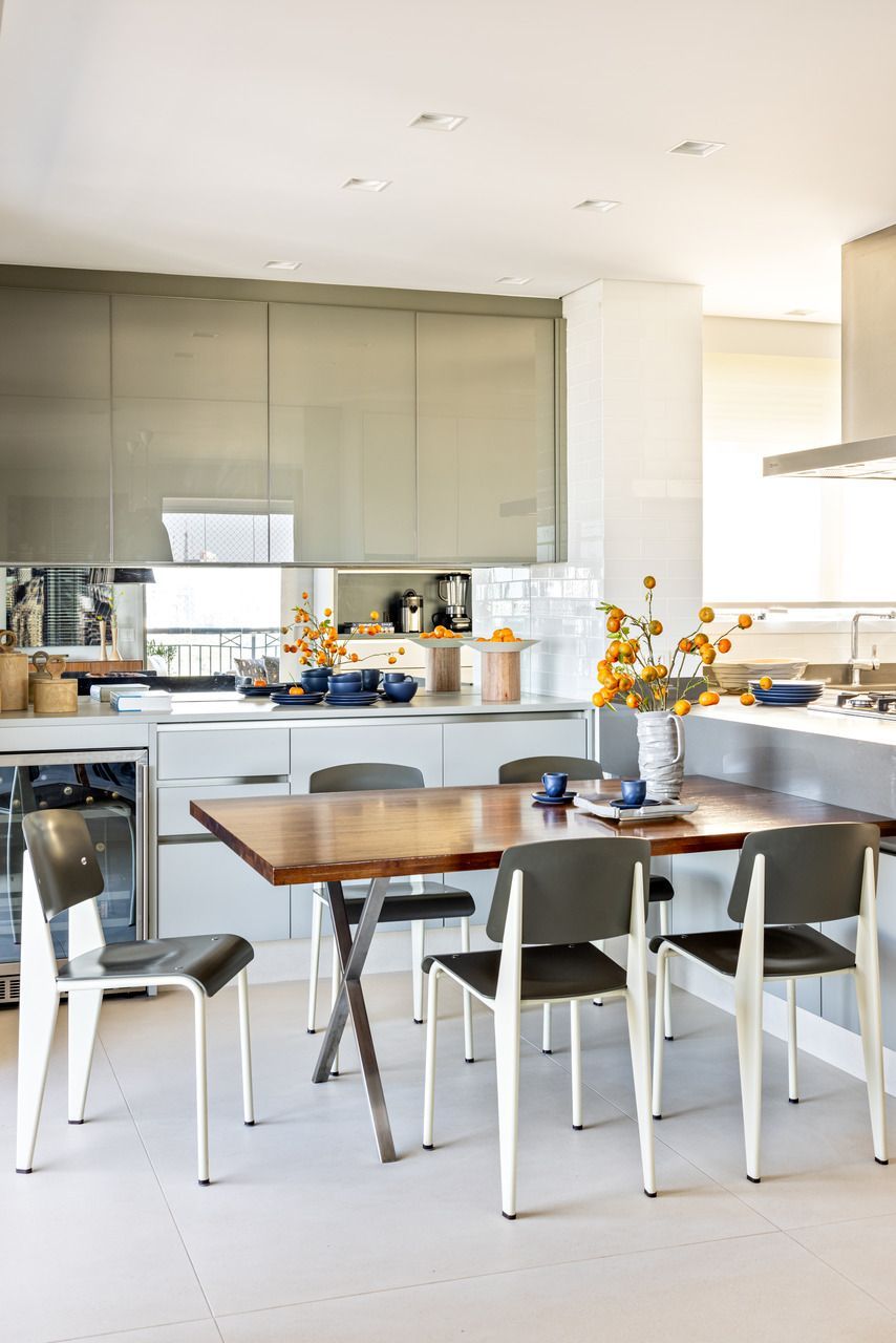 Durante a primeira reforma, a cozinha e a marcenaria de toda a casa foram completamente renovadas. Por isso, não sofreram muitas mudanças na repaginação deste ano, apenas eventuais manutenções dos acabamentos. Já as cores das paredes e tetos, armários e gabinetes foram repensados para atender a família.