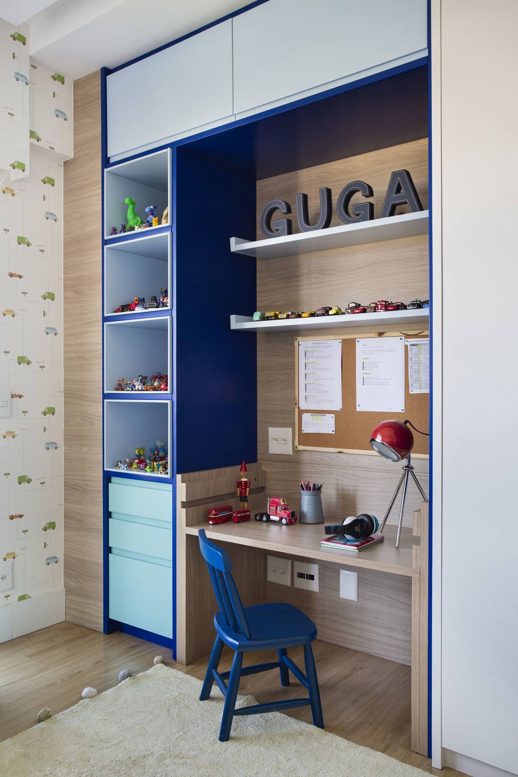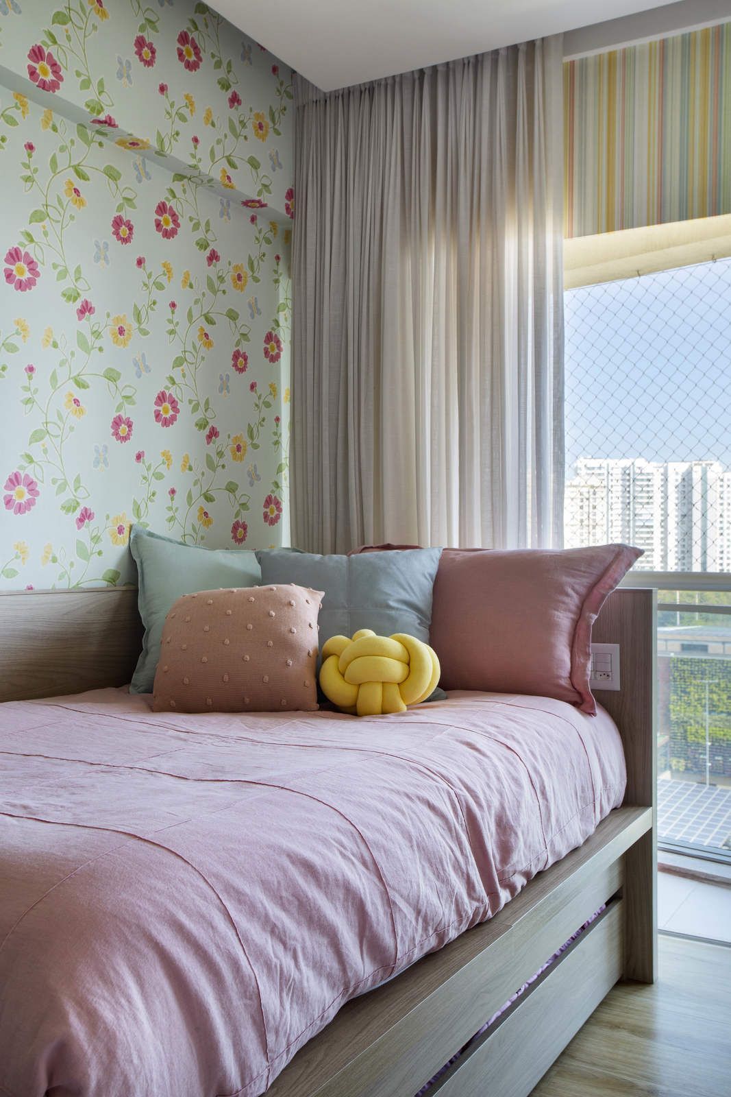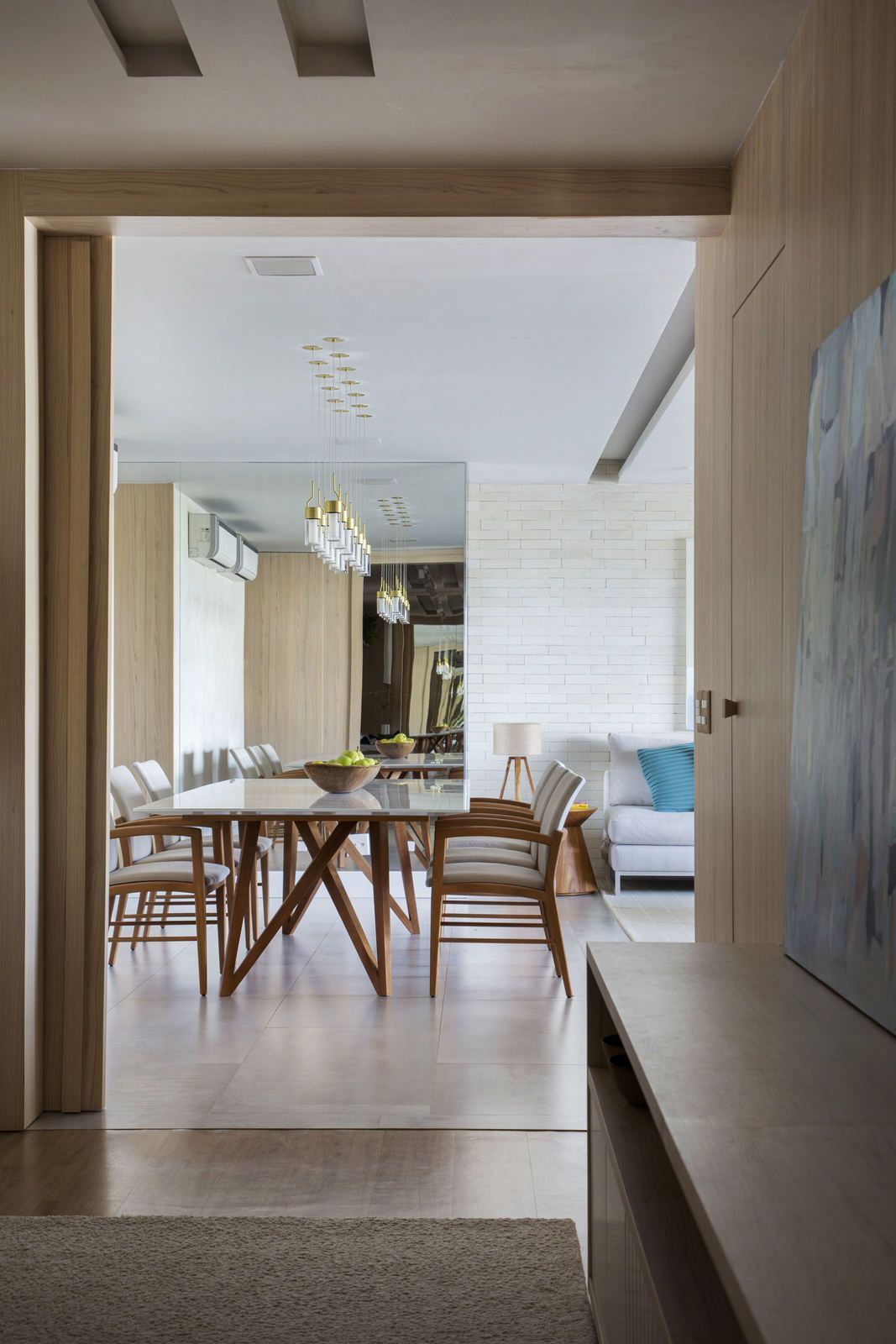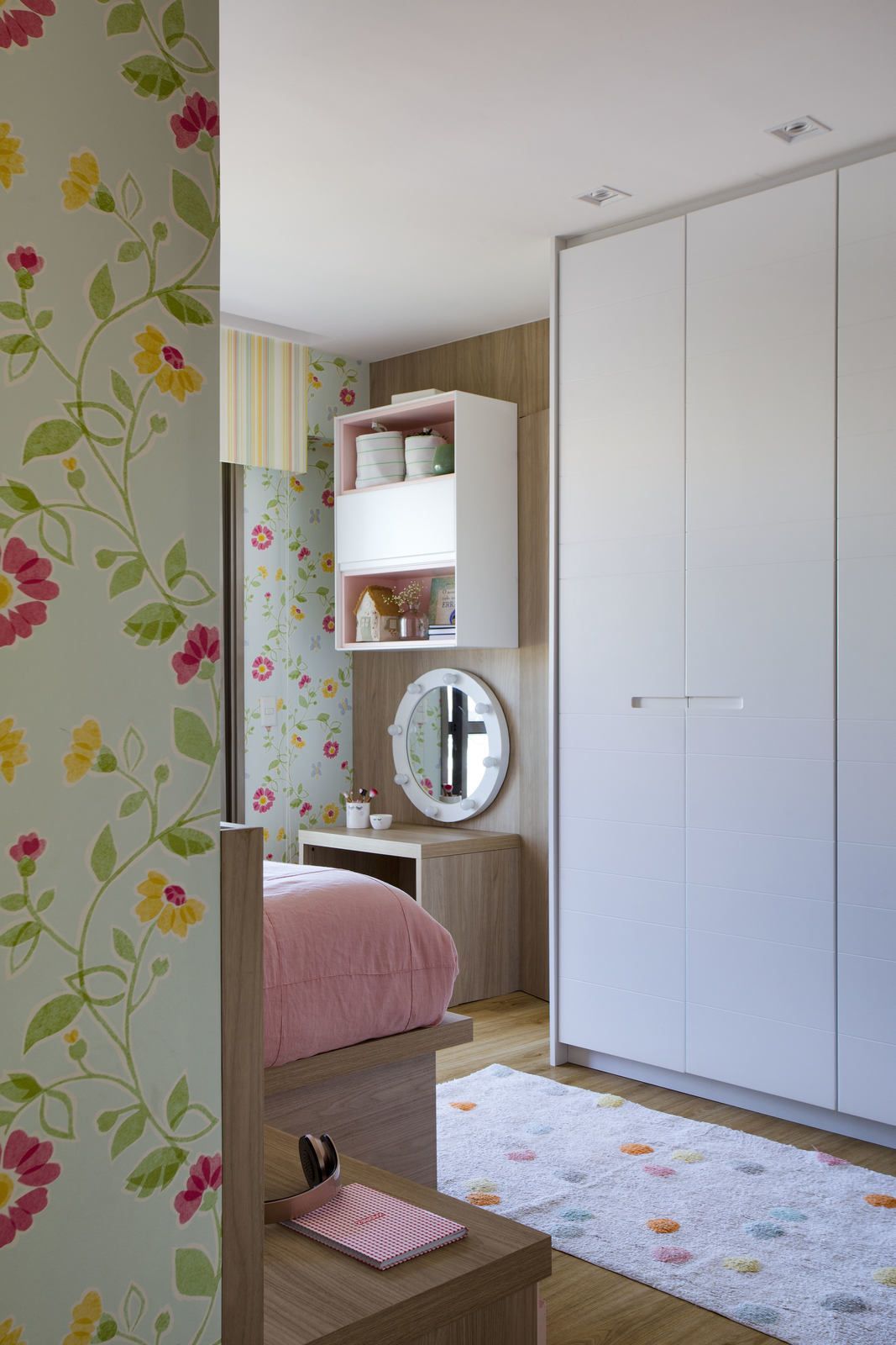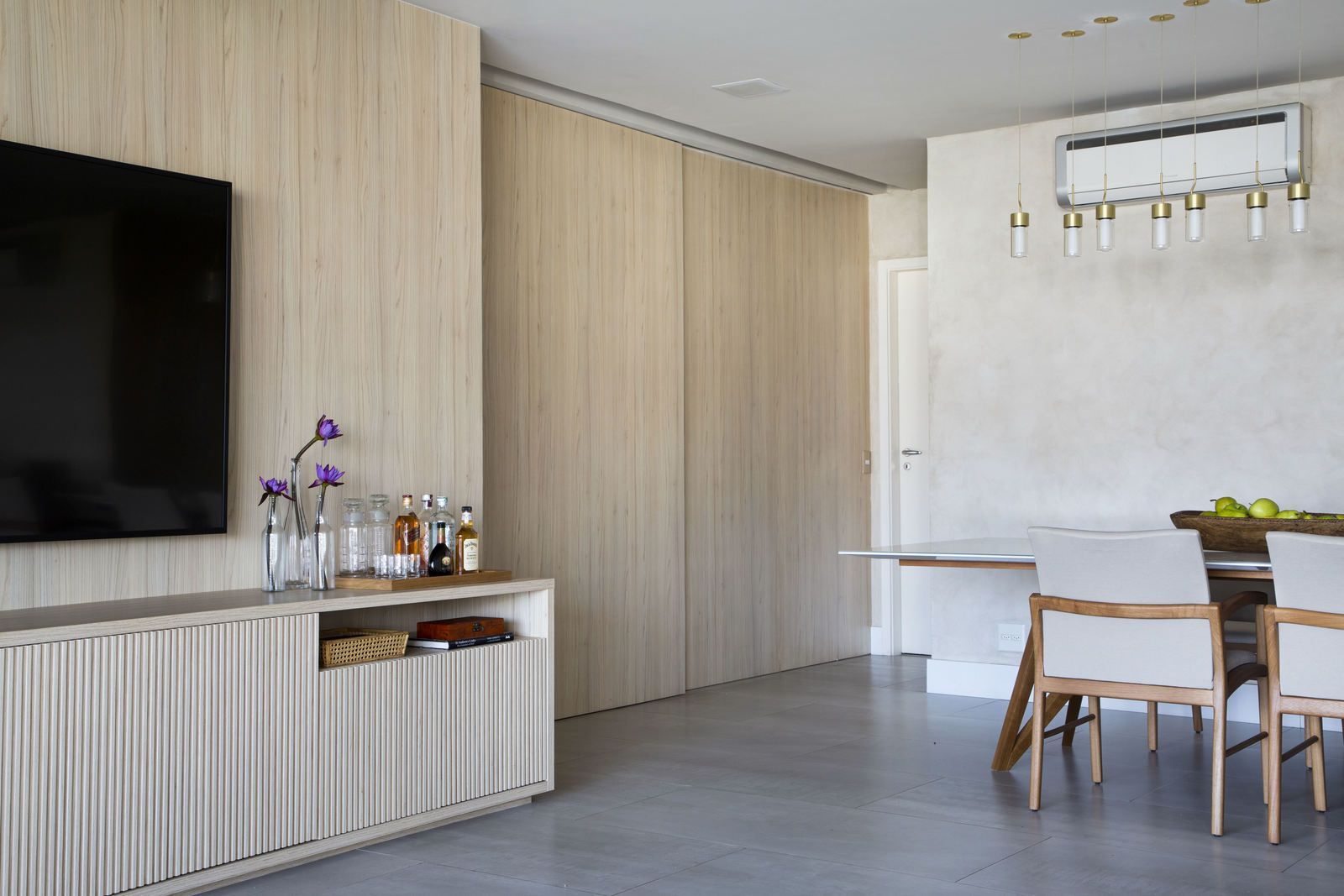 “Os clientes compraram um apartamento de quatro quartos, sendo um reservado para o escritório, um para a suíte do casal e os outros dois para que cada um dos filhos pudesse ter seu próprio quarto. Sendo assim, não foram feitas modificações estruturais, afinal a planta original já era muito bem resolvida.”