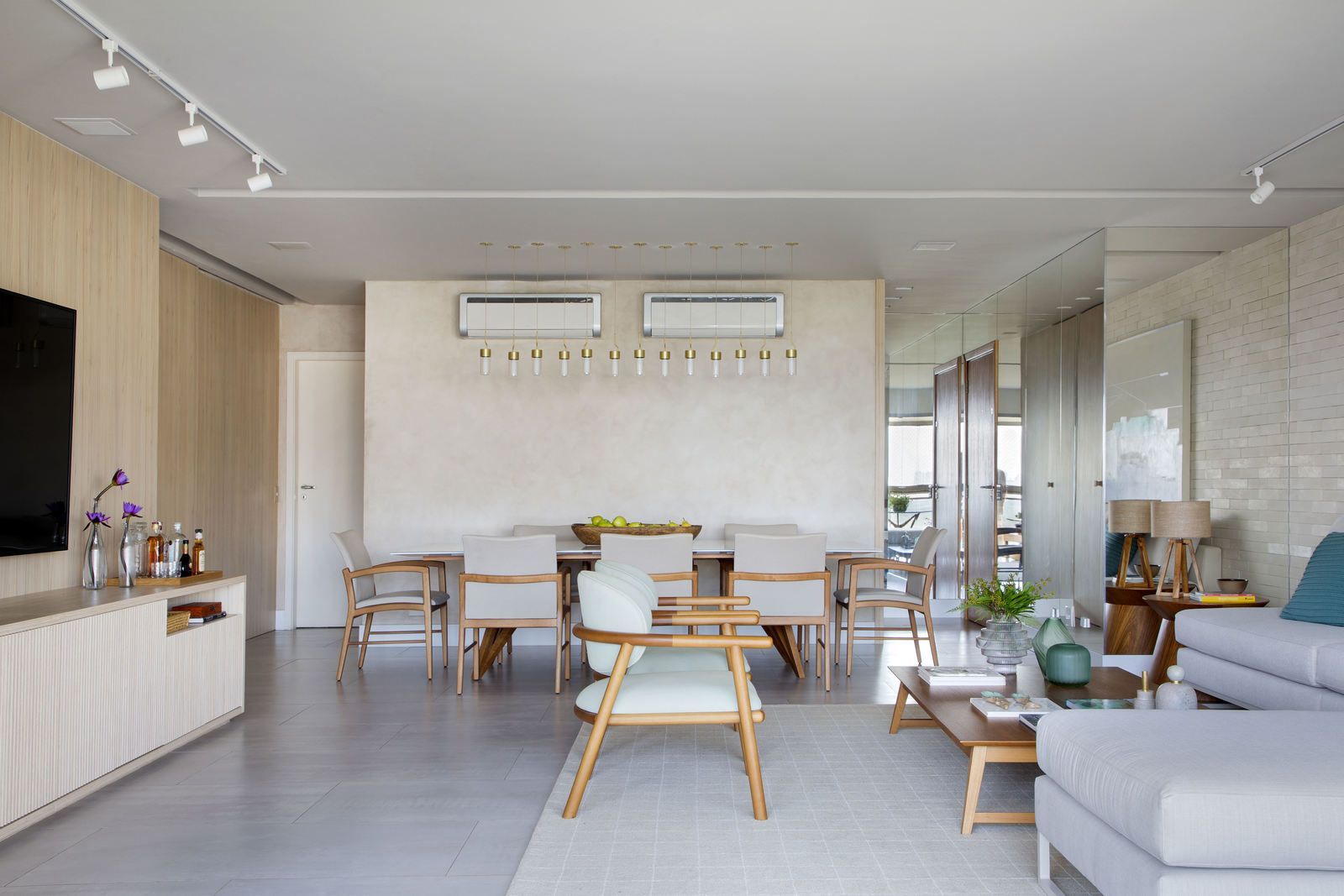 Um apartamento com sala de TV para as crianças e varanda gourmet para os pais. Esses eram os principais desejos de um casal com dois filhos pequenos quando chamaram a arquiteta Patricia Fiuza para este projeto na Barra da Tijuca, Rio de Janeiro.