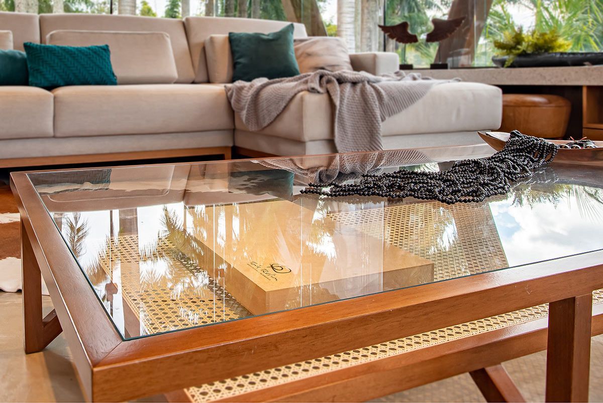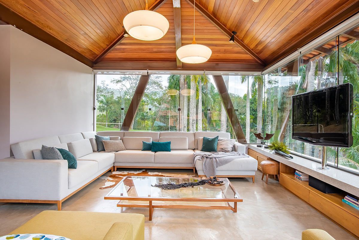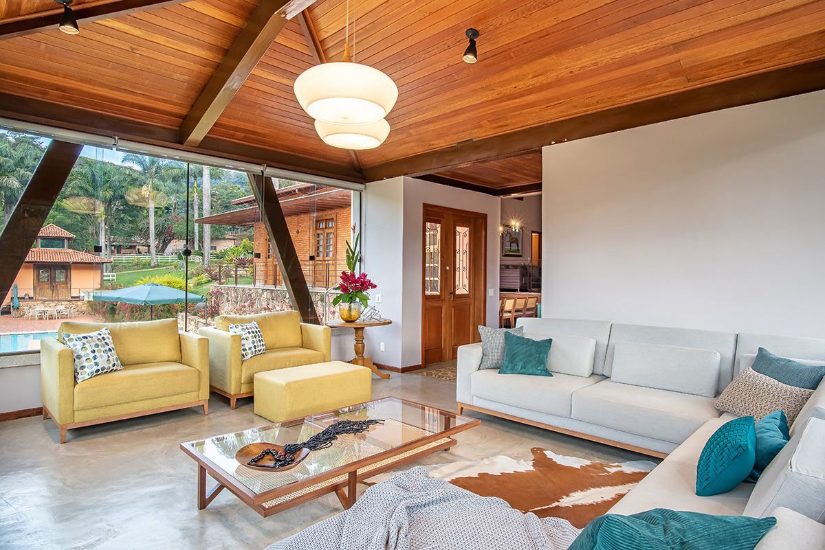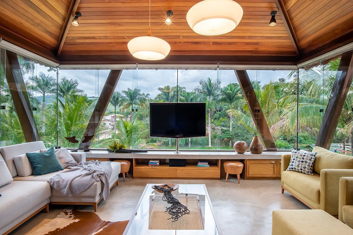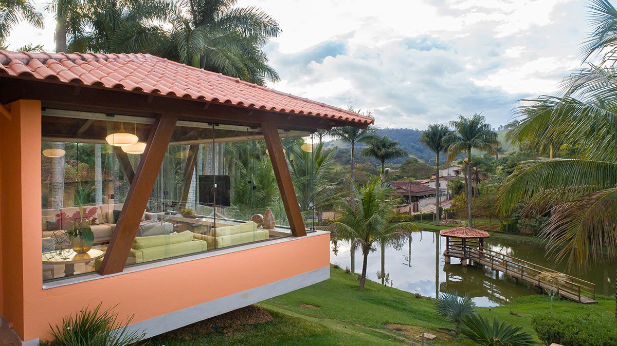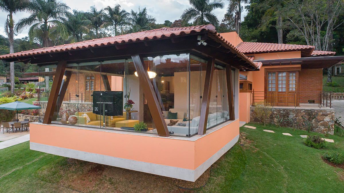 Propus fazermos uma sala em balanço toda de vidro, que emoldurou a paisagem da fazenda.