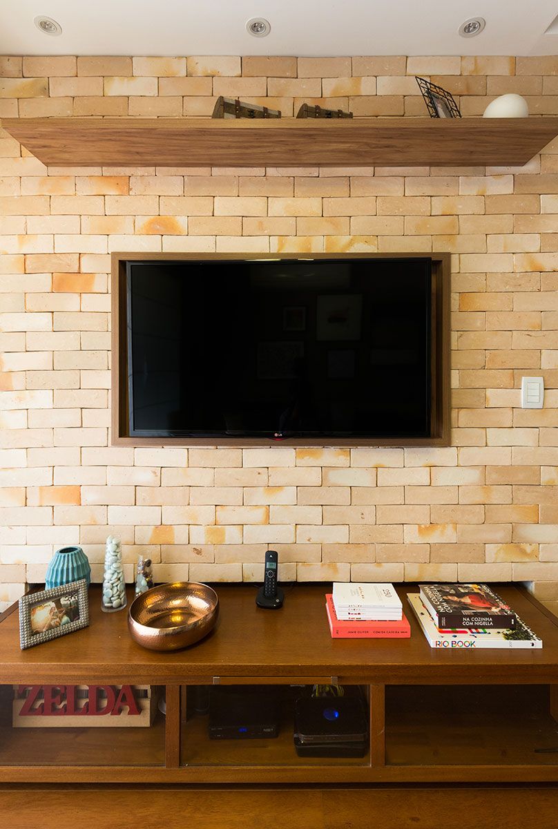 Foi alterado também o tamanho do sofá, o painel da televisão, as cadeiras da mesa de jantar, parte da marcenaria, quadros e adornos. No hall de acesso, existiam dois grandes espelhos colados na parede que foram aproveitados e conectados à estante existente por duas prateleiras. Essas prateleiras servem de base para uma nova decoração e composição do hall de acesso.