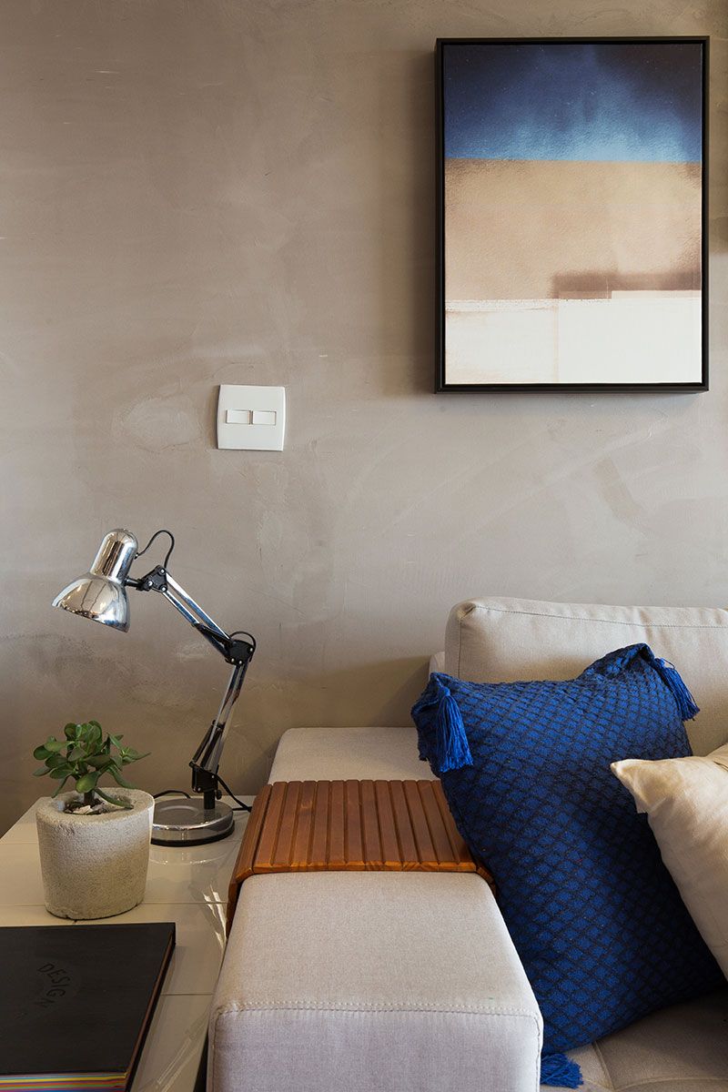 Neste projeto, apostamos em texturas diferentes. Muitas vezes nossos clientes tem medo de misturar texturas e cores, esse é um caso de sucesso que demonstra que é possível propor misturas mantendo um resultado elegante.