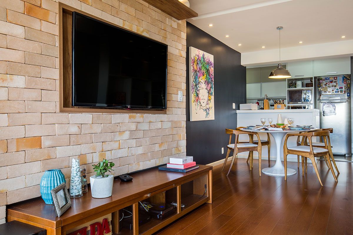 Para este projeto, o jovem casal solicitou para a arquiteta Paula Werneck uma sala que retratasse a personalidade deles: sofisticada, moderna e jovial. Diferentes texturas, cores e um mobiliário atemporal foram as principais solicitações.
