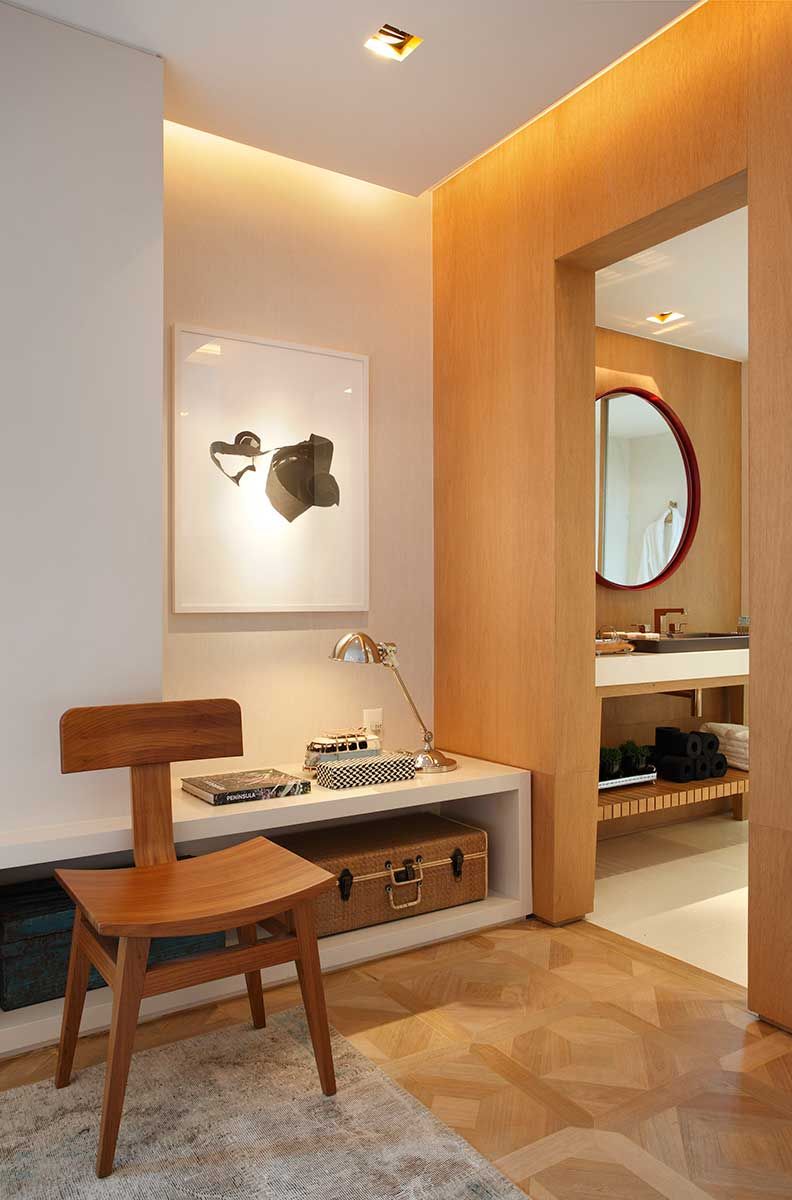 Esse projeto do escritório BC Arquitetos para a Casacor 2013 tinha como foco receber um executivo de alto padrão em uma cidade nova.