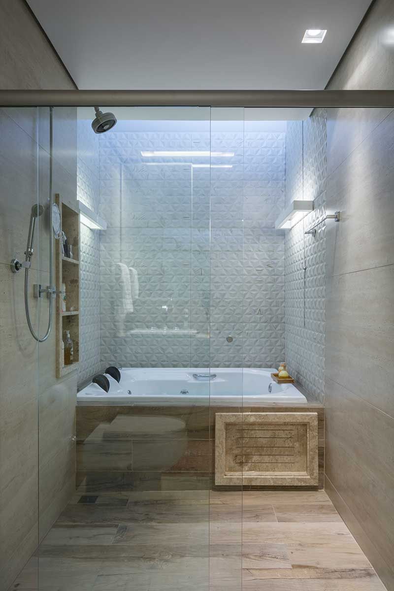 É o caso do banheiro da suíte do casal, onde o teto foi feito de vidro para aproveitar a iluminação natural. Nos quartos, o conceito foi mantido com a instalação de portas de vidro para permitir a entrada de luz natural.