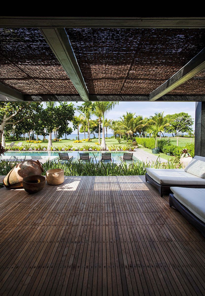 Assinada pela arquiteta Débora Aguiar a casa de 592m² no alto de uma falésia, em Trancoso, na Bahia, é toda moldada em madeira. Com vista privilegiada para a praia, a casa tem peças de décor assinadas por grandes nomes do design mundial.