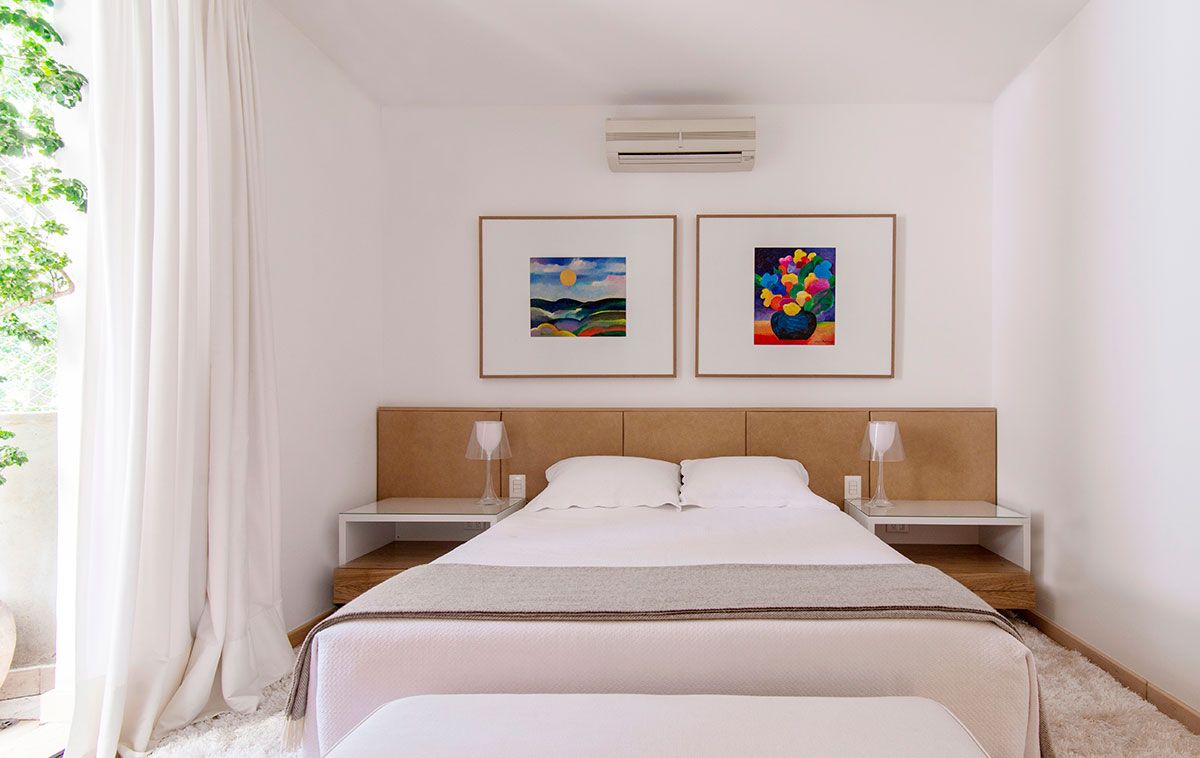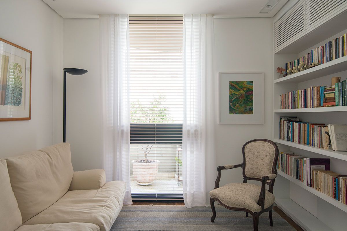 Por ser um apartamento localizado no 3° andar, a copa das árvores não deixava a luz natural entrar plenamente. Além disso, o apartamento tinha um projeto de marcenaria em madeira escura, que sobrecarregava os ambientes.